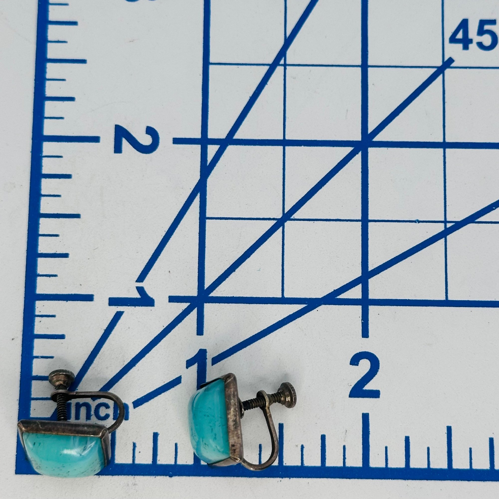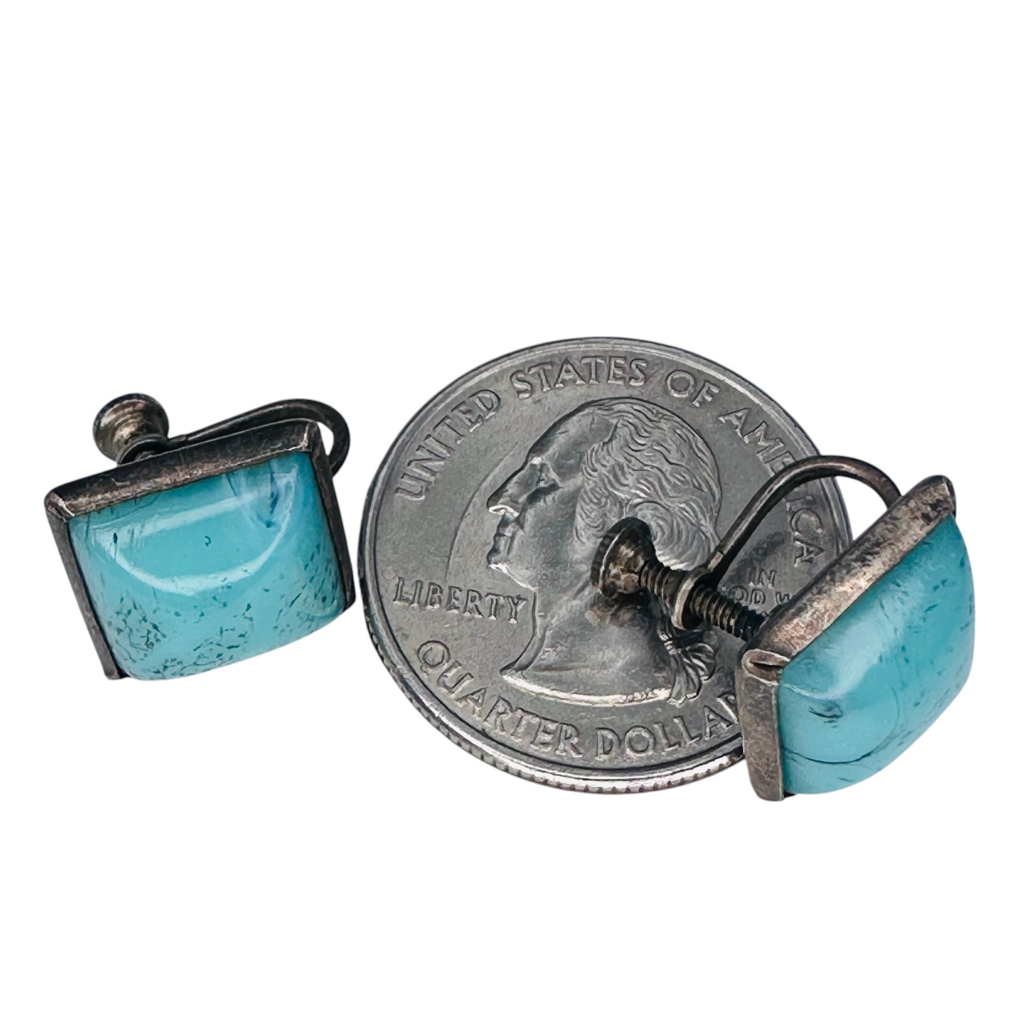 TURQUOISE Sterling silver square screw back earrings 4.81 g