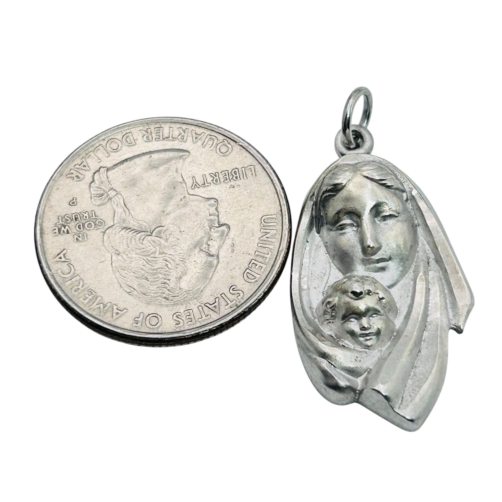 Vintage sterling silver mother Mary and baby Jesus pendant 8.52 g