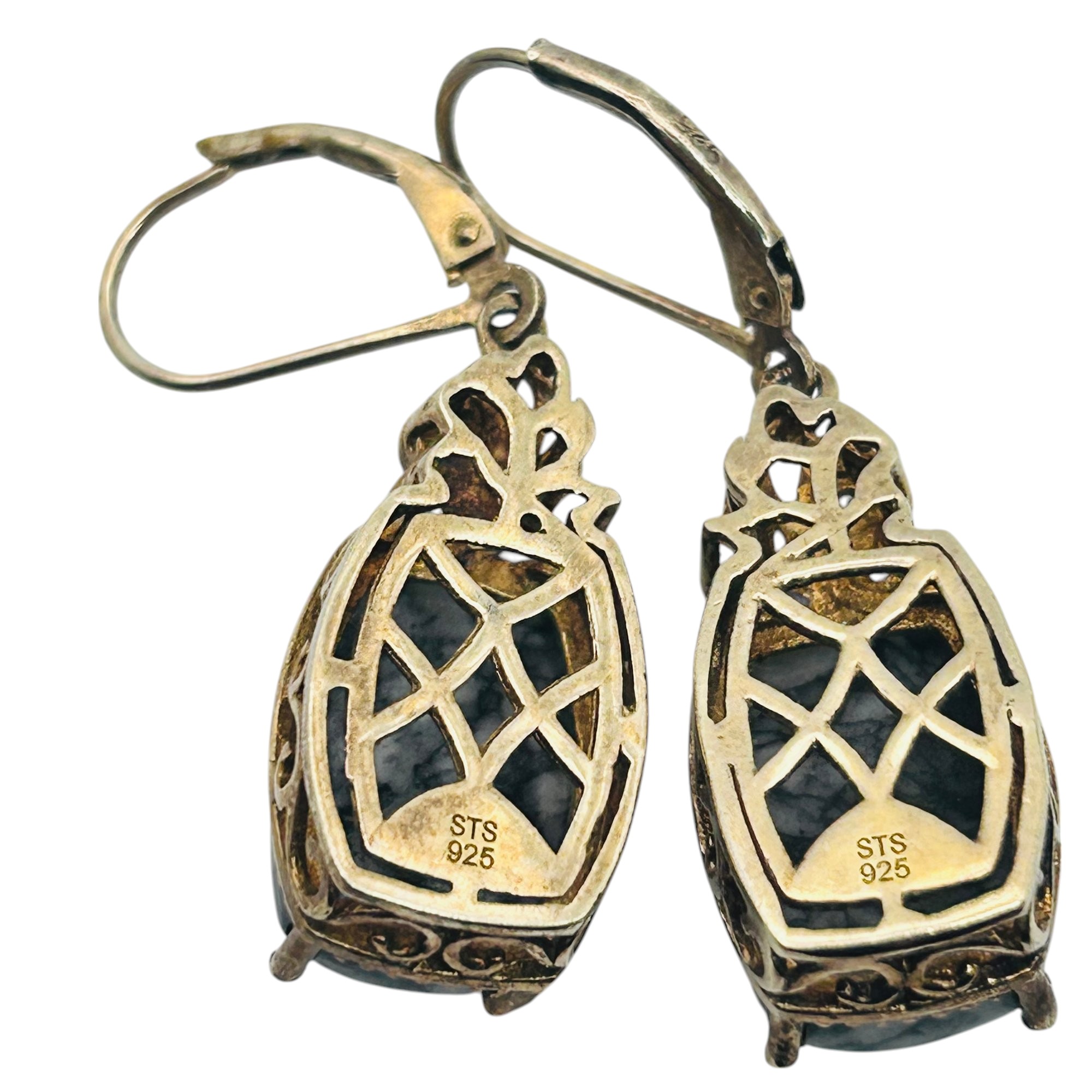 STS quartz Sterling silver lever back earrings gold tones 7.71 g