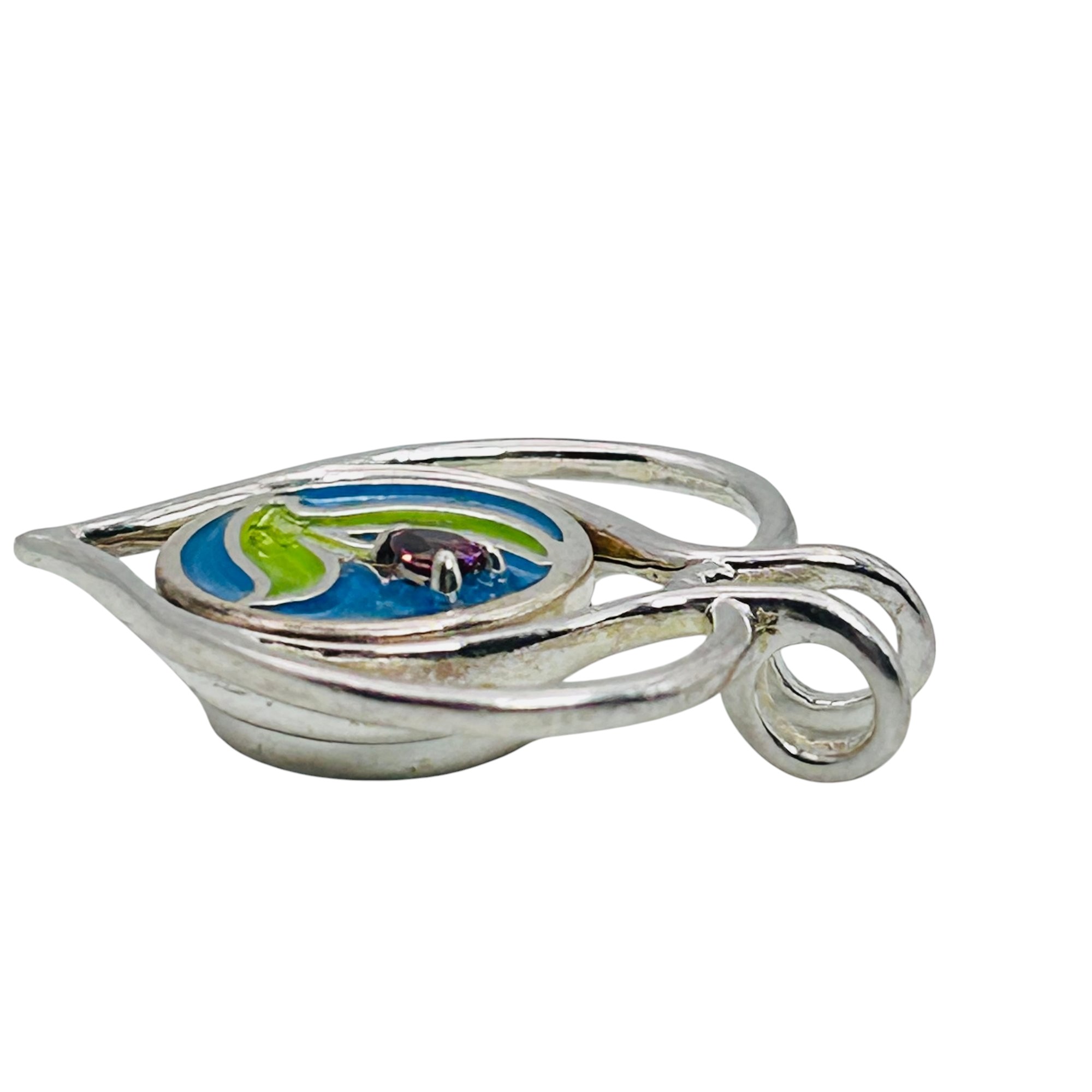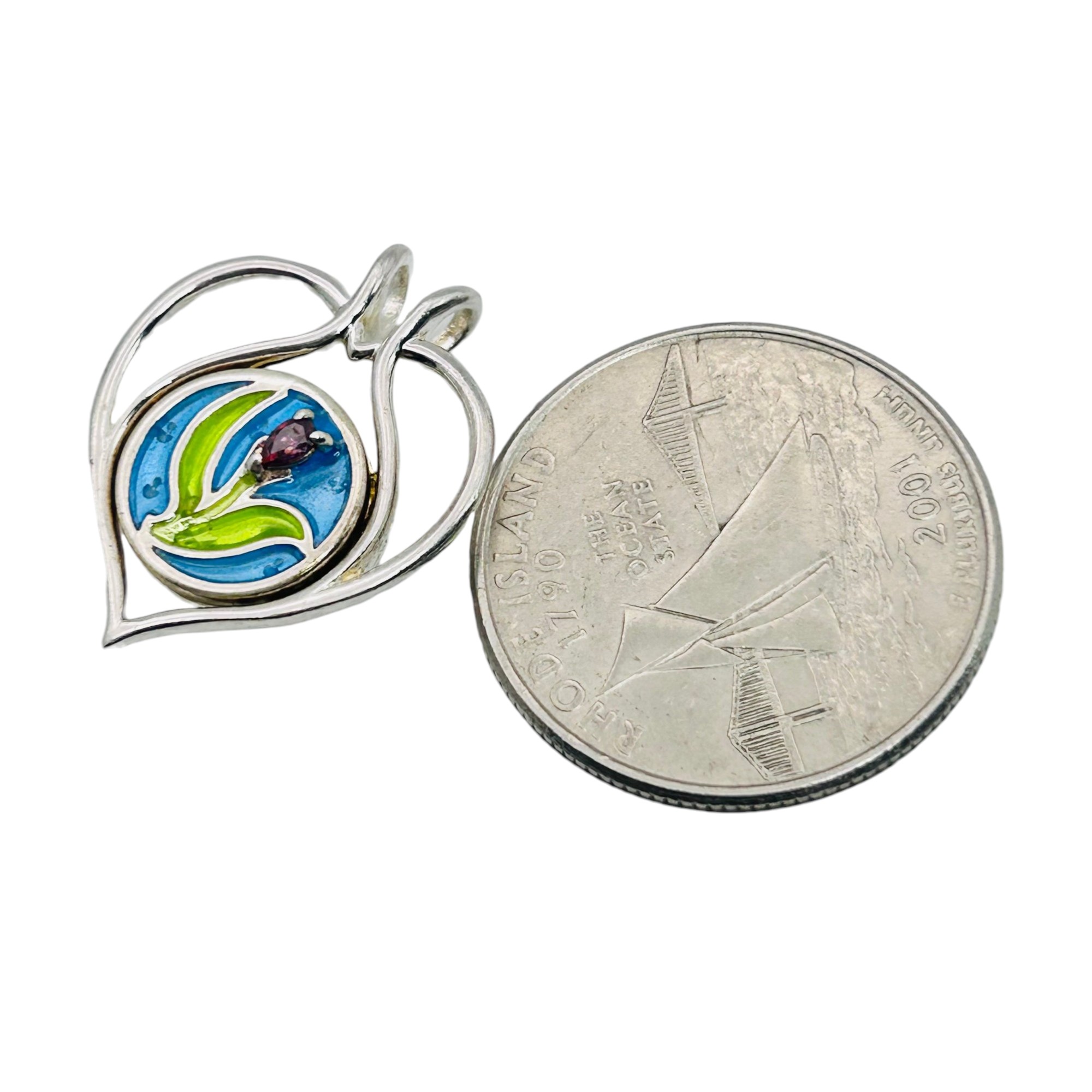 W Sterling silver painted flower pendant 4.7 g
