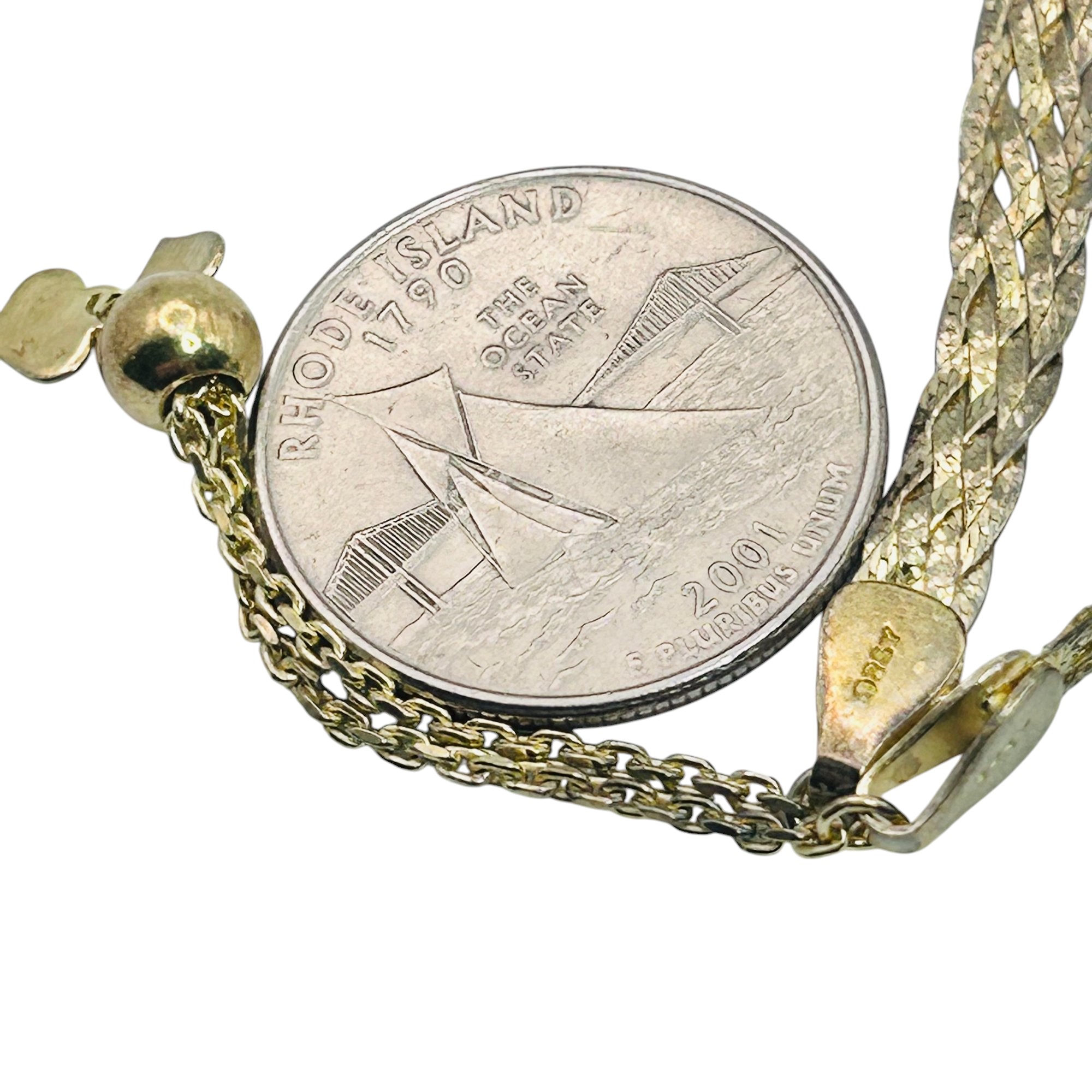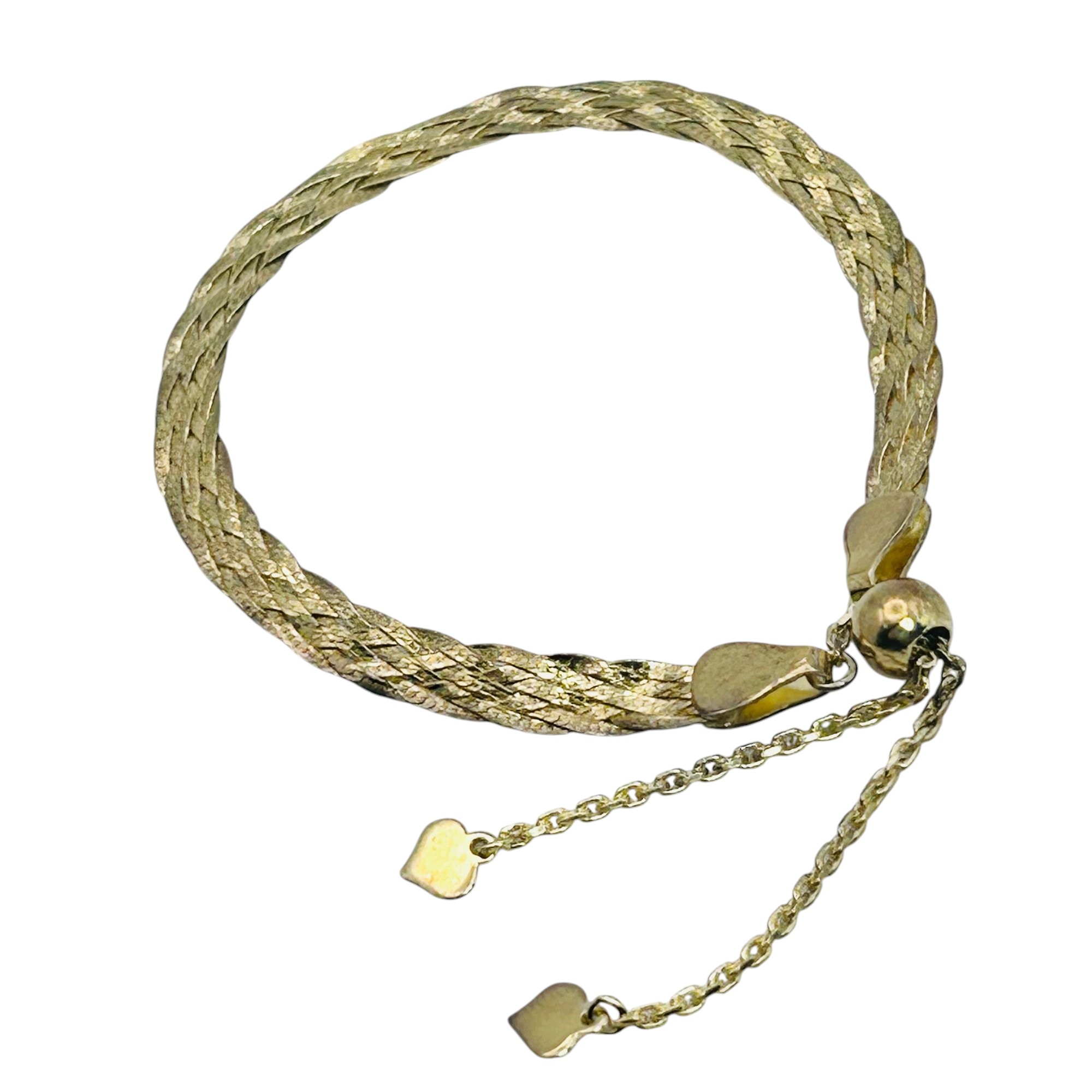 Sterling silver five strand braided adjustable bracelet gold tone 3.83 g