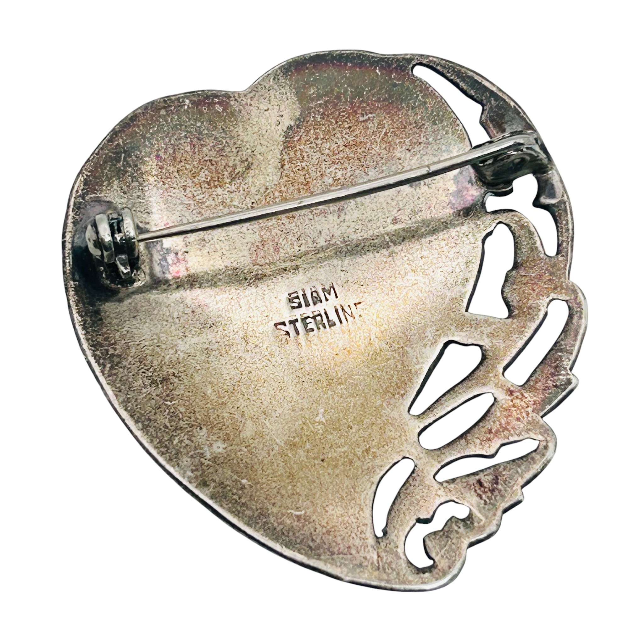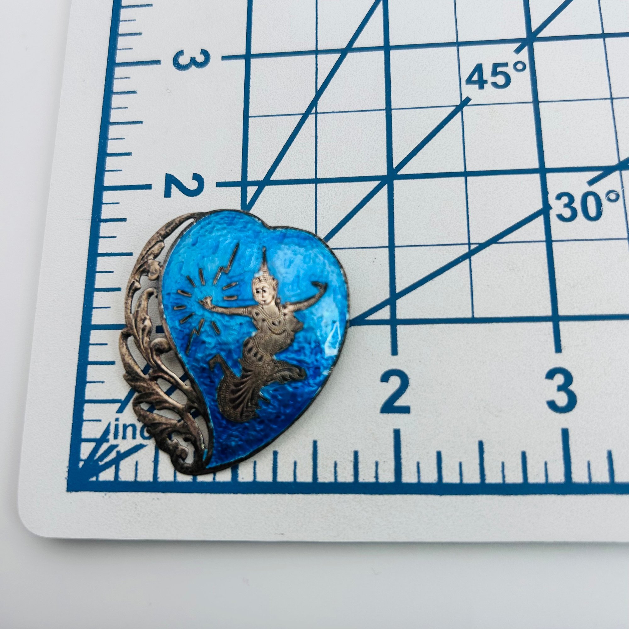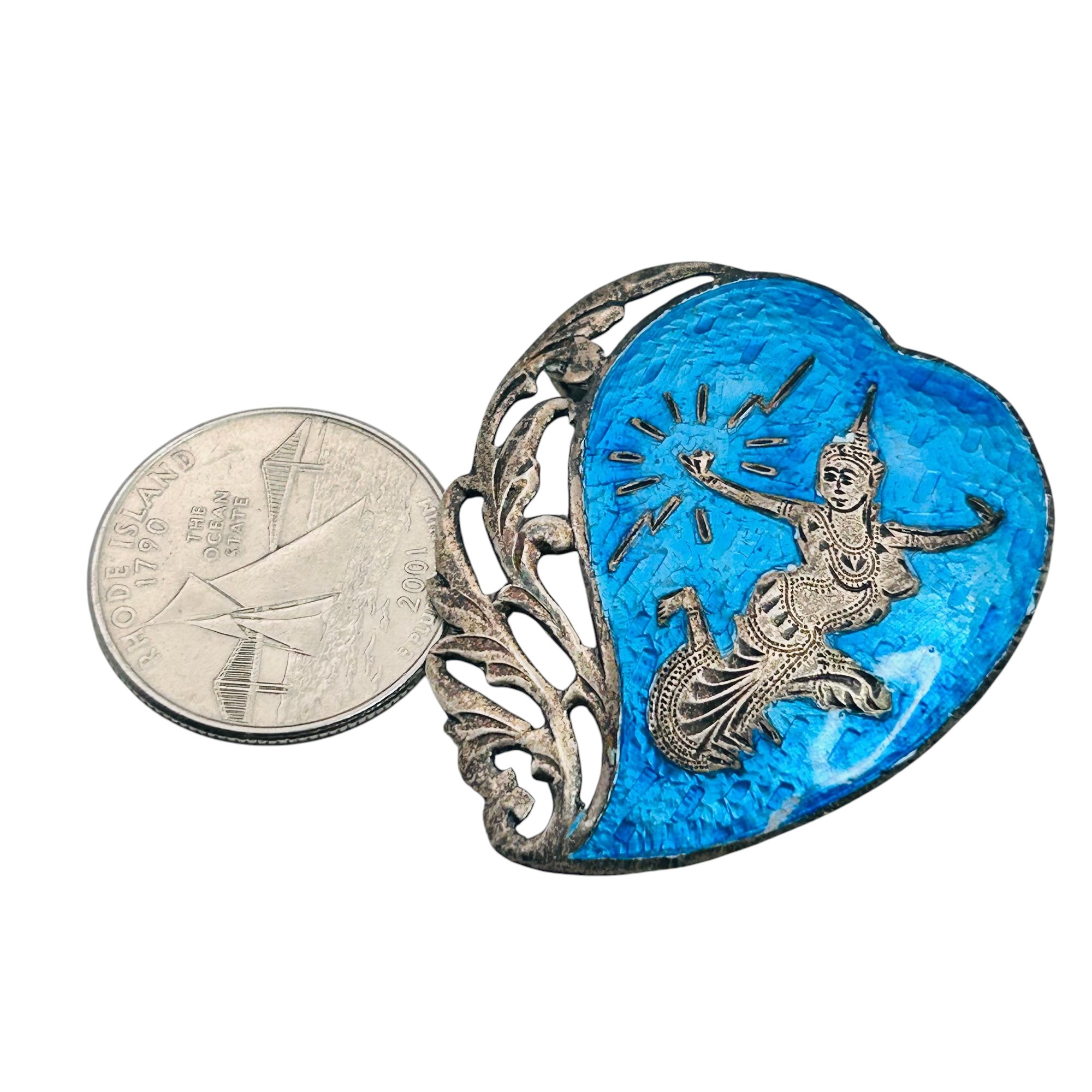 SIAM Sterling silver blue enamel dancing goddess brooch 9.02 g