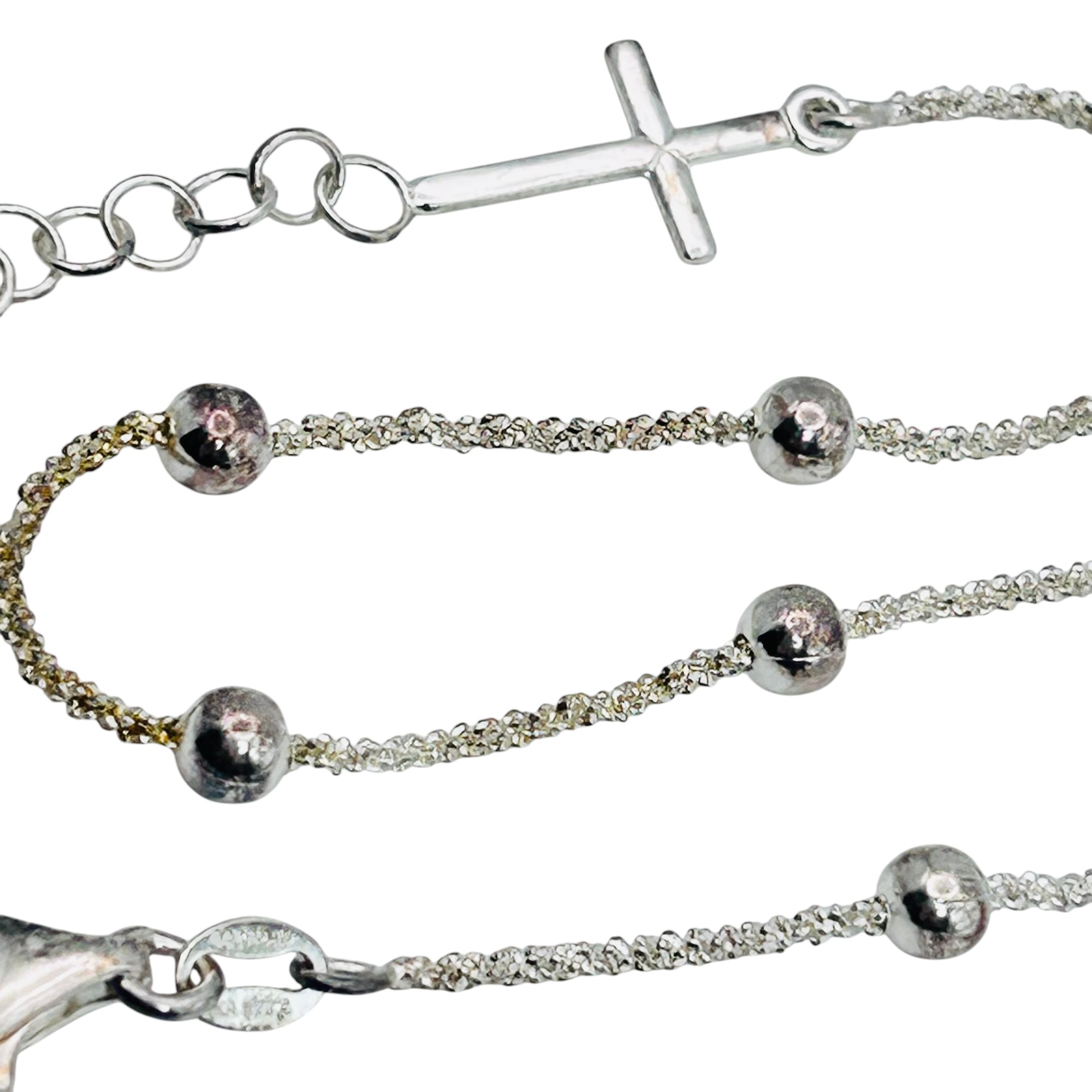 KA 1772 Italy popcorn and bead chain cross pendant bracelet 3.65 g