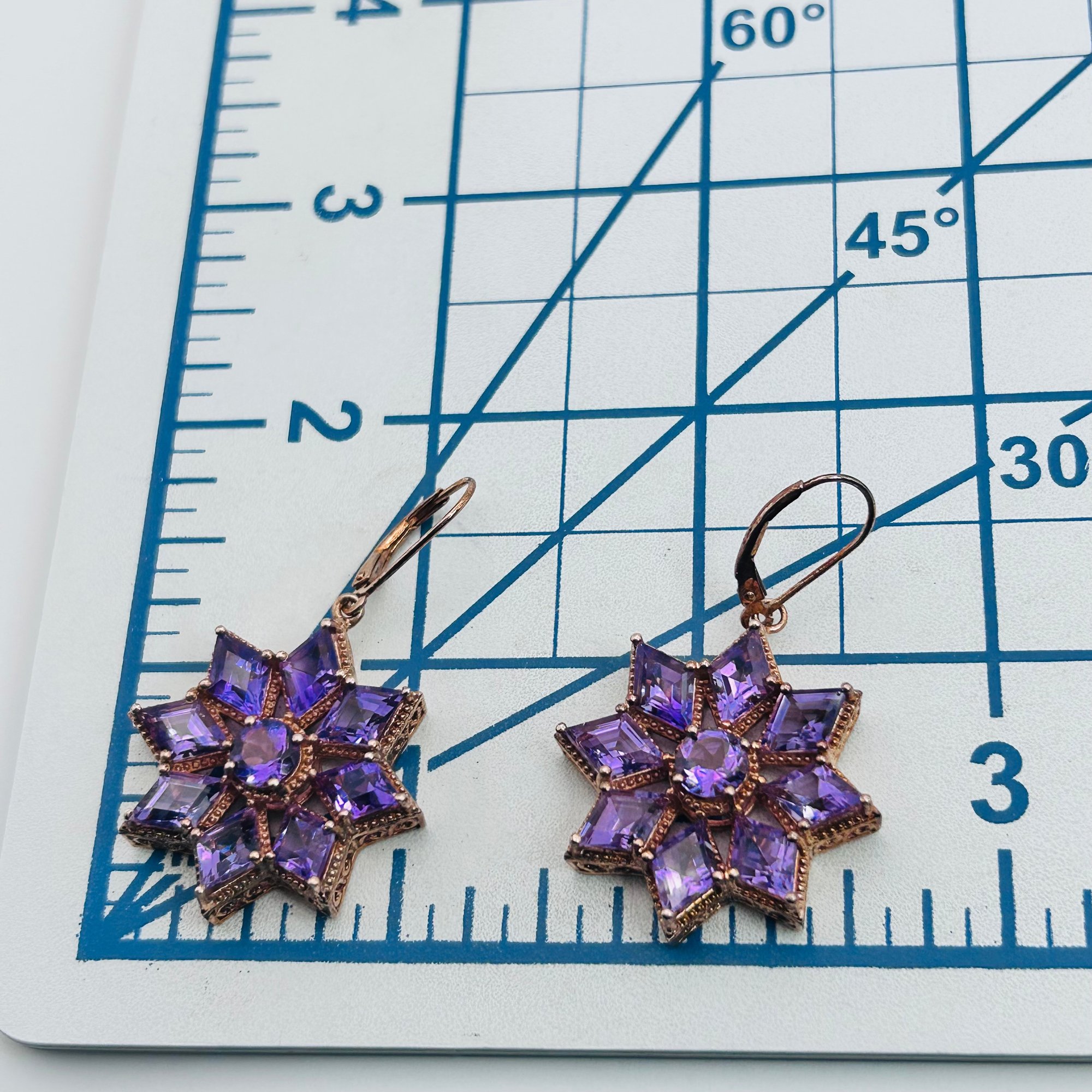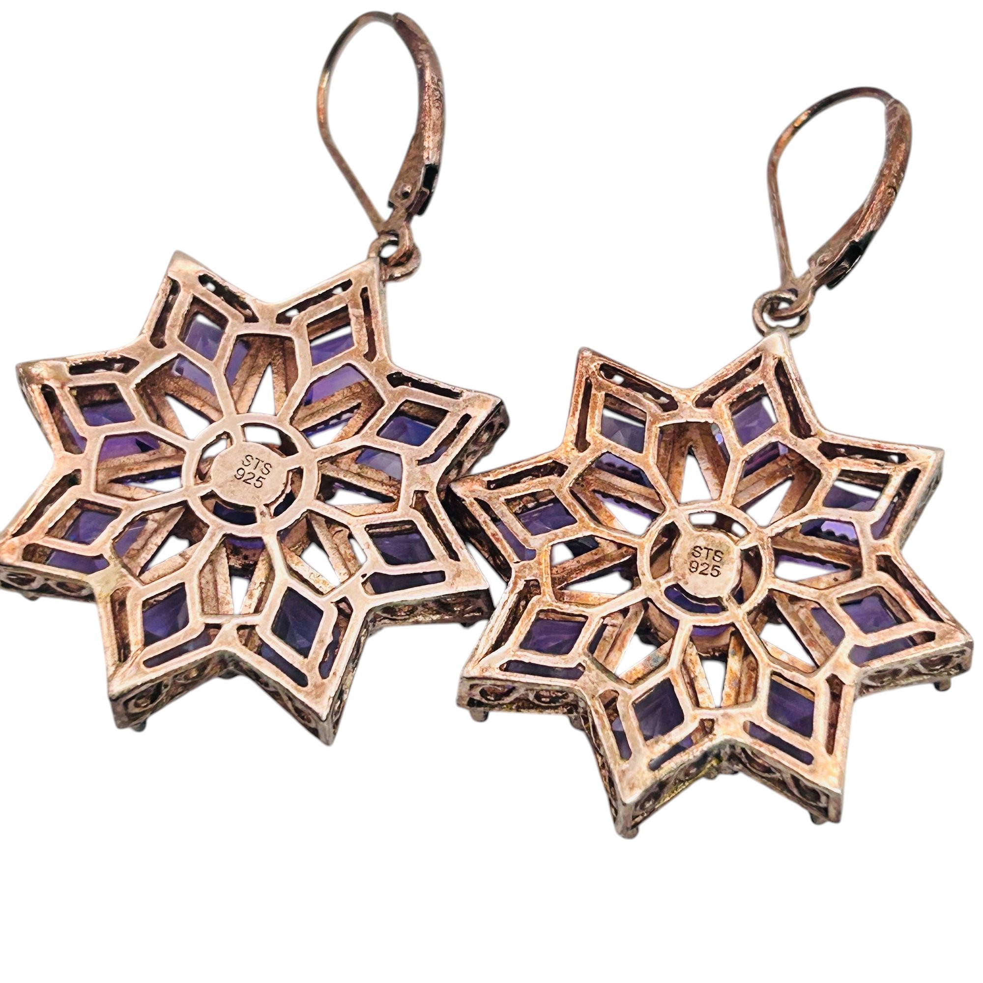 STS amethyst sterling silver rose gold colored hinge earrings 13.71 g