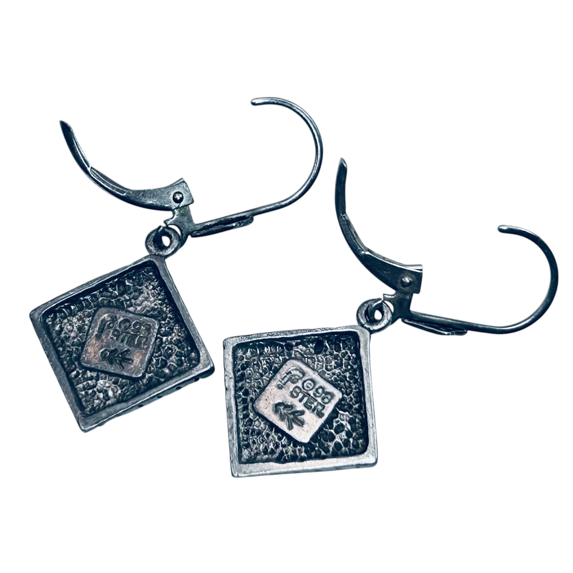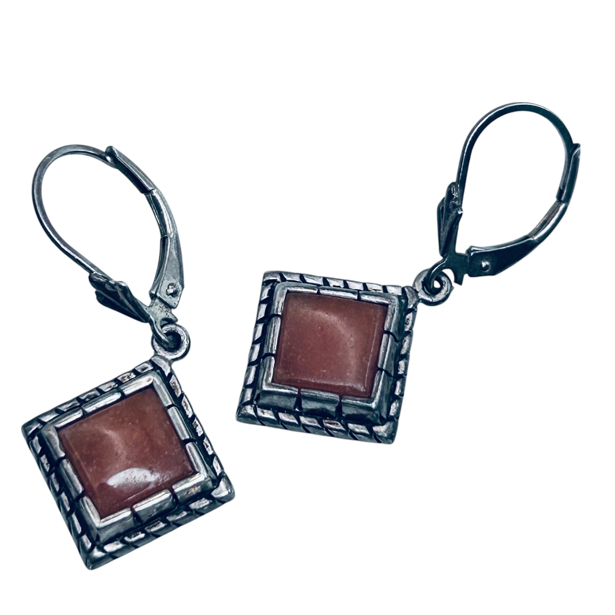 J Sterling silver orange stone diamond earrings. 5.56g.