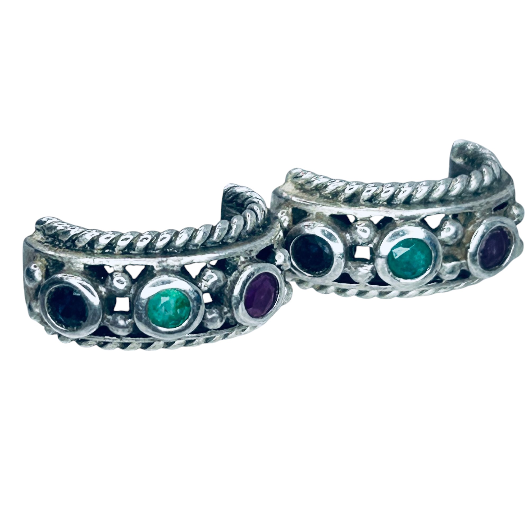 CNA TOPAZ – purple stone GARNET – green stone sterling silver earrings. 5.10 g.