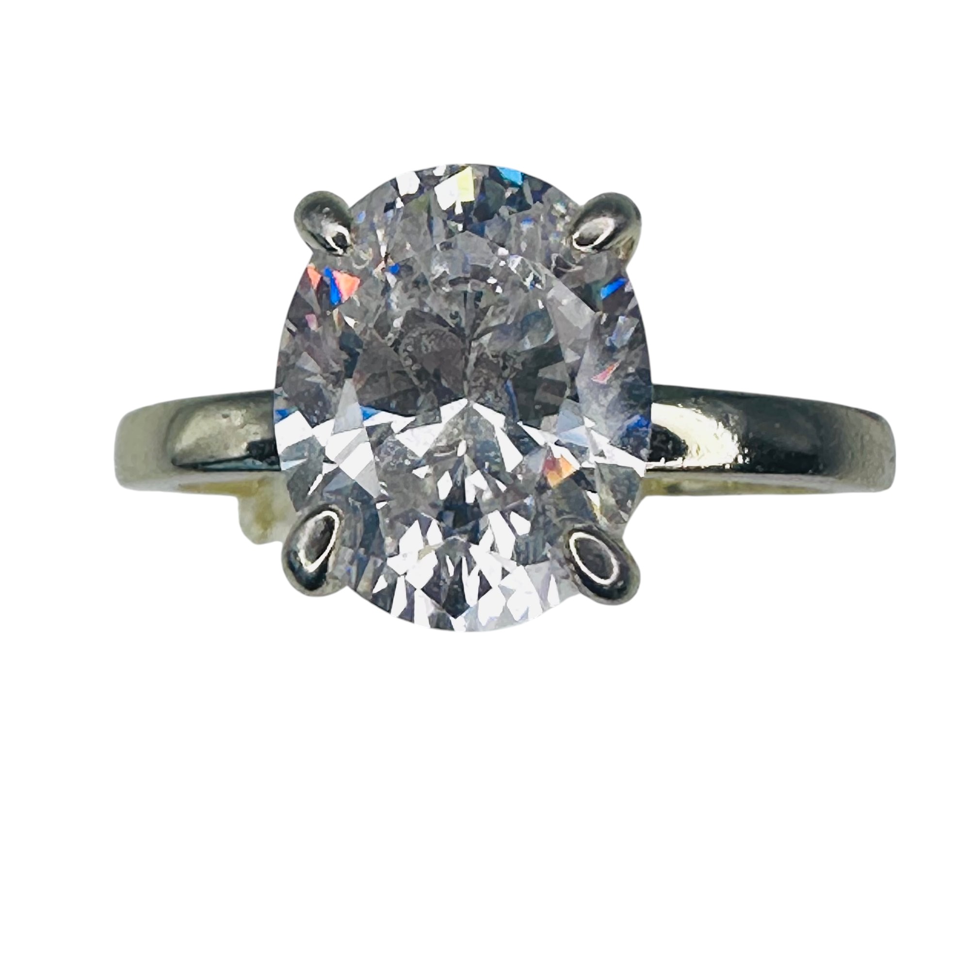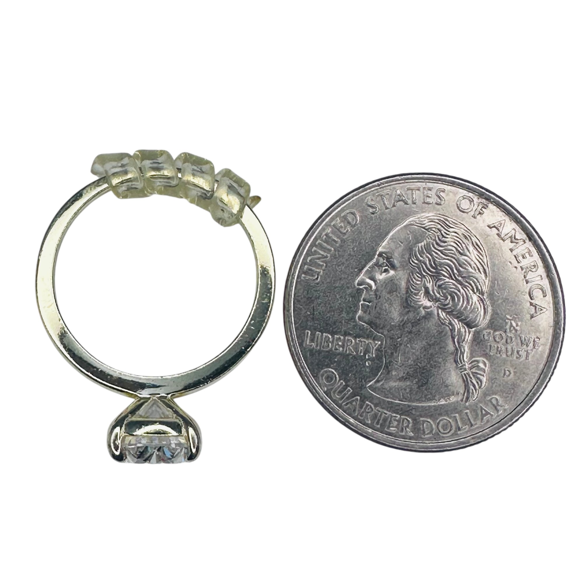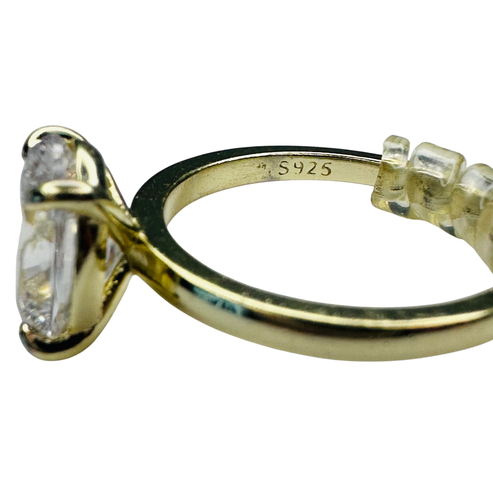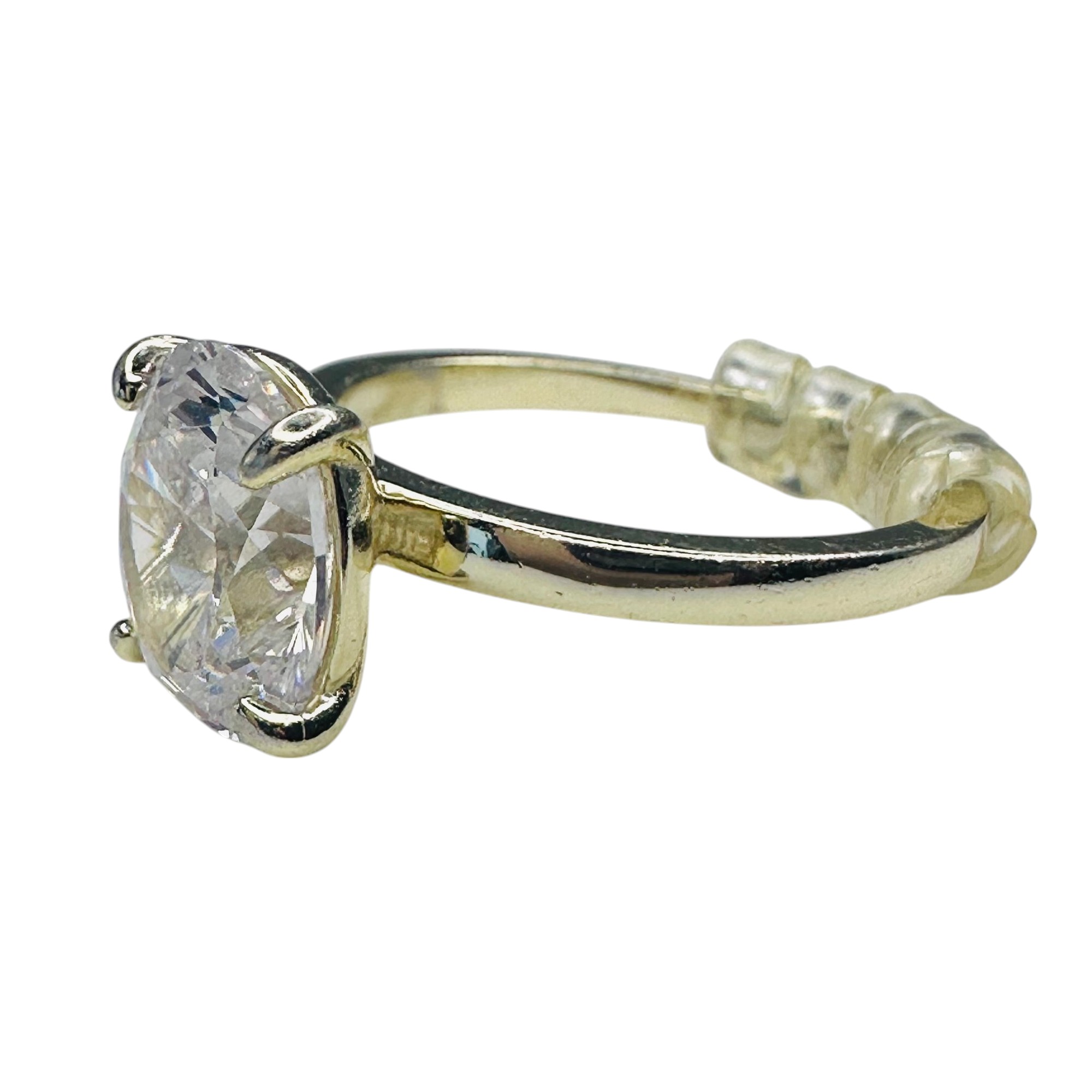 RHINESTONE Sterling silver gold colored solitaire setting engagement ring. Size 6. 3.28 g. Removable rubber pad.
