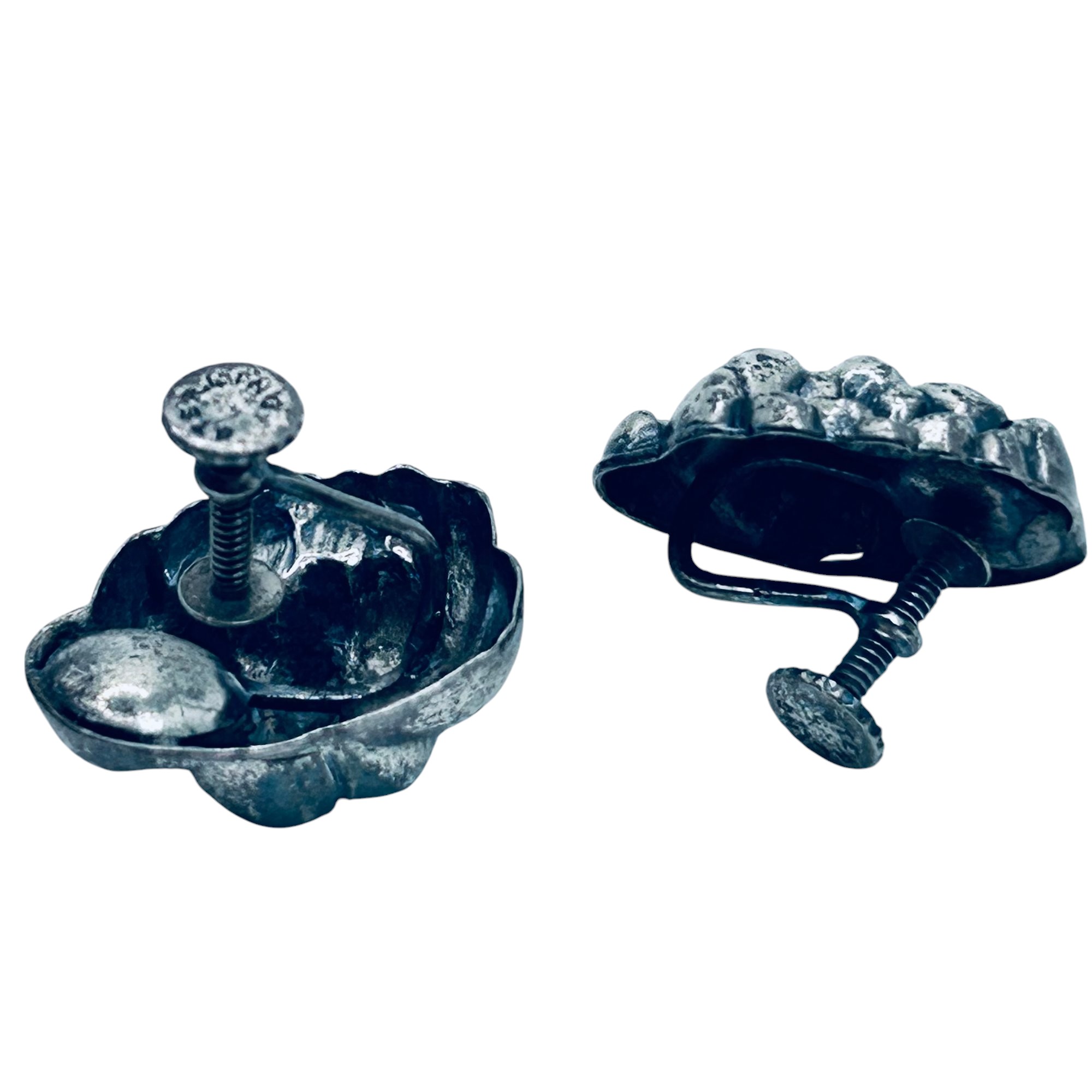 Sterling silver artichoke screwback earrings. 4.03 g.
