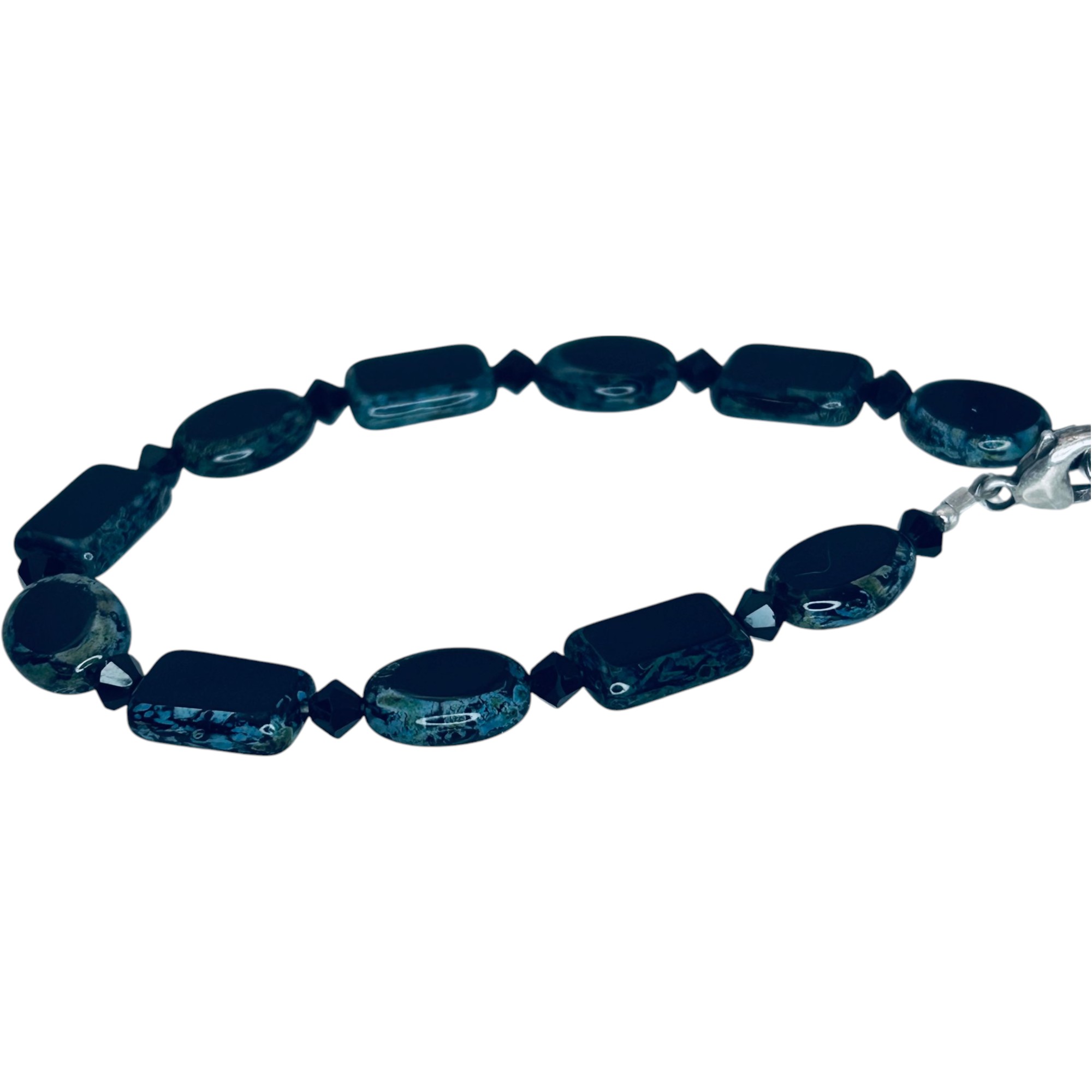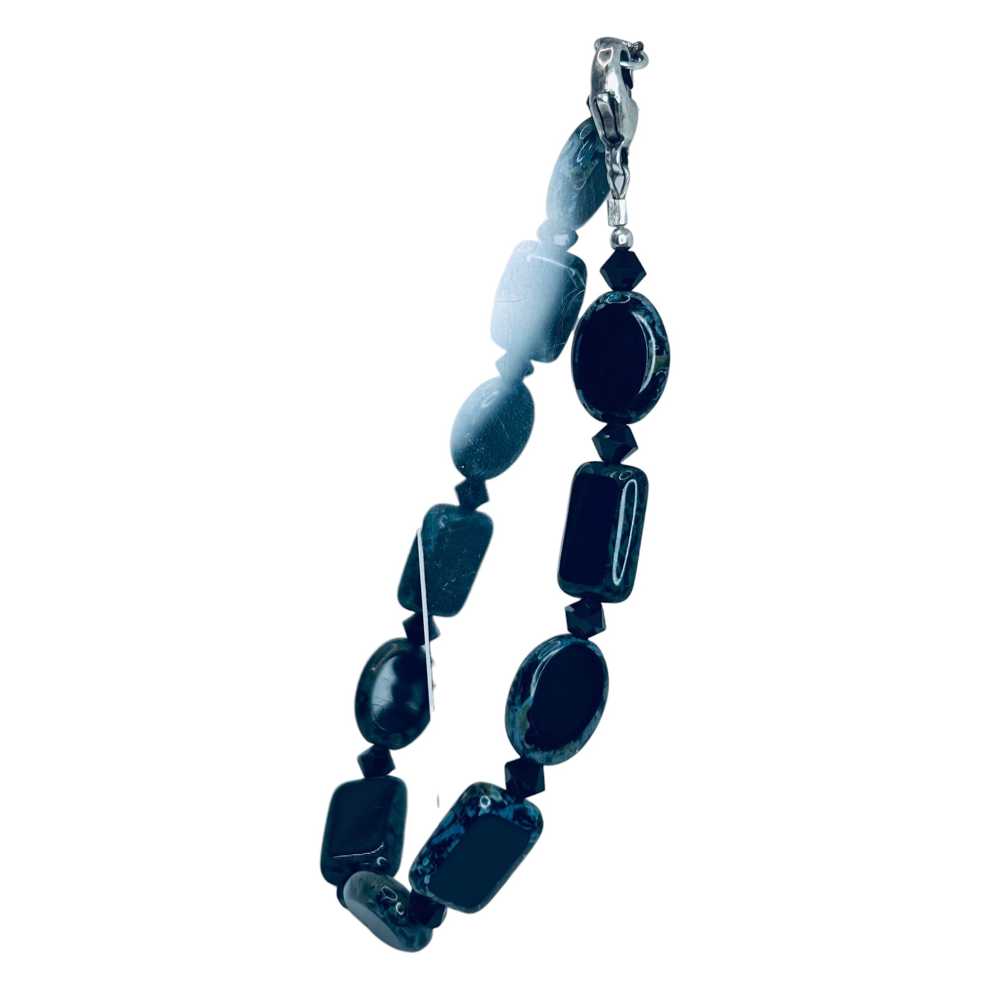 Sterling silver Black stone oval and rectangle bracelet. 9.04 g.