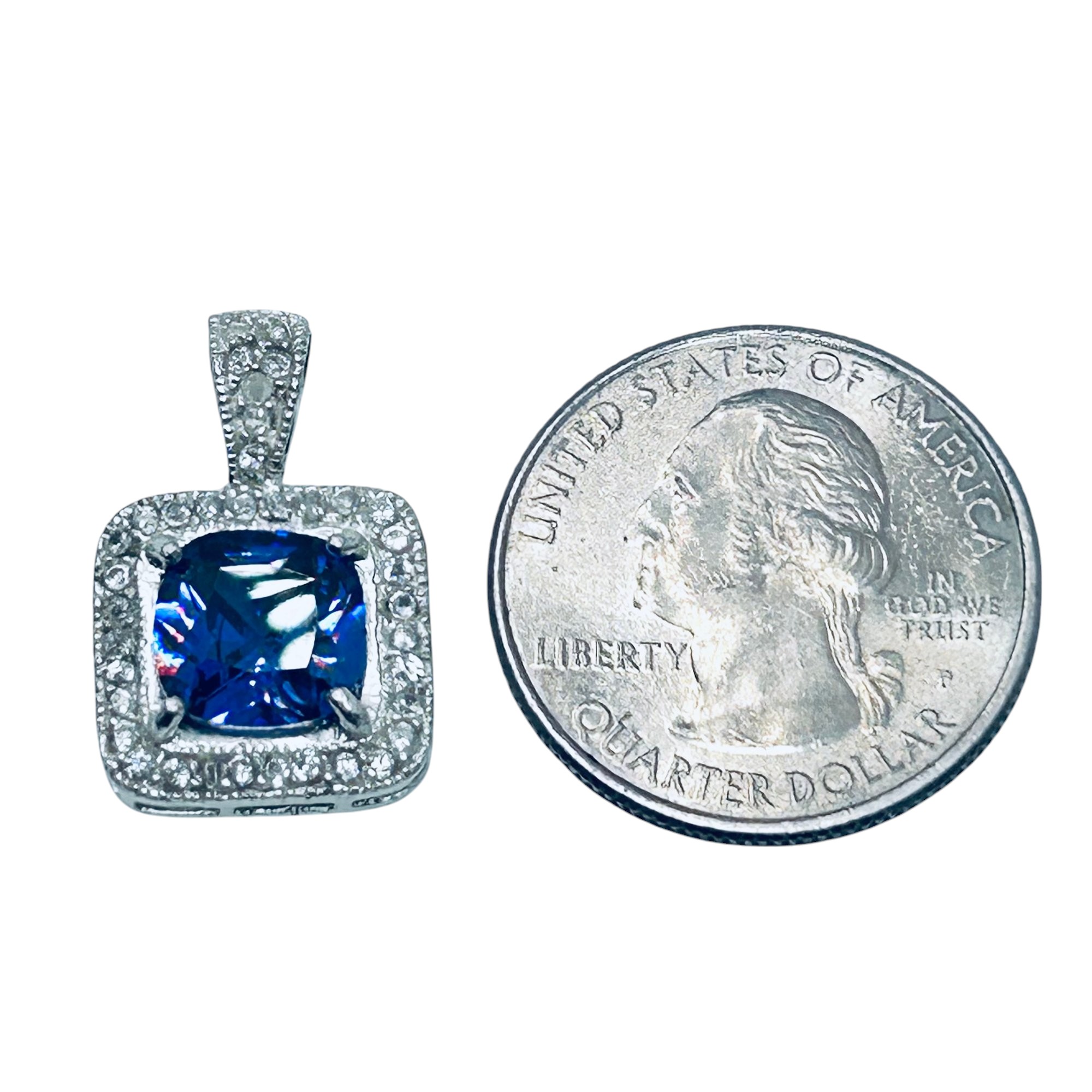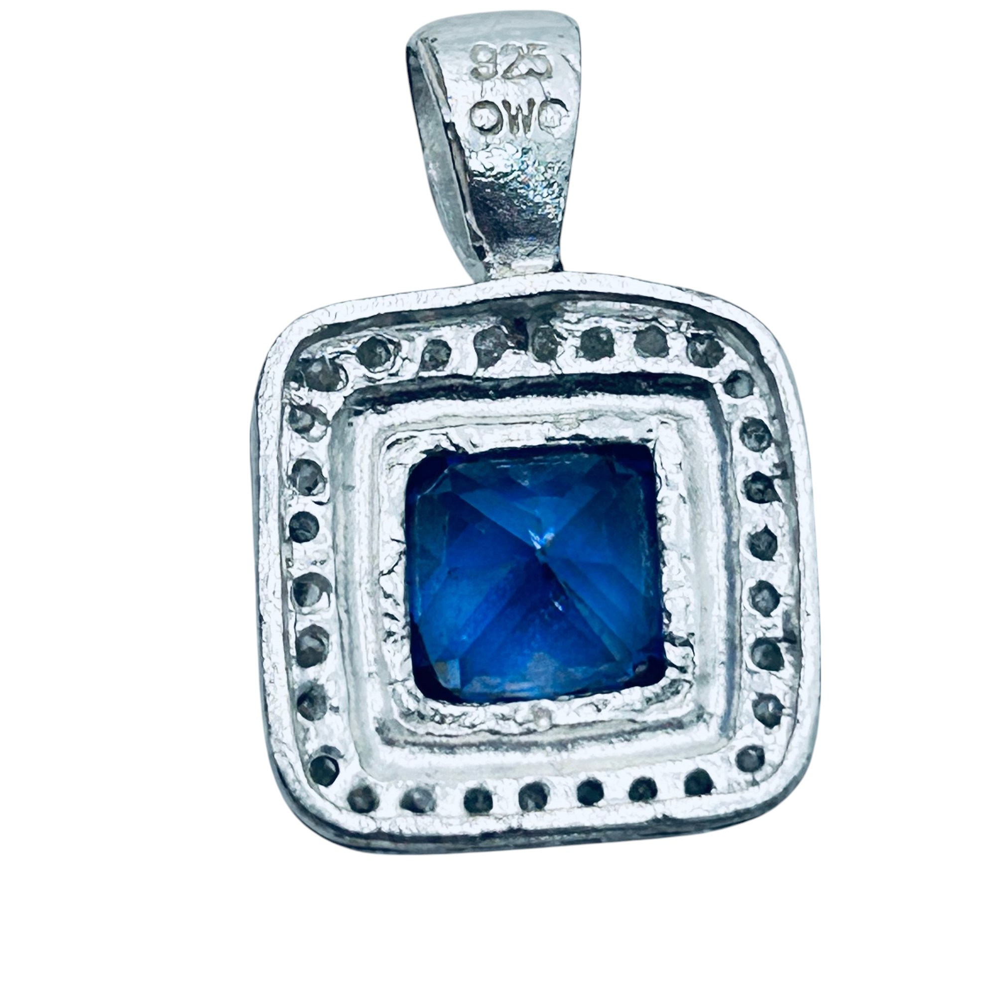 OWC RHINESTONE sterling silver halo pendant. 3.15g.