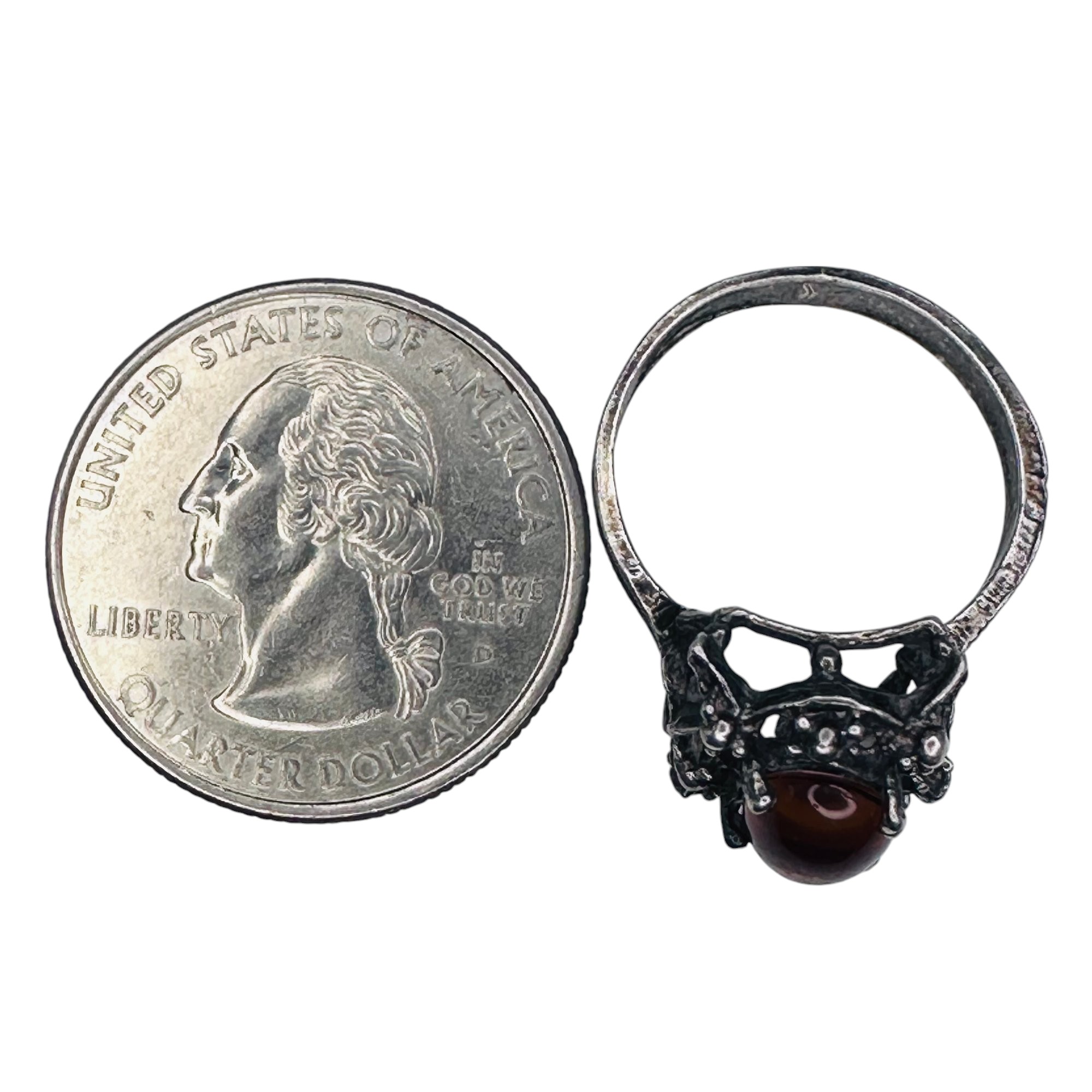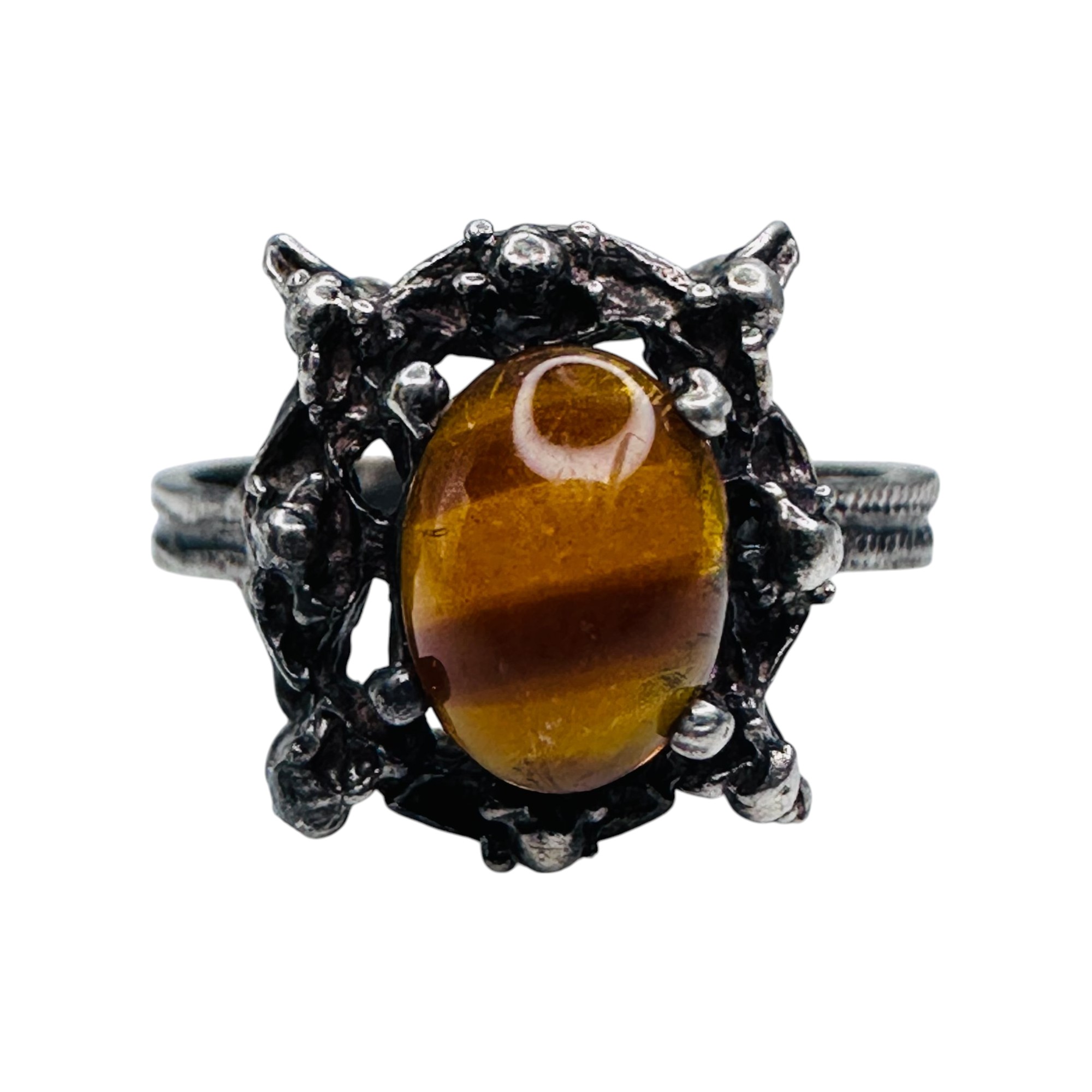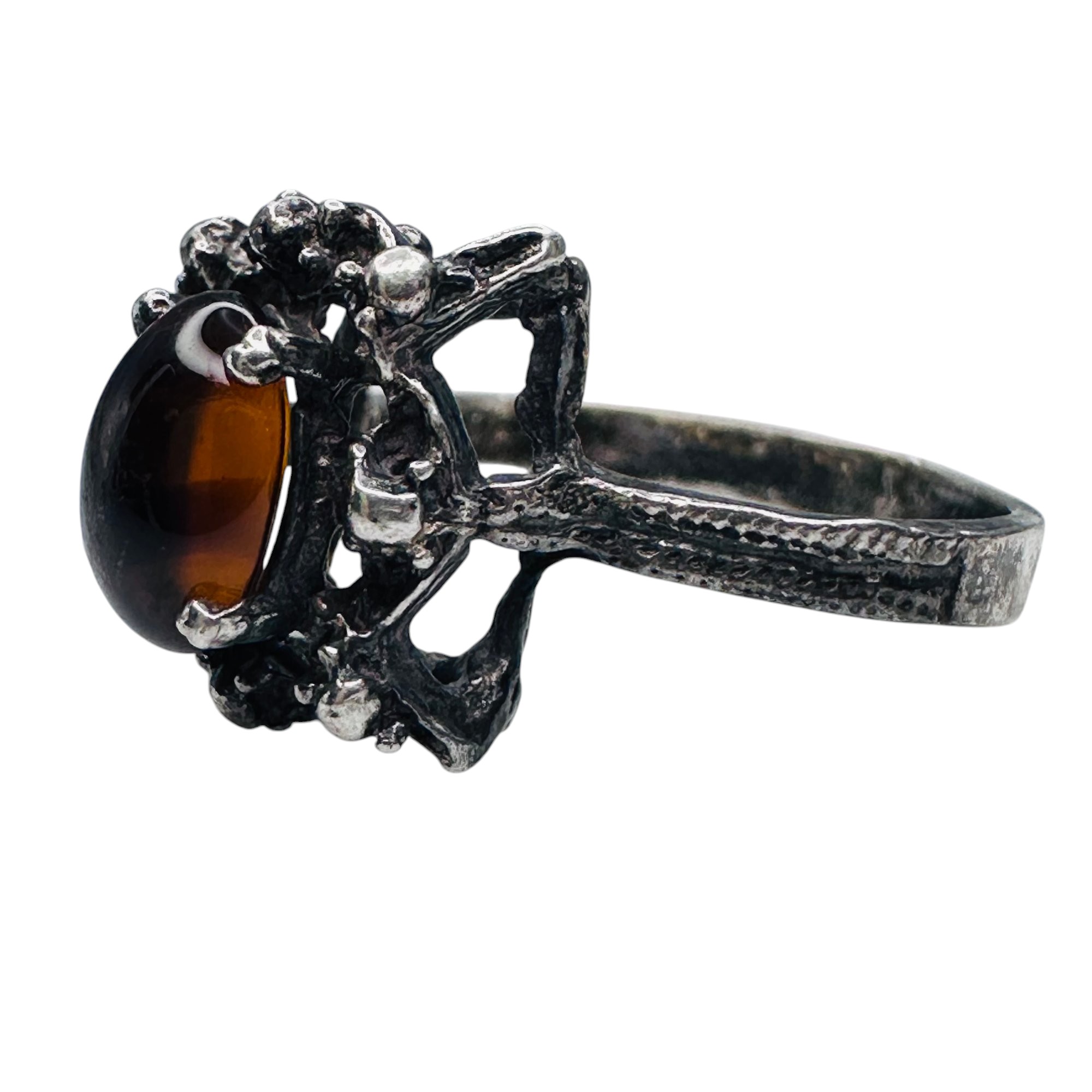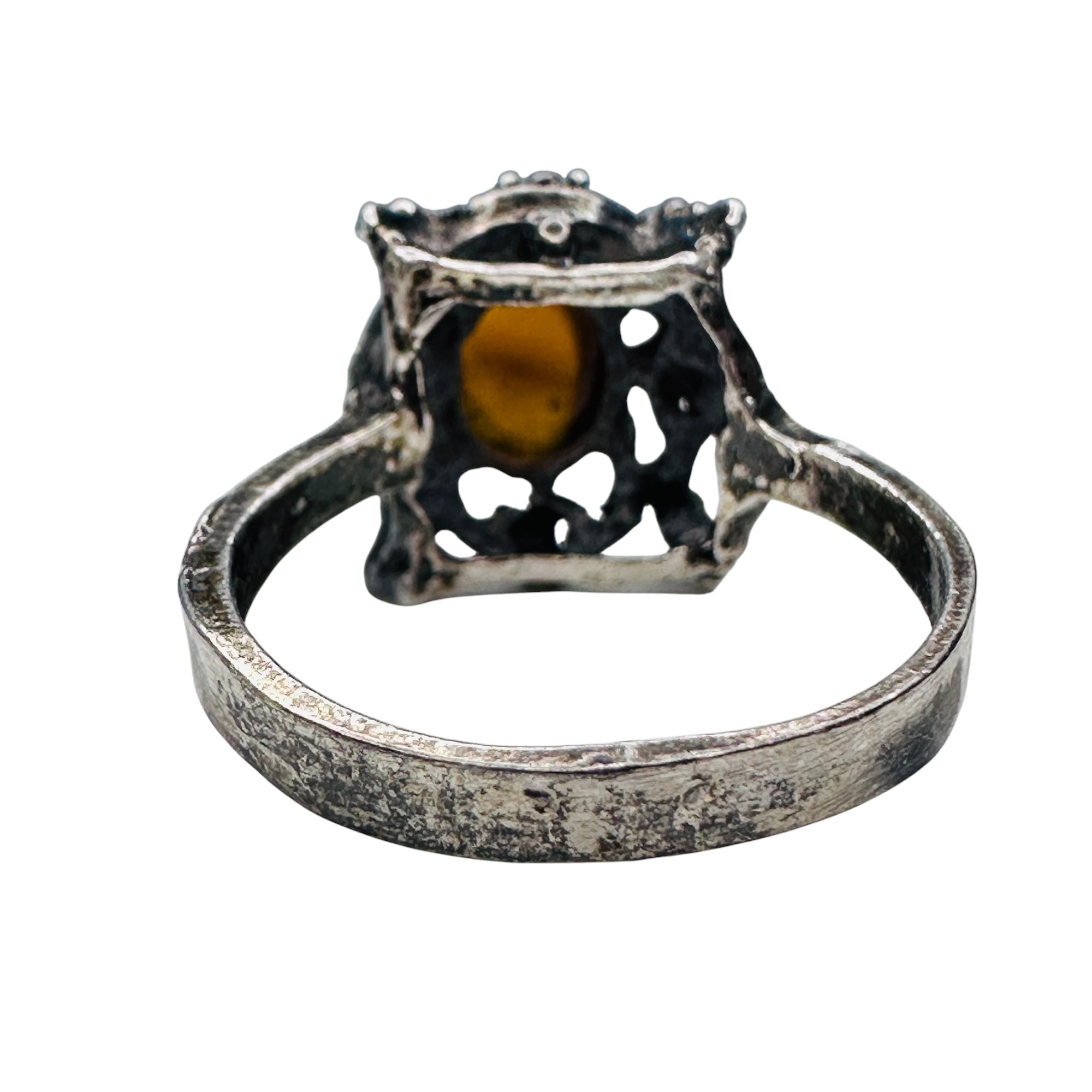 Amber vintage sterling silver statement ring size 6 2.71 g