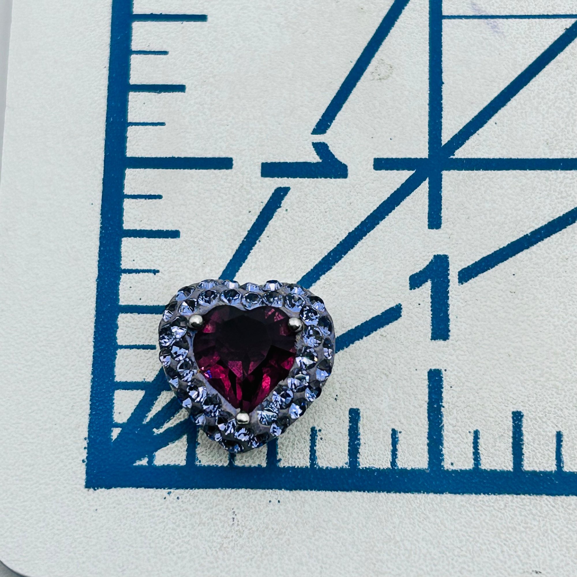 AU Sterling silver purple rhinestone heart pendant 3.30 g