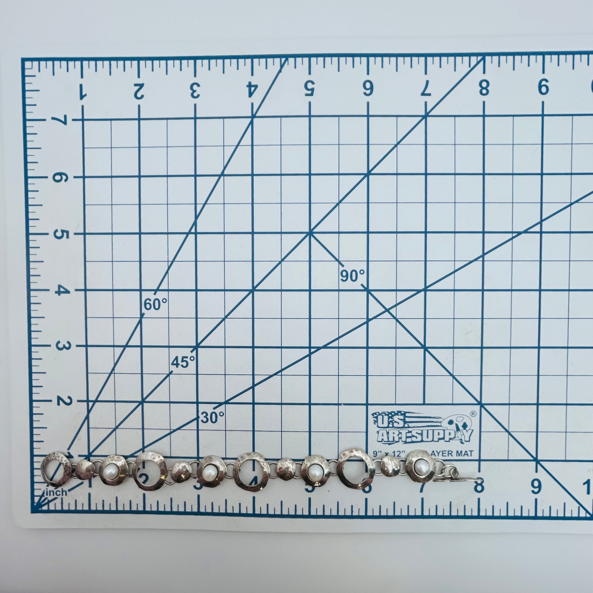 DL Pearl Hammered Open Circle Linked Bracelet Toggle Clasp Signed DL 14.18 G