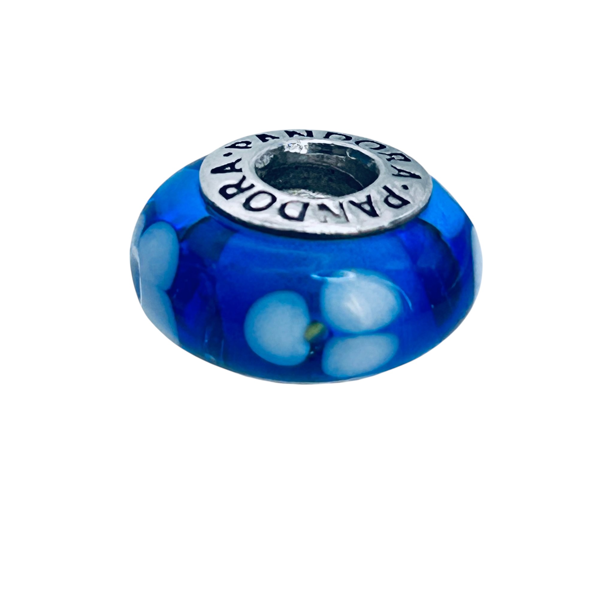 Pandora ALE sterling silver blue with white flowers charm. 2.98 g.