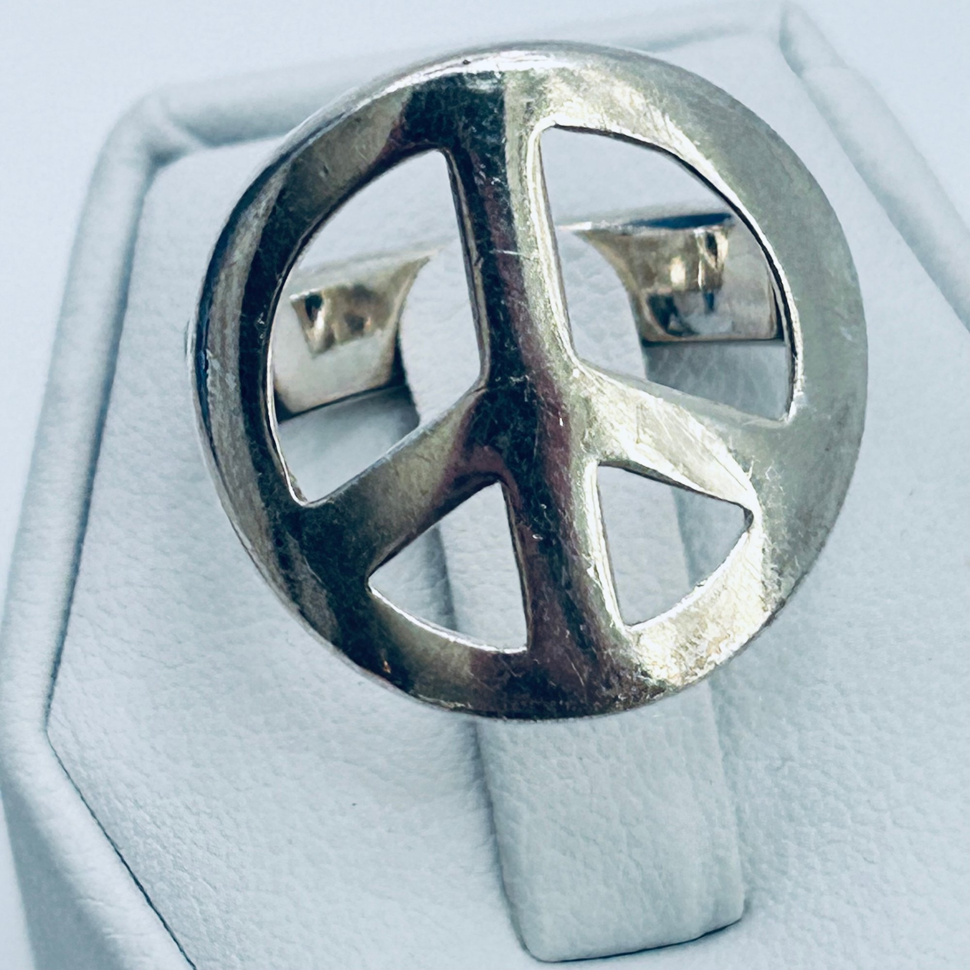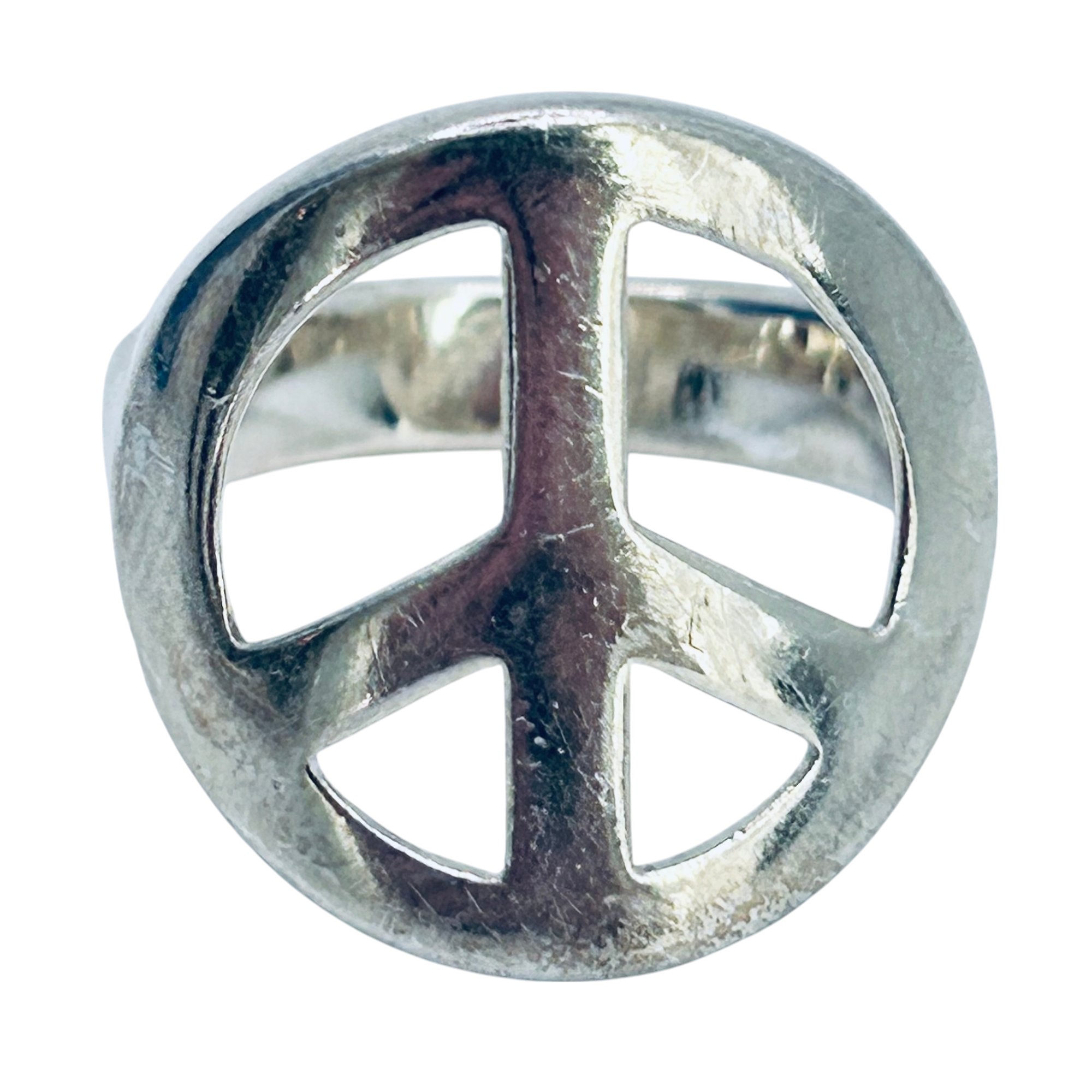 COACH turkey sterling silver solid peace sign ring. Size 7.5. 9.28 g.