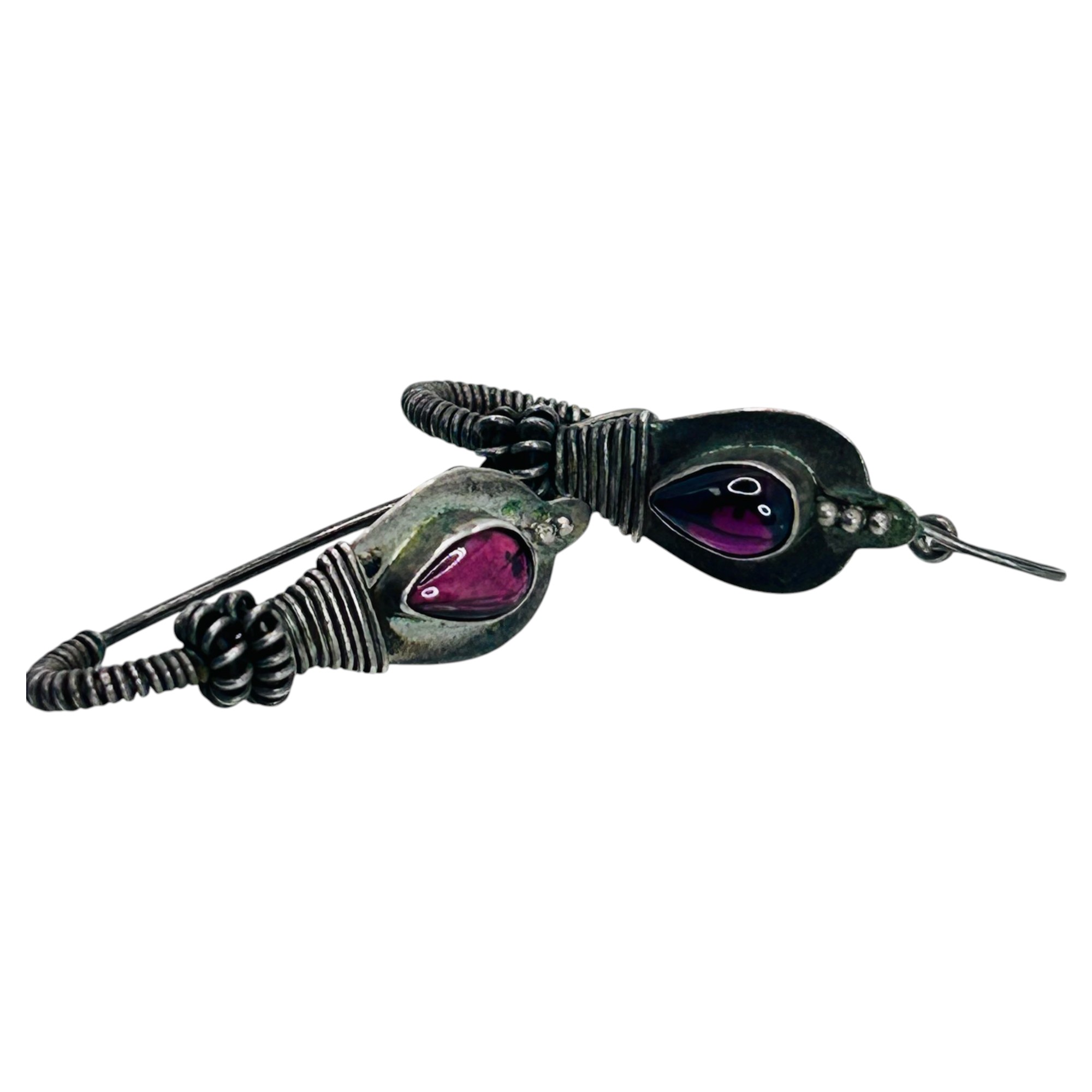 Teardrop GARNET sterling silver unique earrings. 4.60g.