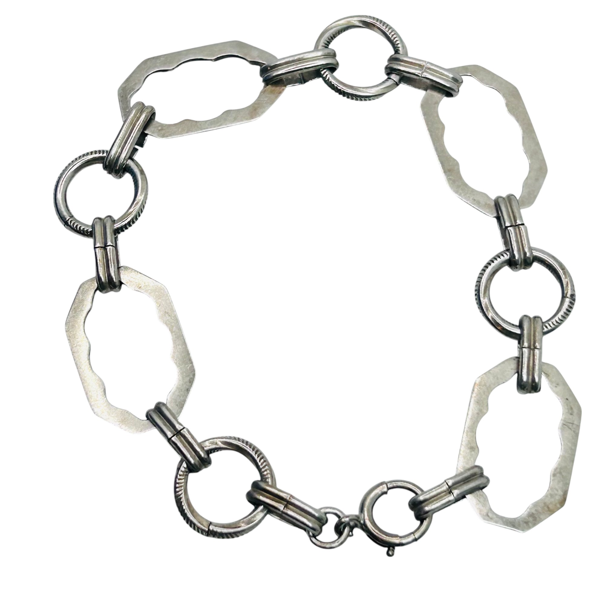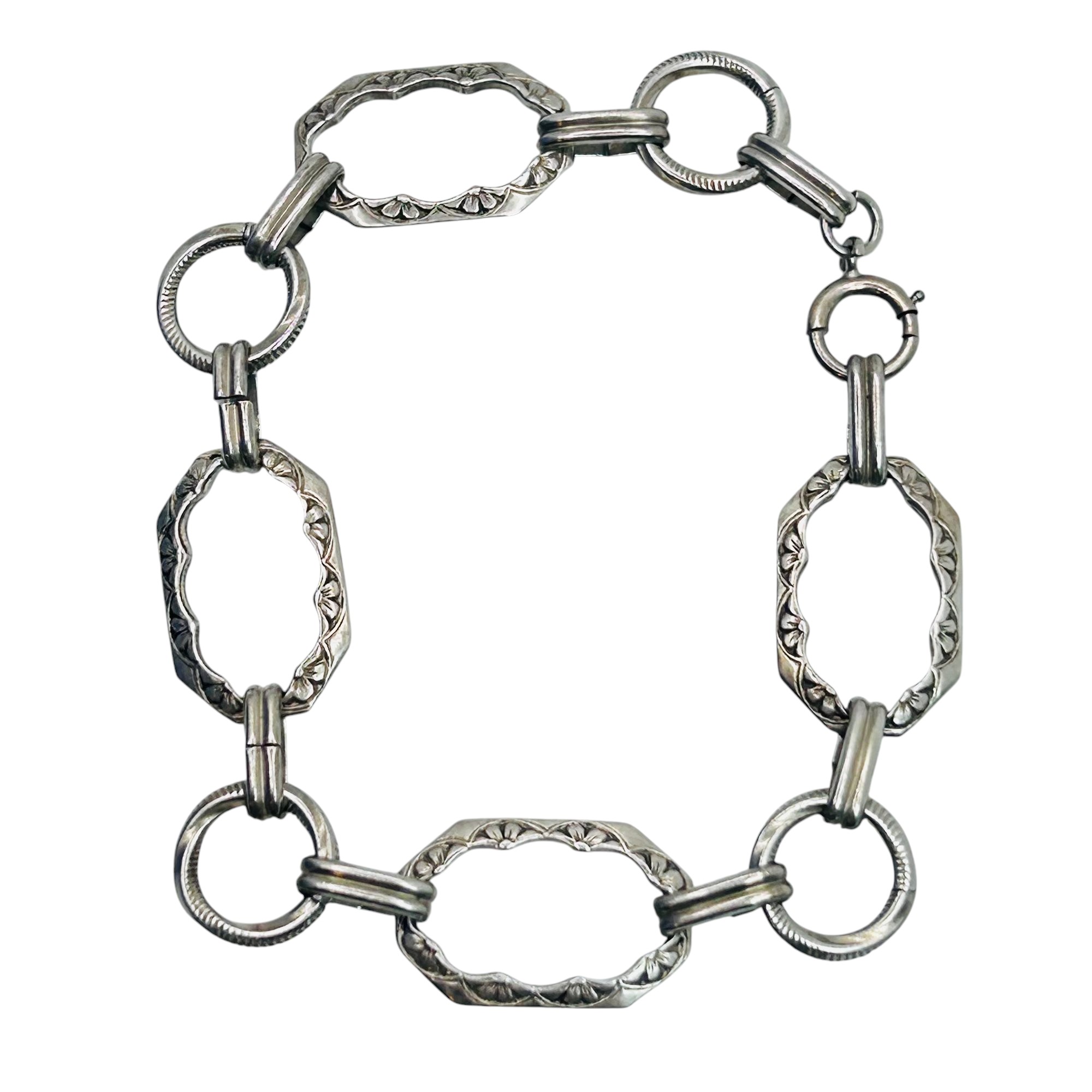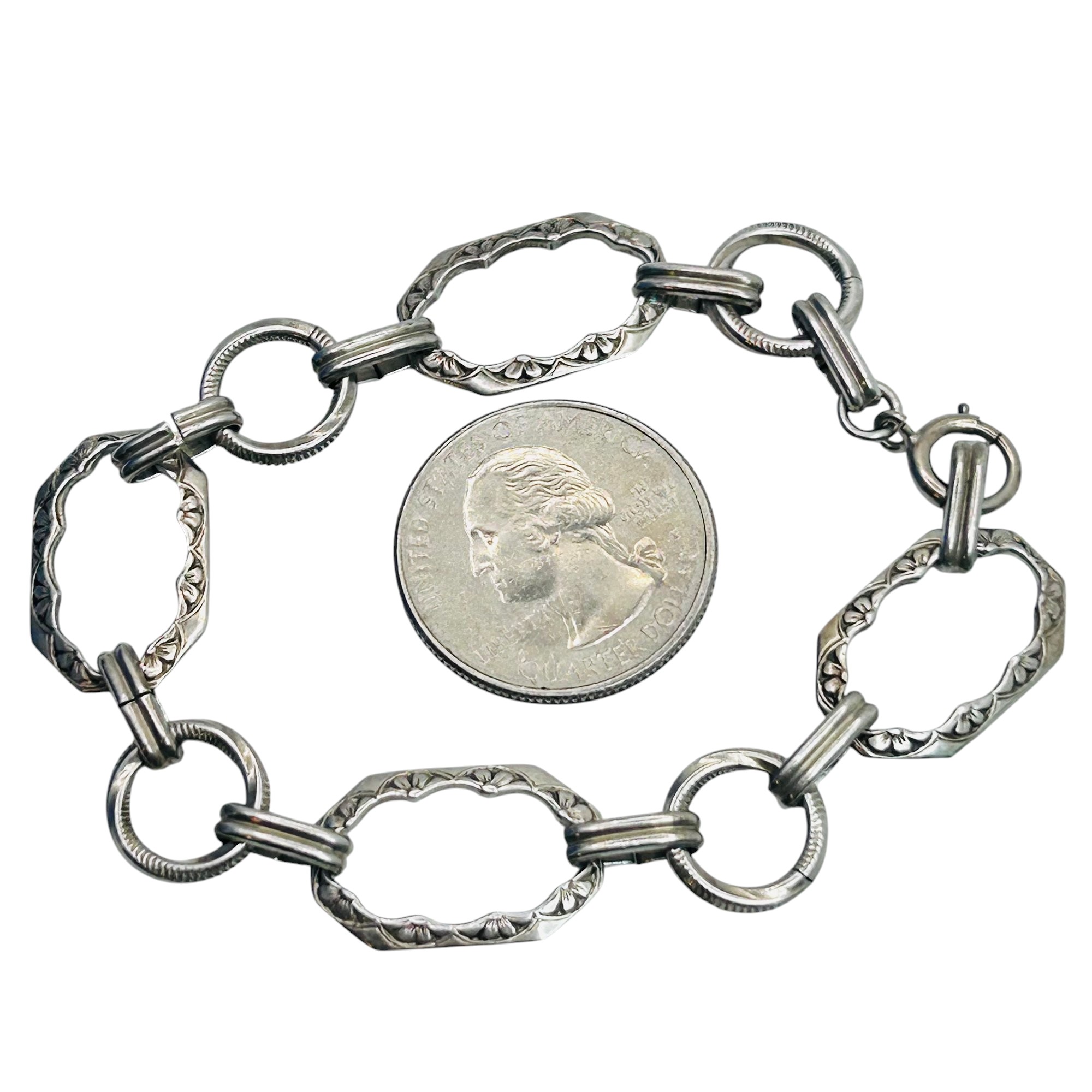 Sterling silver floral engraved linked bracelet. 11.00 g.