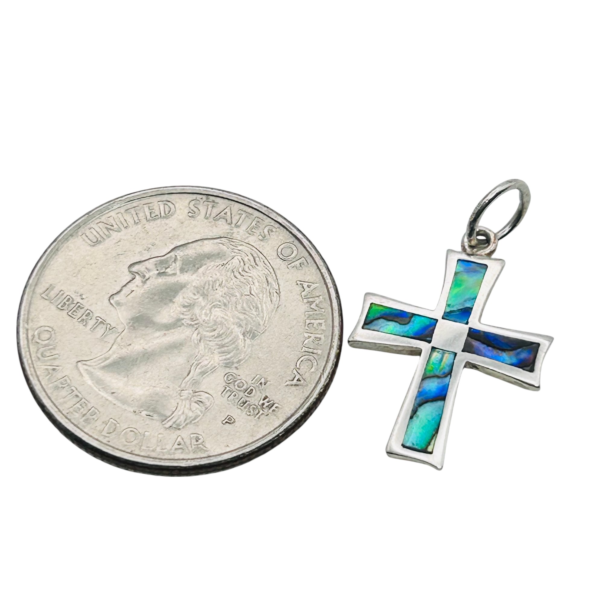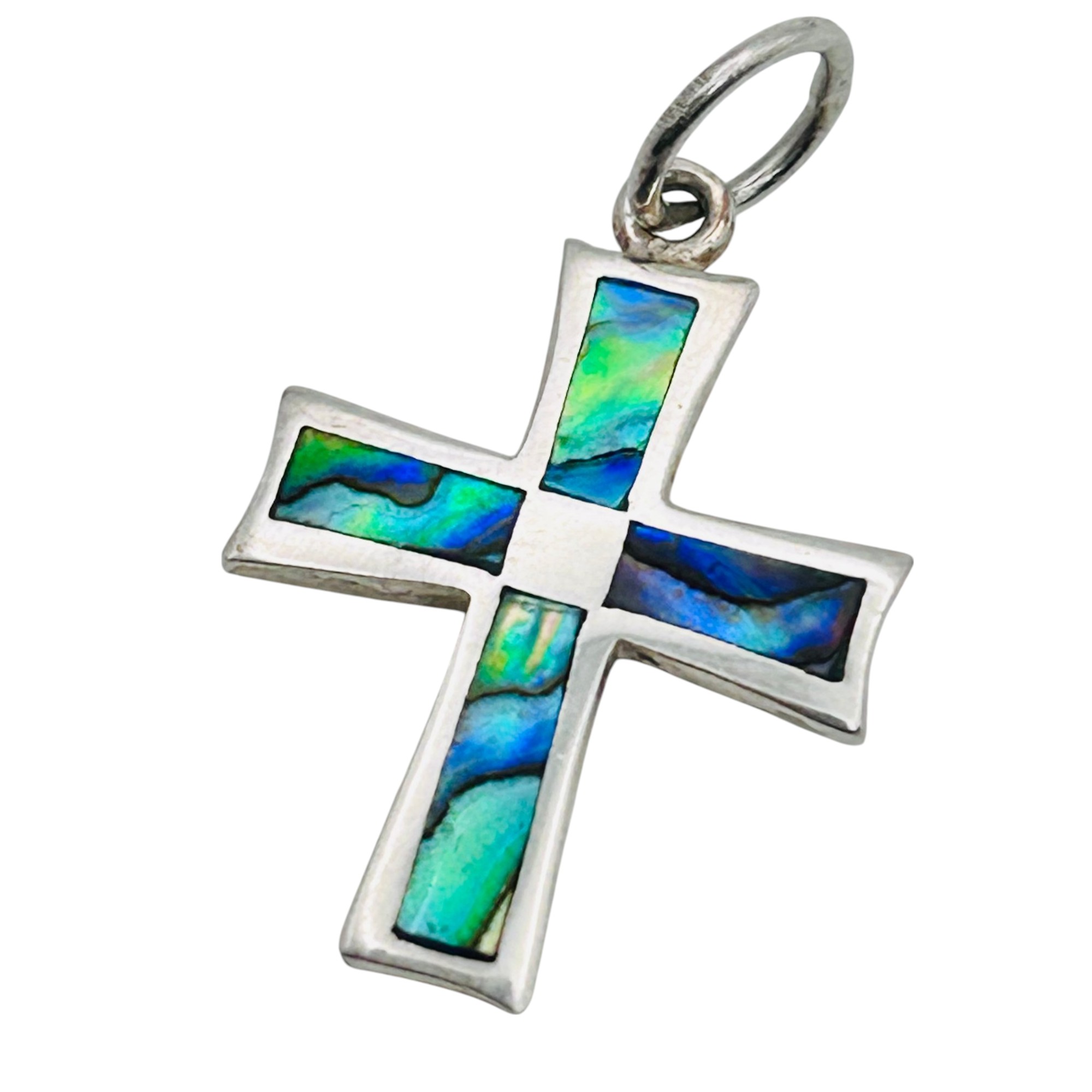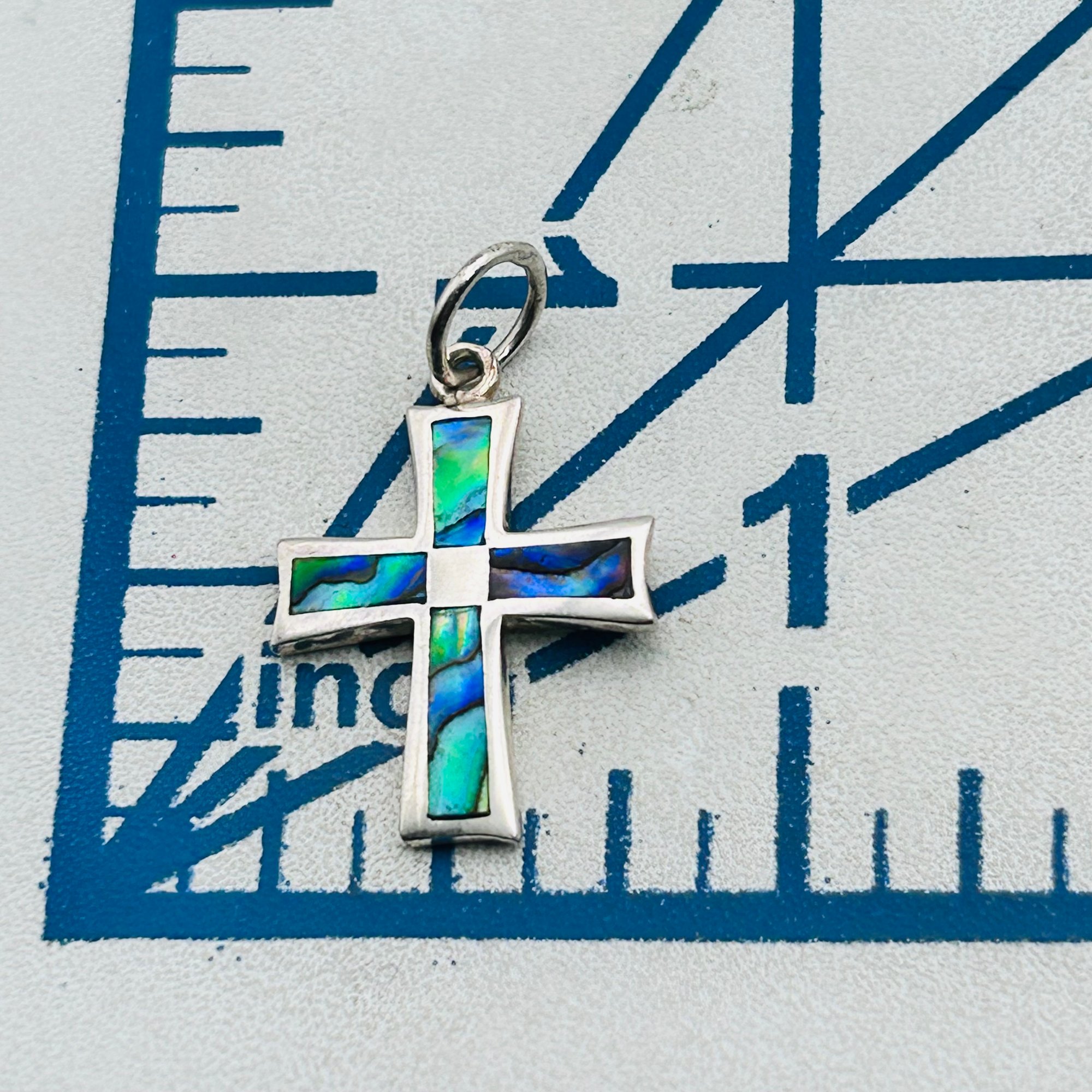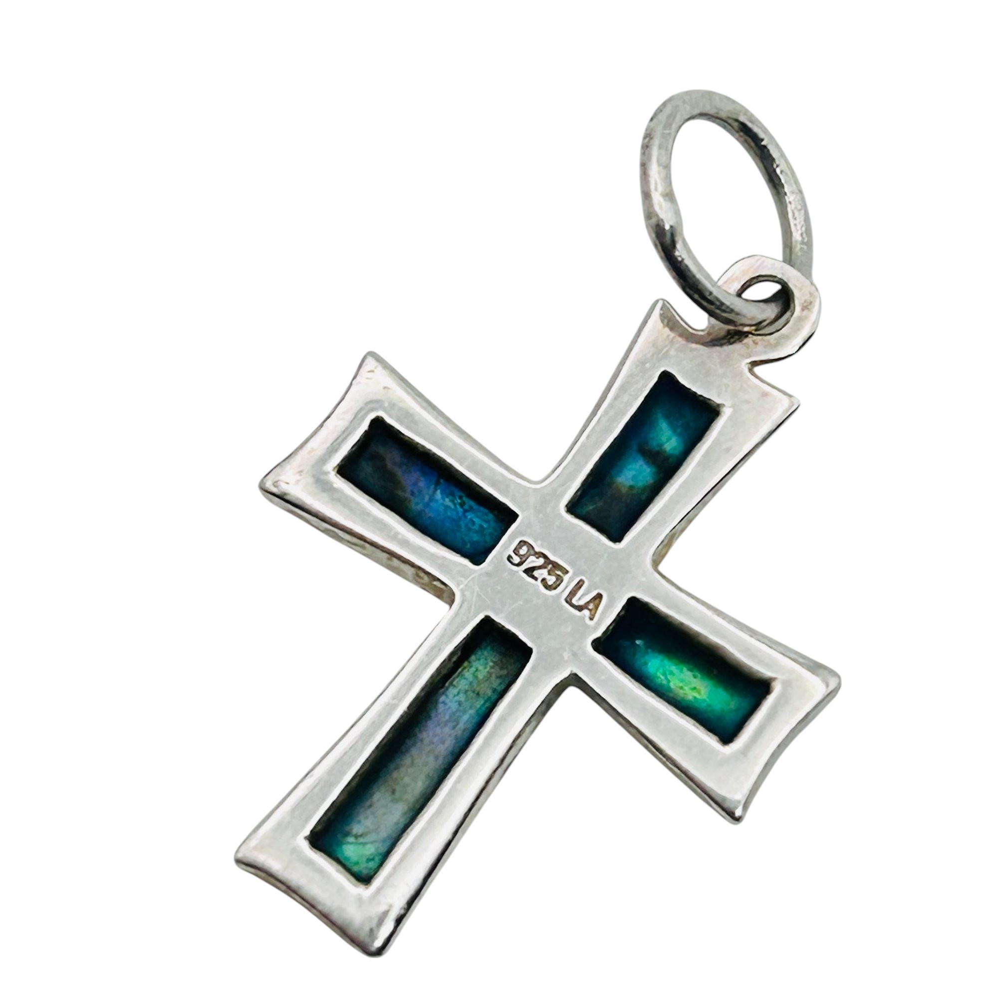 LA inlaid abalone sterling silver cross pendant 1.07g