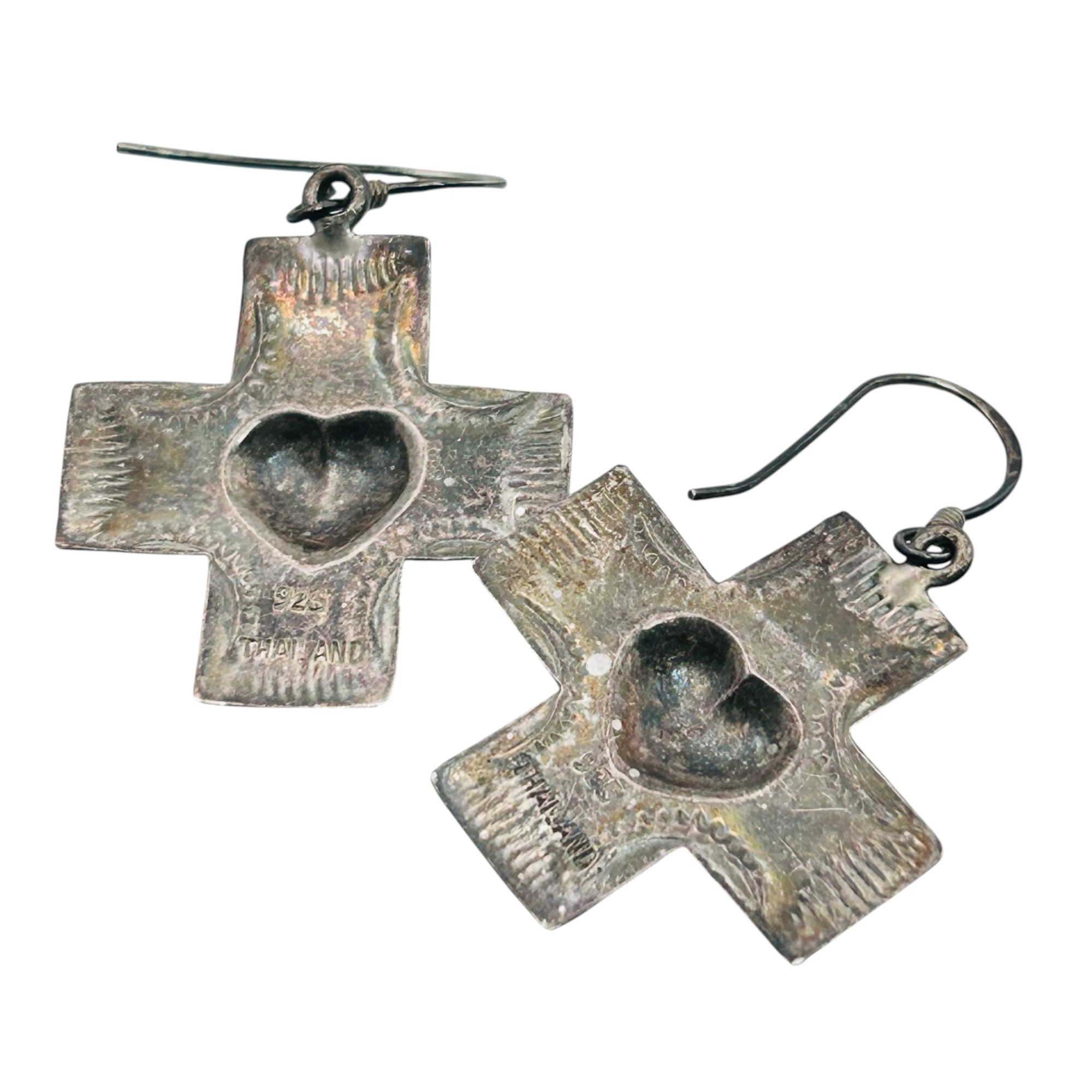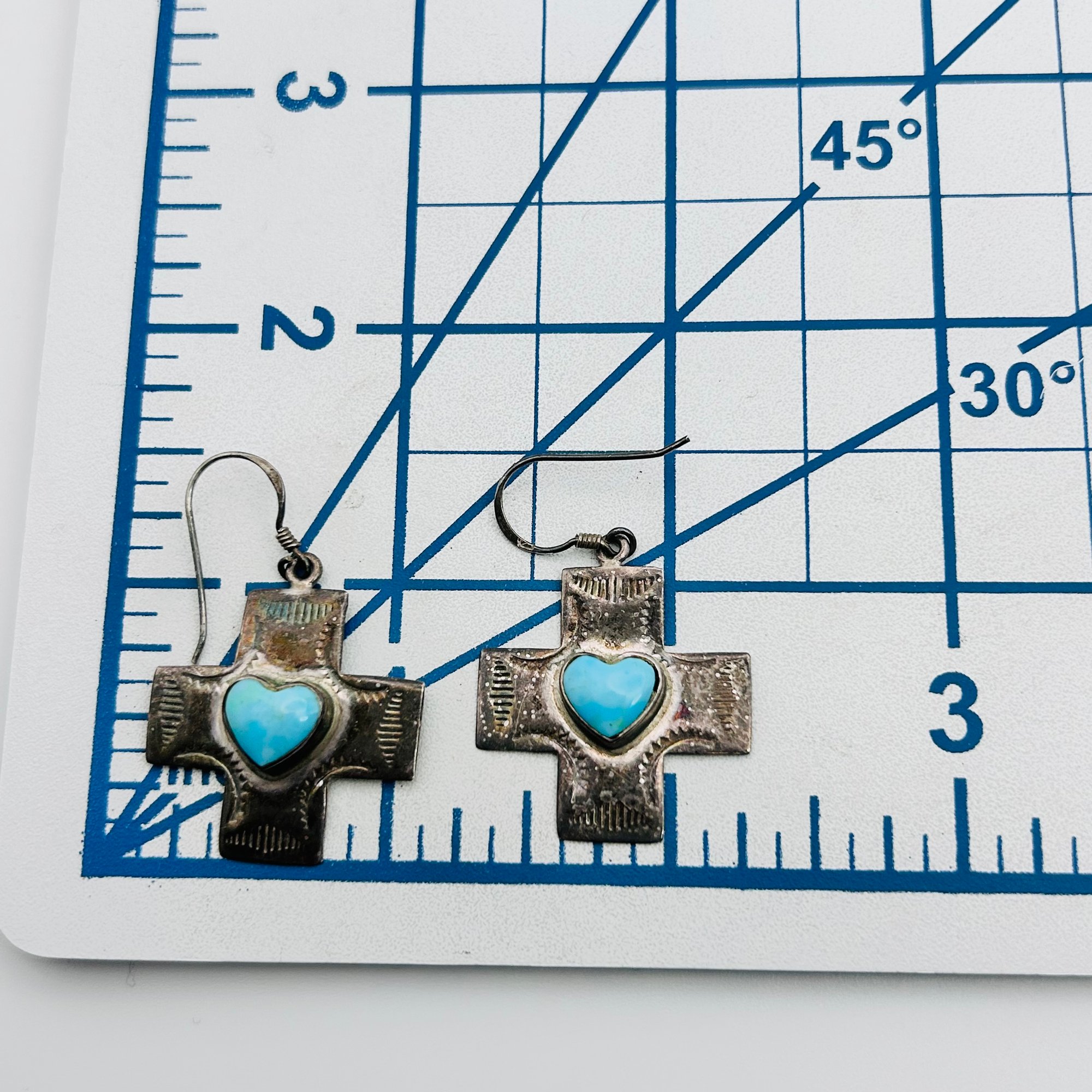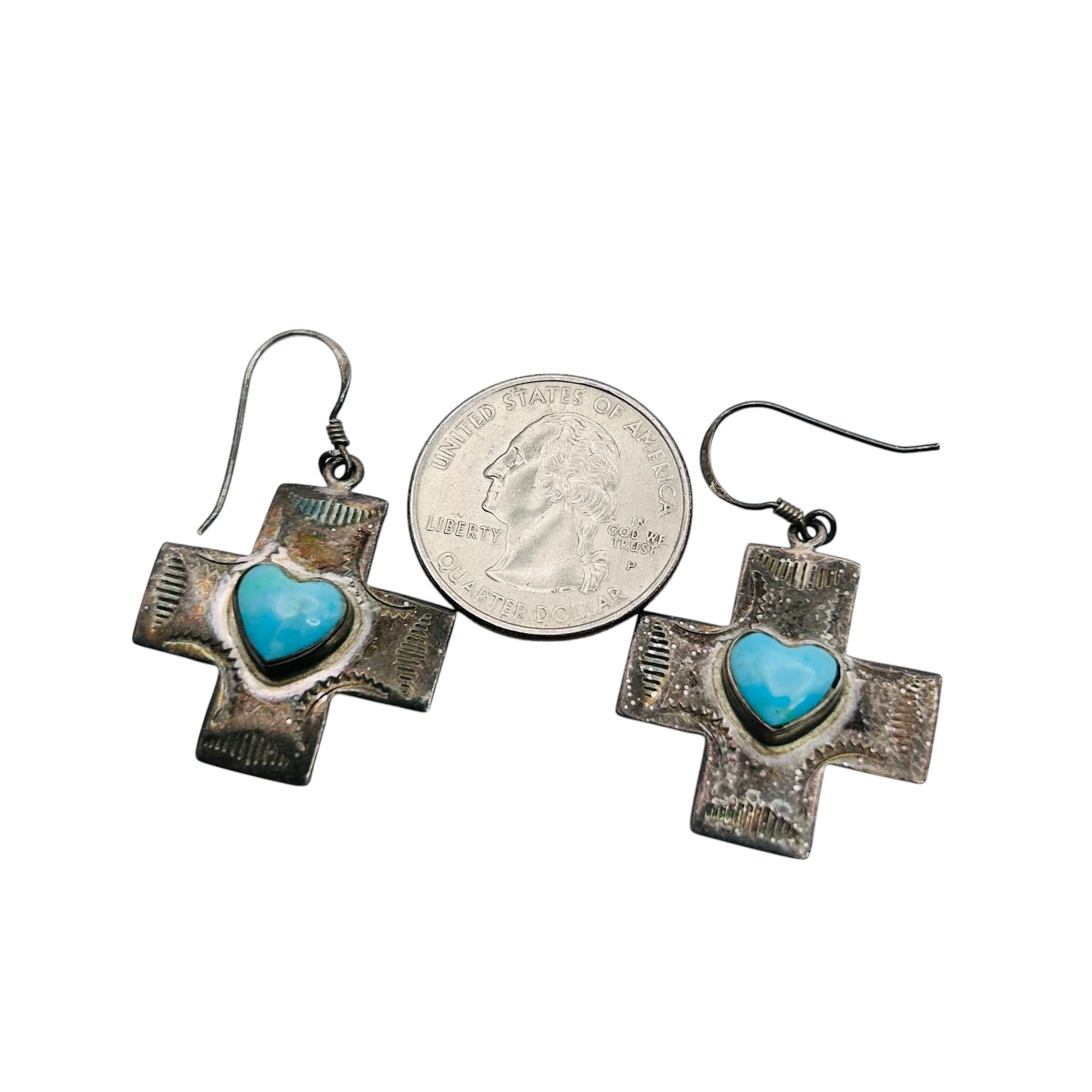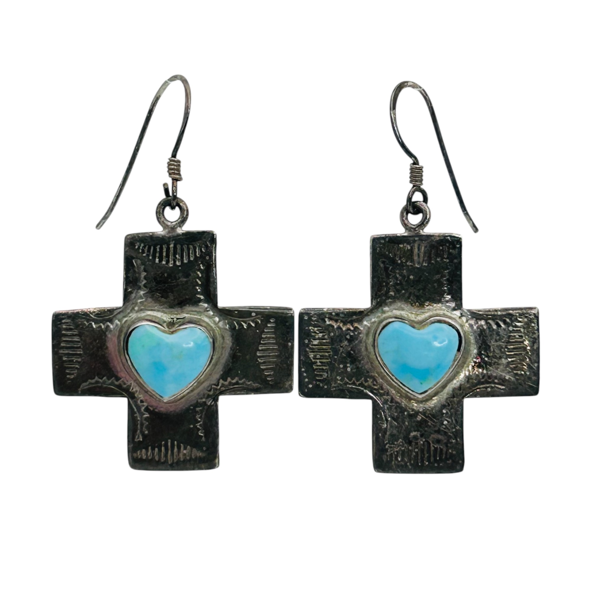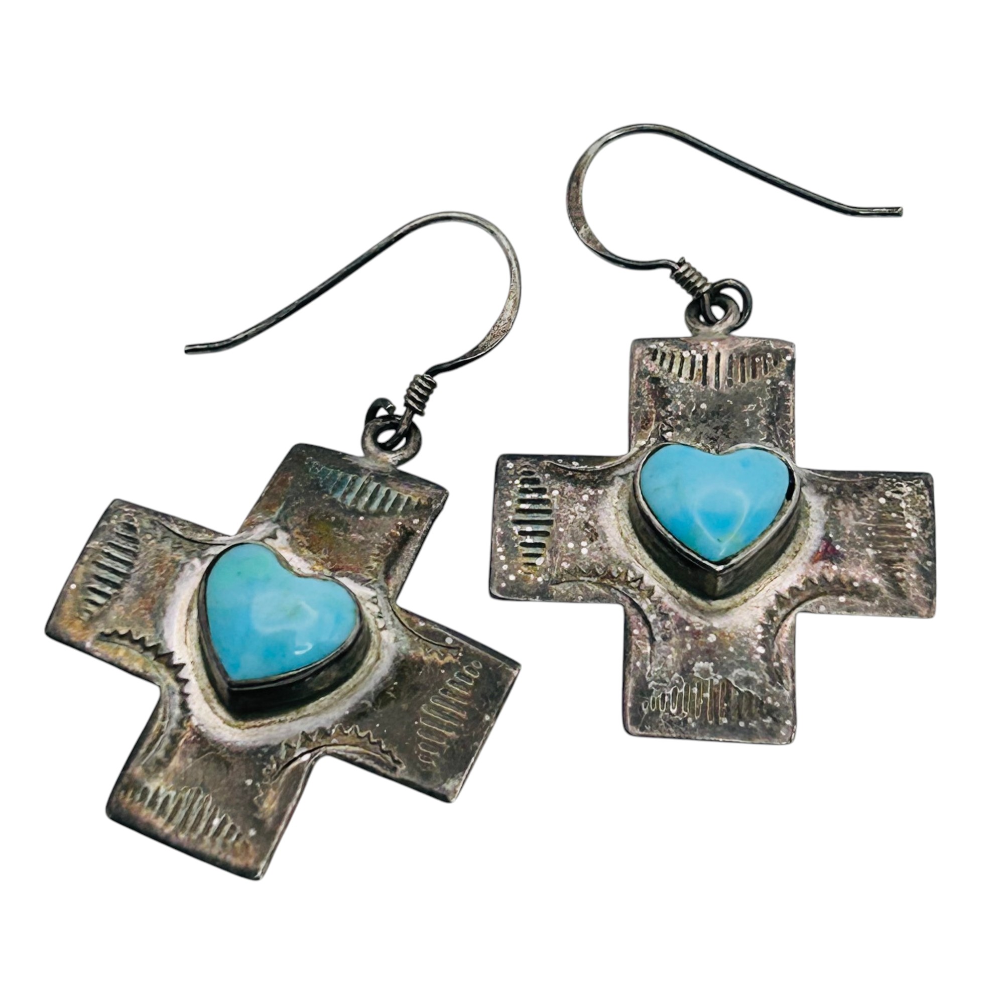 Sterling silver turquoise heart cross dangle earrings 5.4g