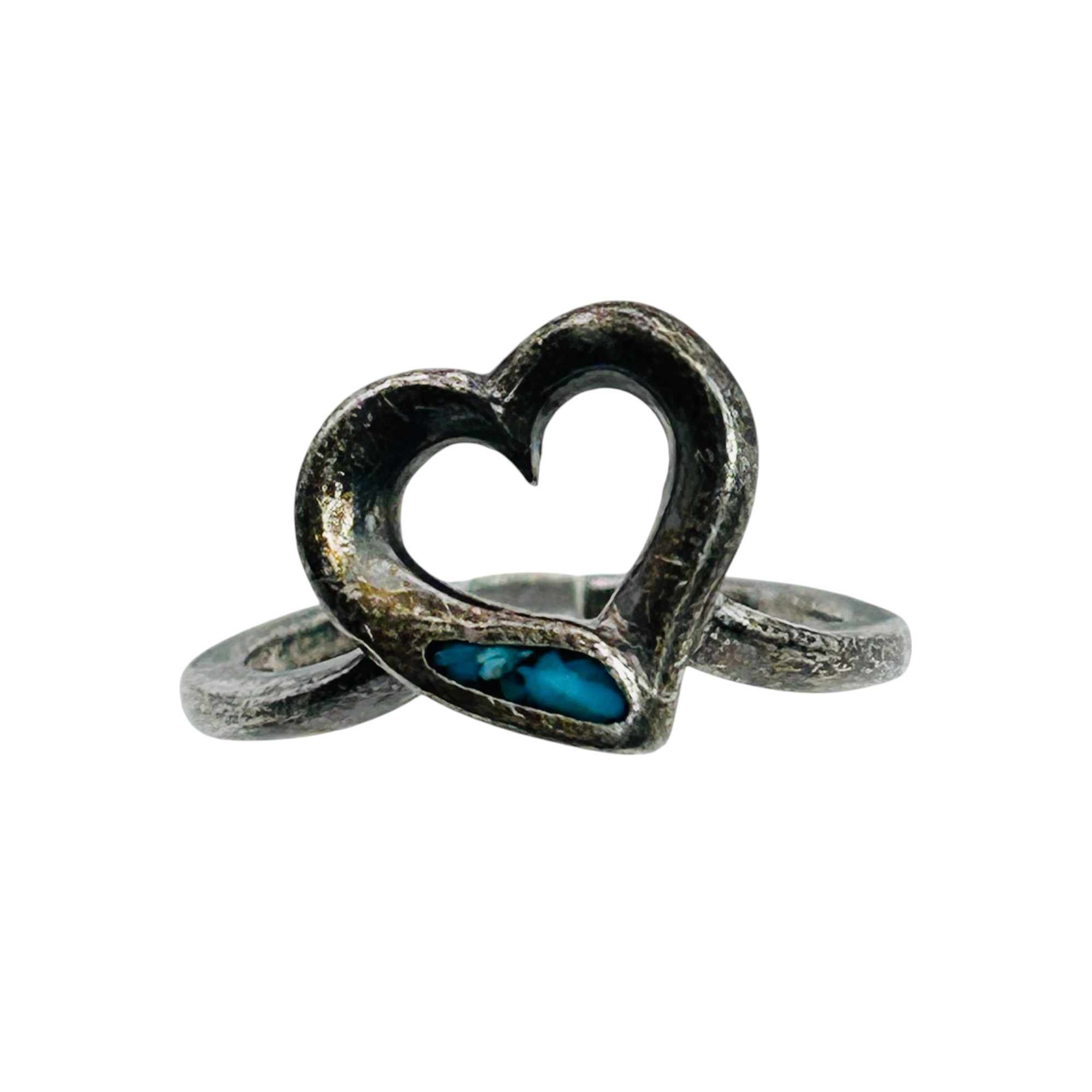 Sterling silver heart ring inlaid turquoise size 5.5 3.25 g