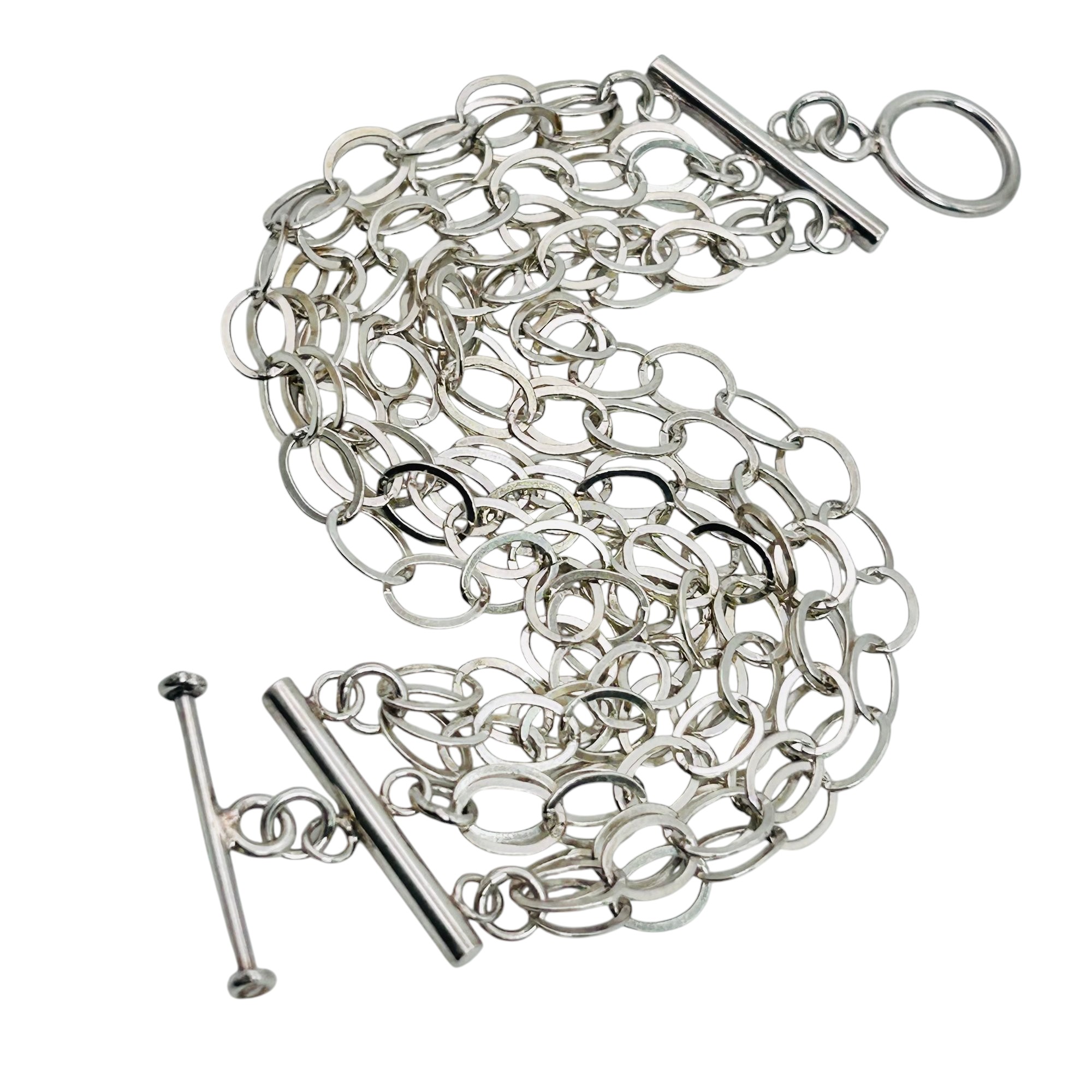 Sterling silver eight strand bracelet chain link toggle clasp 18.75 g