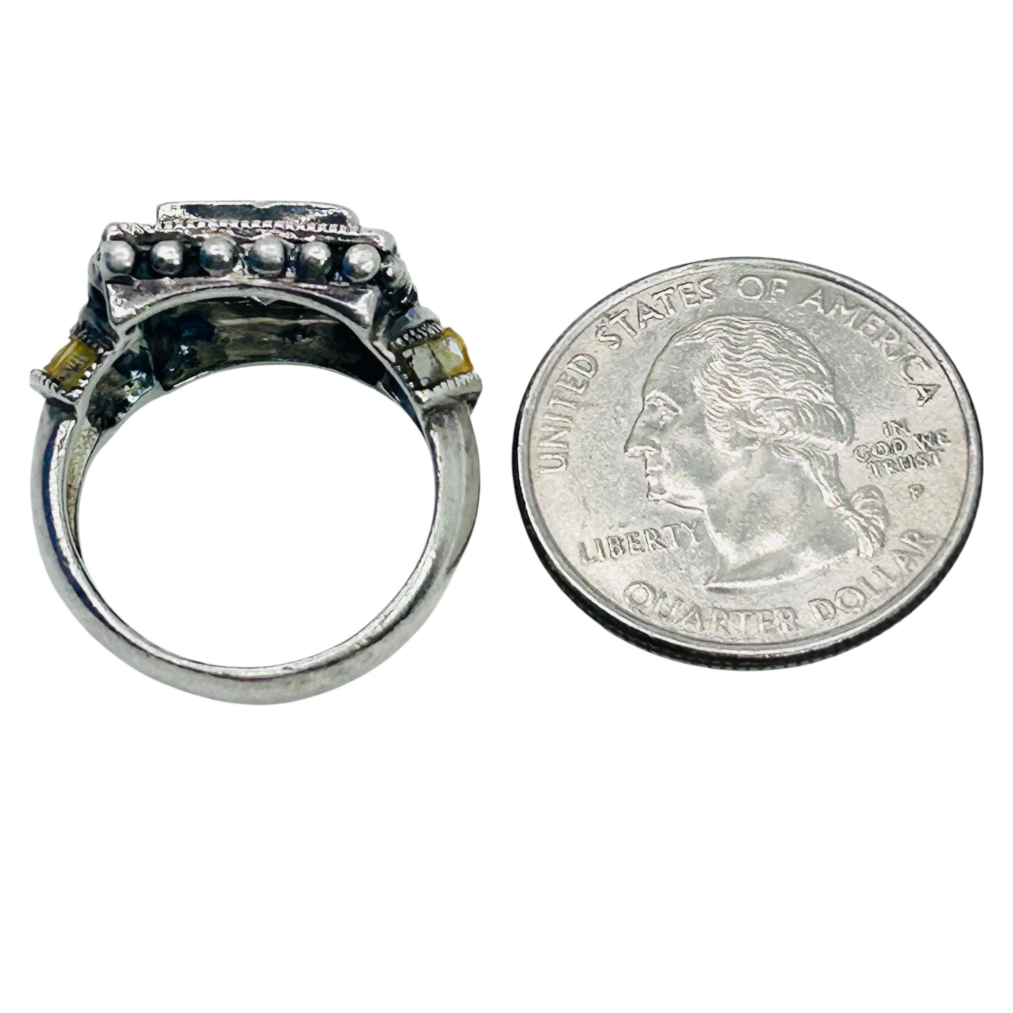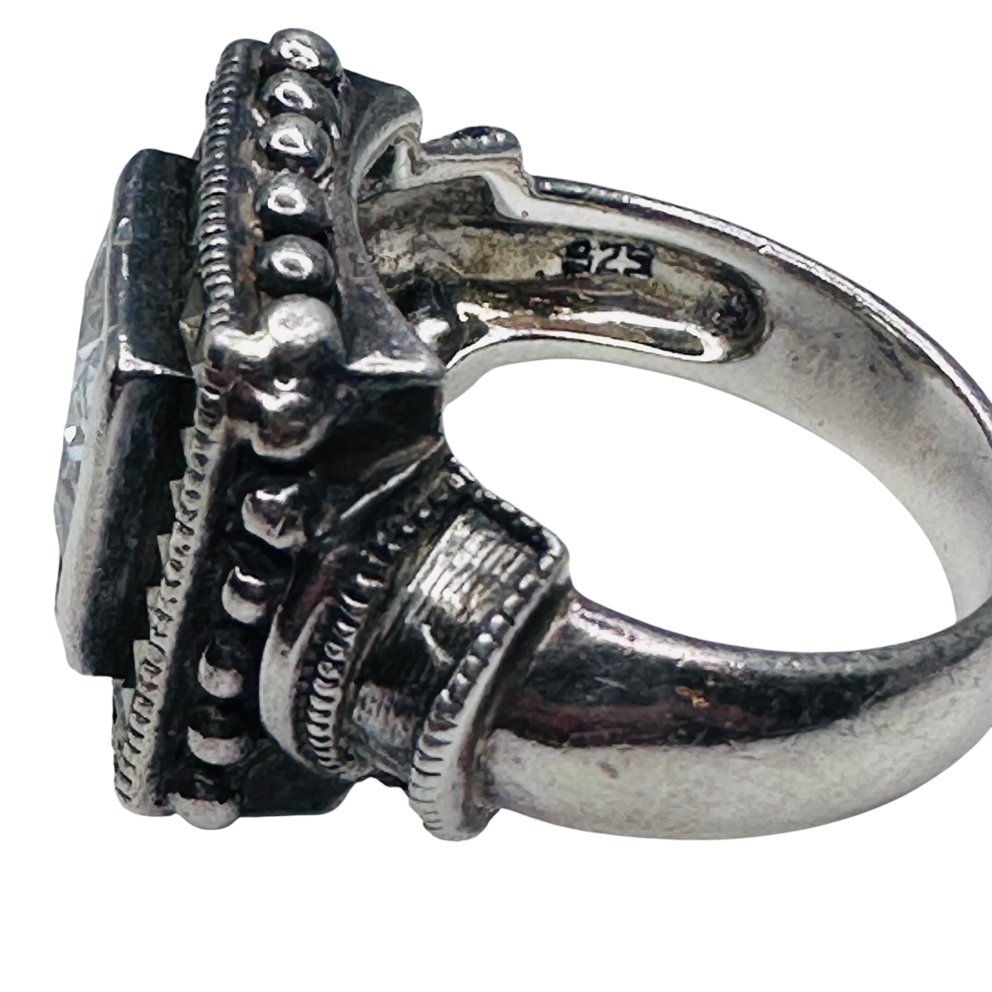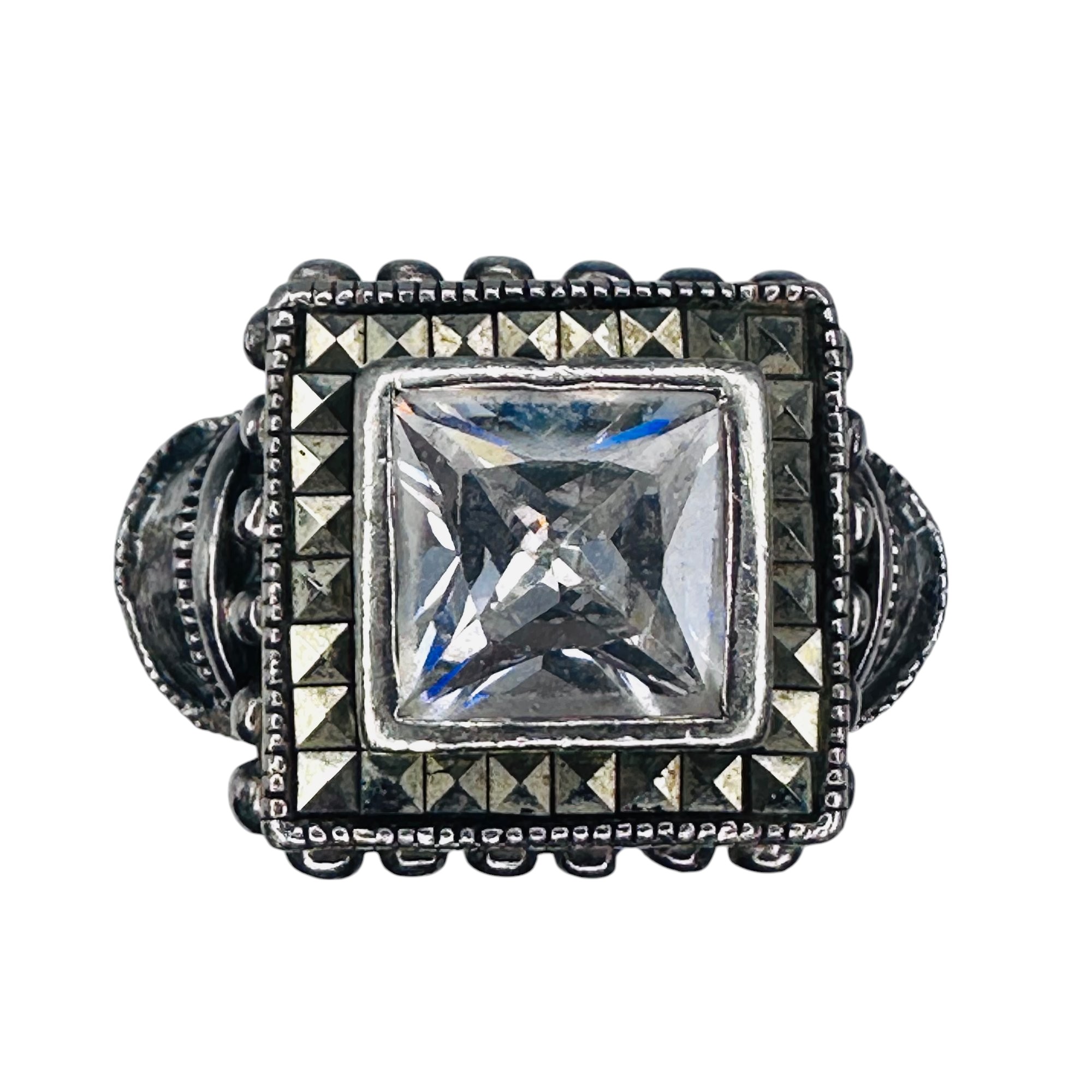 RHINESTONE sterling silver stunning statement ring. Size 7.5. 9.30 g.