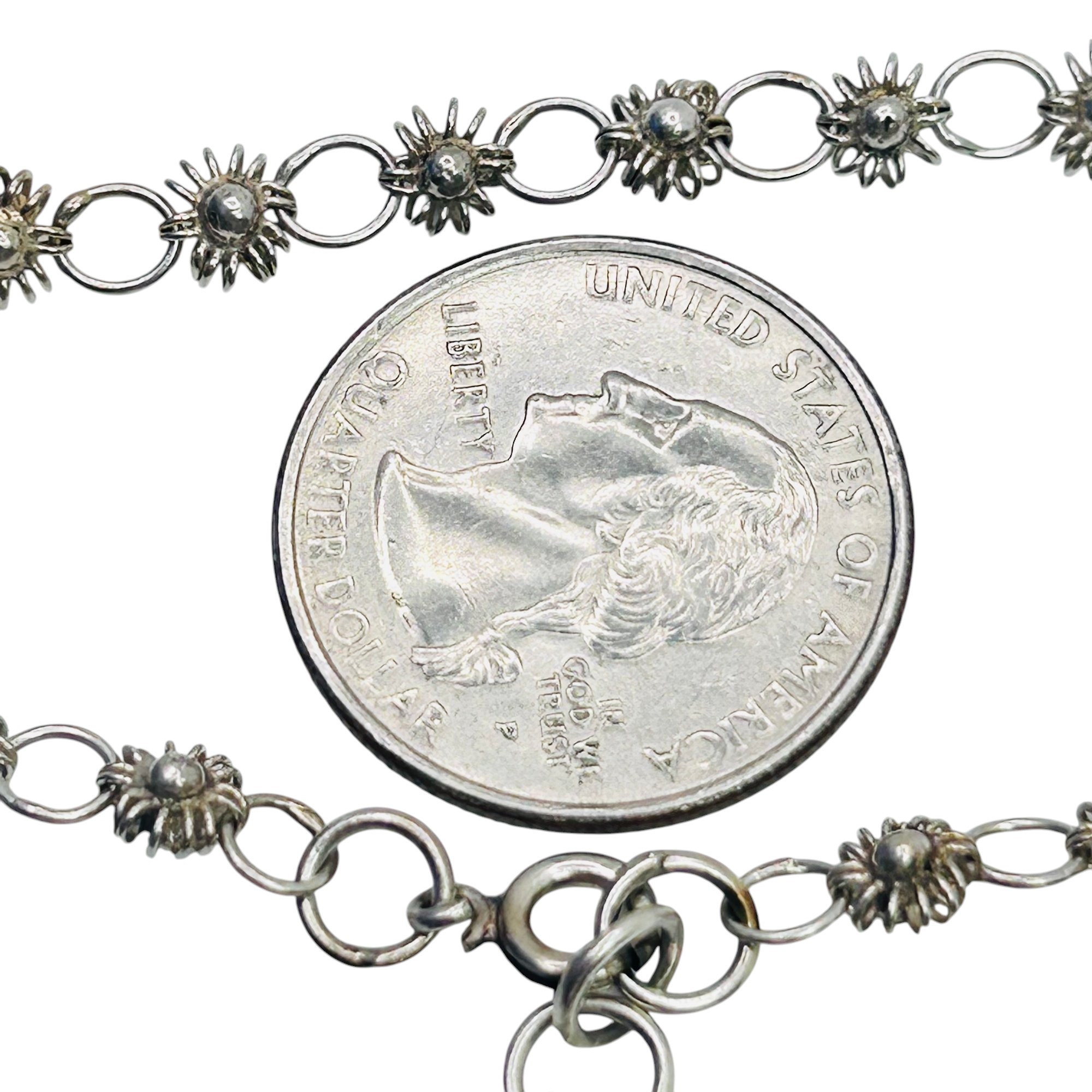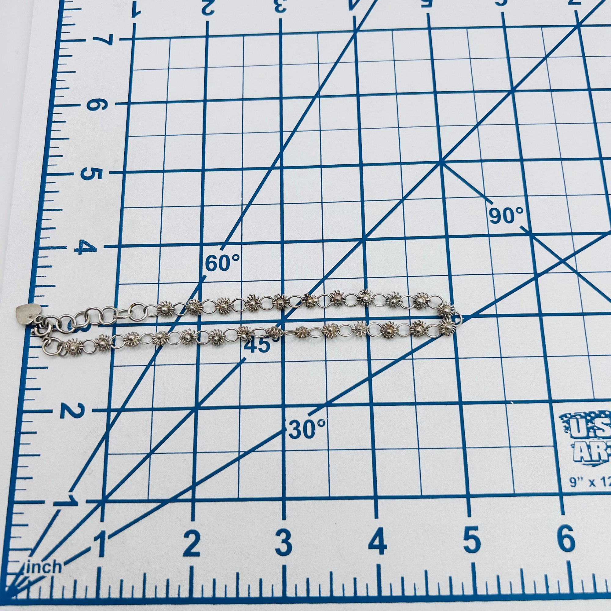 Sterling silver flower link chain adjustable bracelet. 7.96 g.