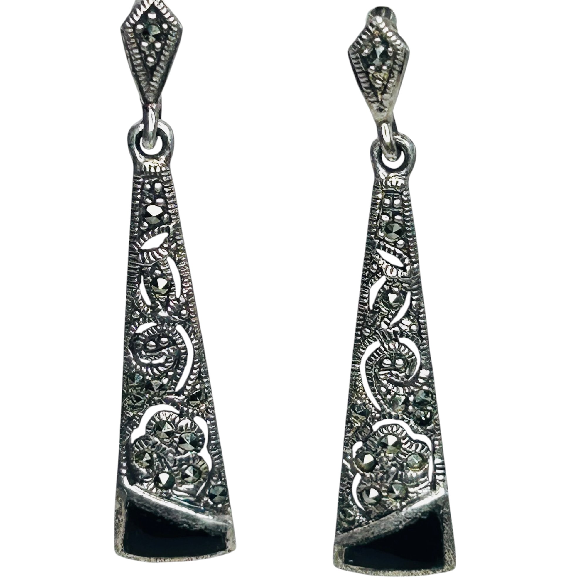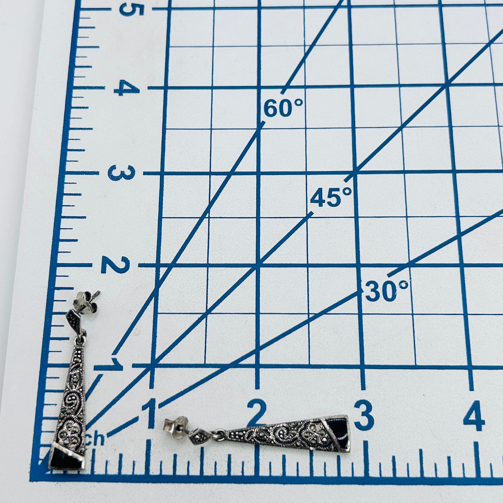 Sterling silver ONYX stone with MARCASITE detail earring. 4.82 g.