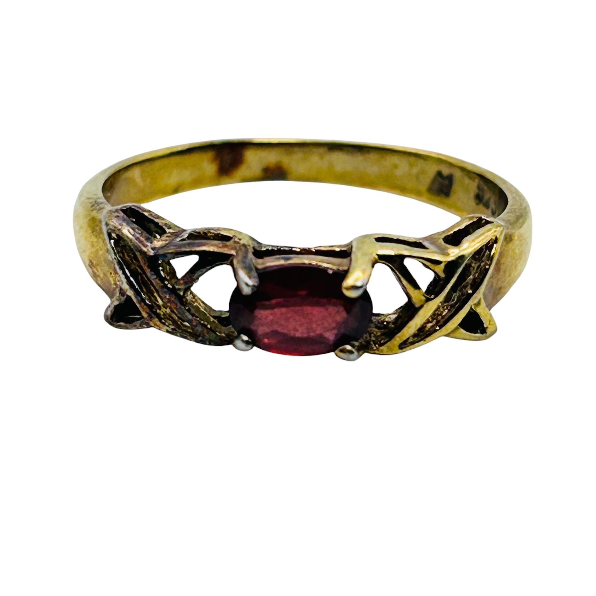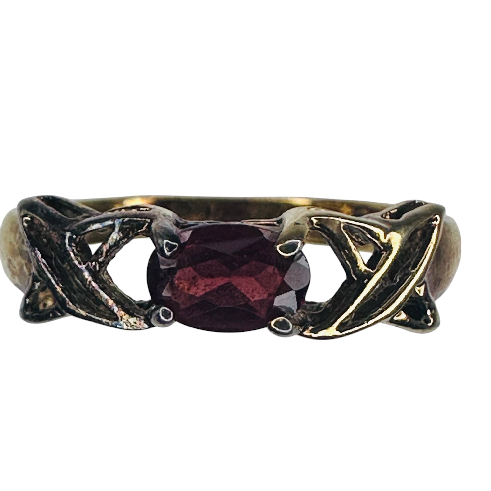 Garnet Sterling silver gold toned ring size 8 2.42 g