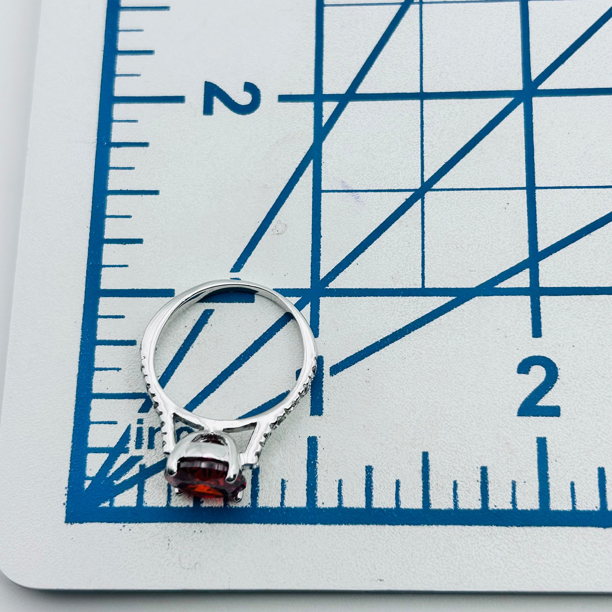 Red rhinestone Sterling silver ring clear stone set band size 7 3.17 g