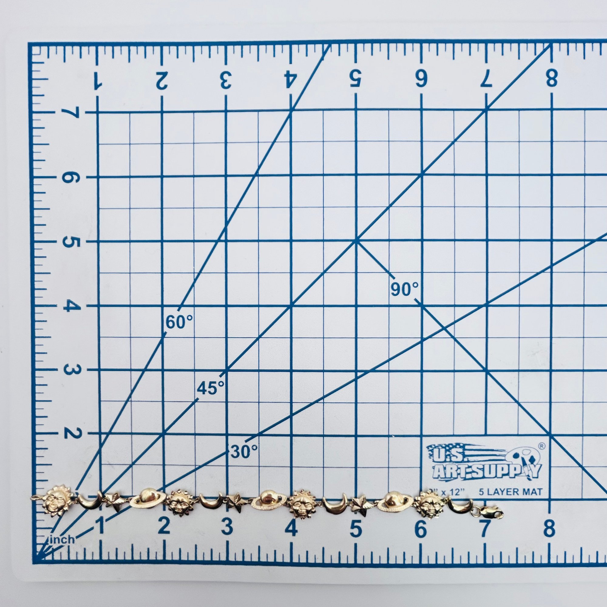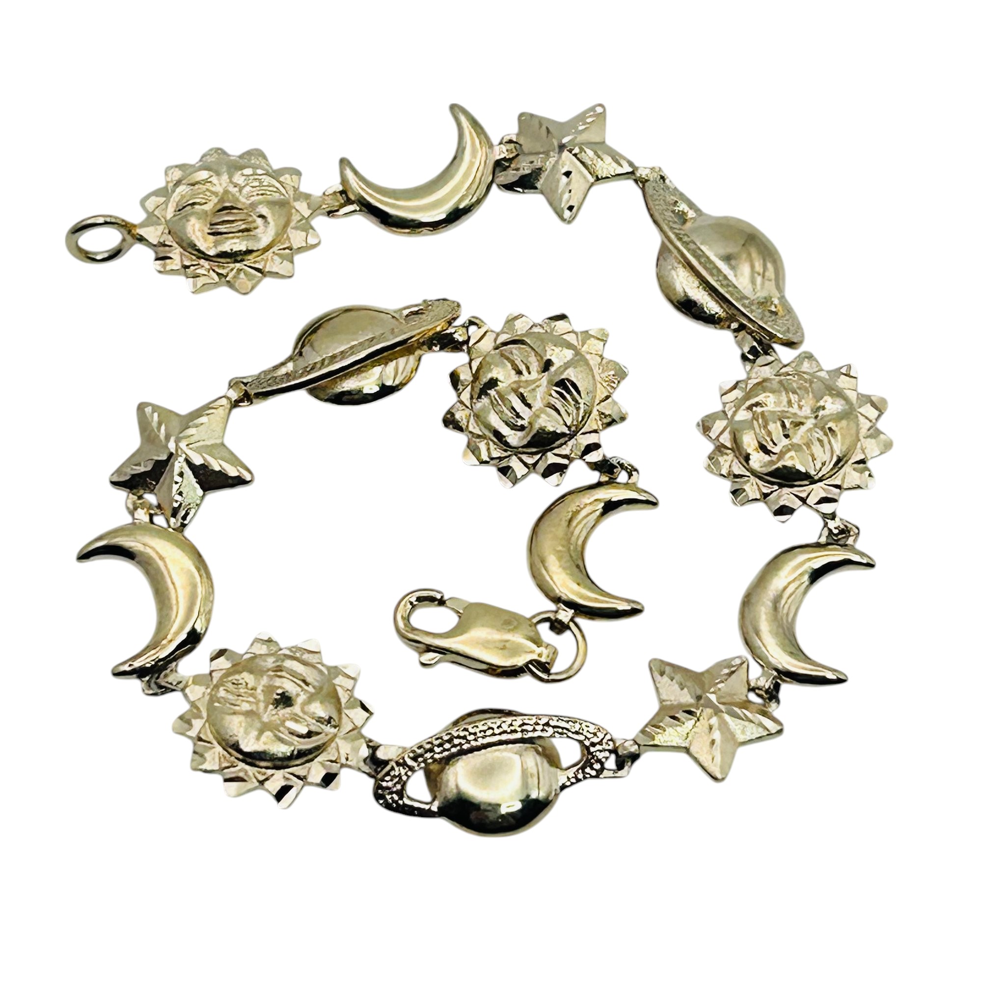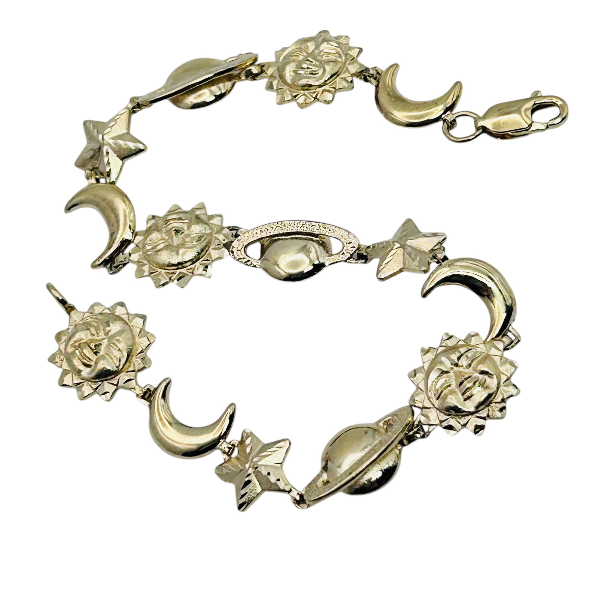 Sterling silver Sun planet star linked bracelet 8.2 g