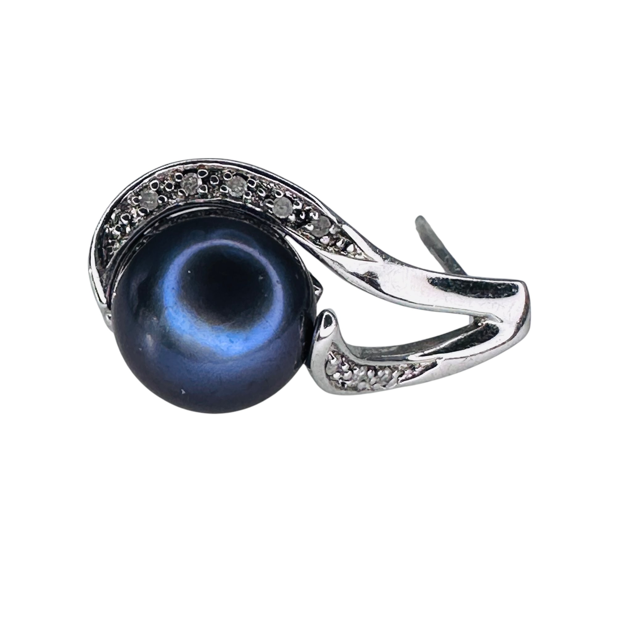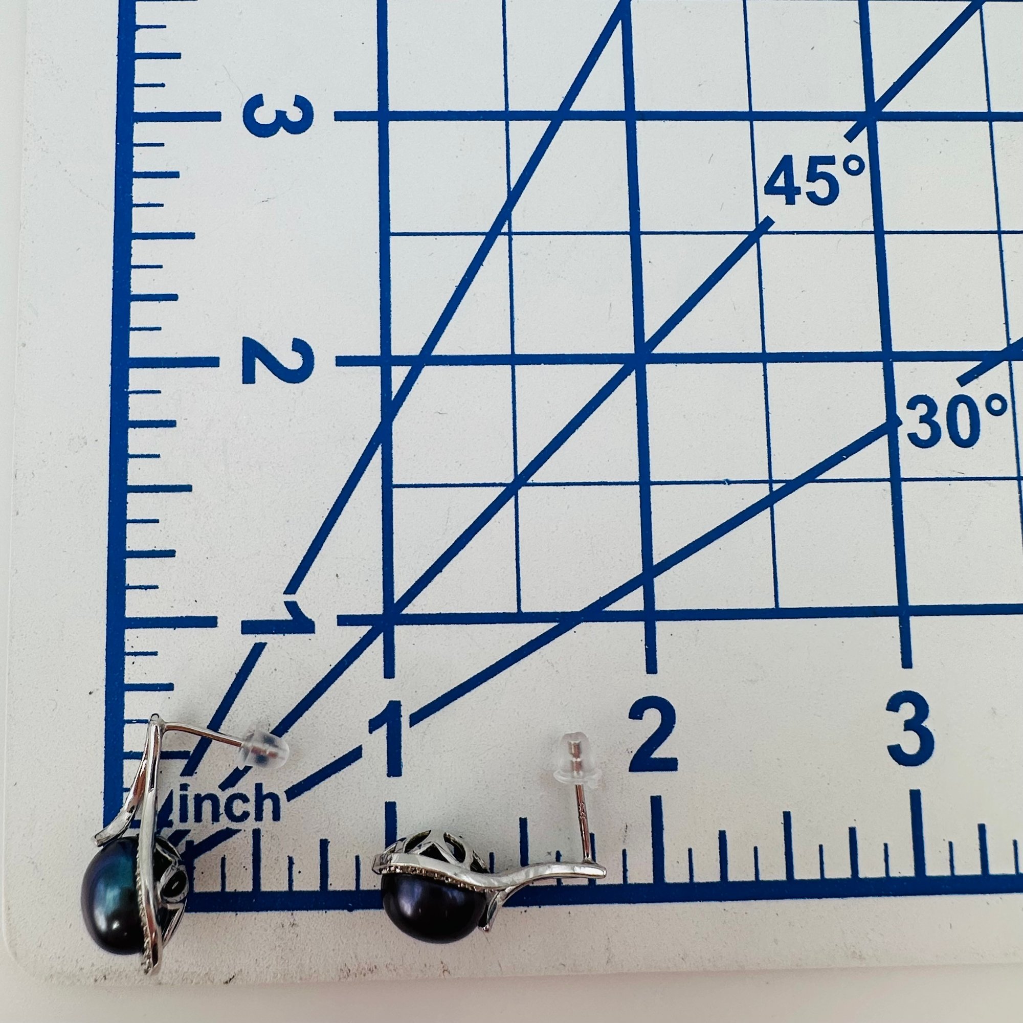 D DIAMOND TAHITIAN PEARL sterling silver teardrop earrings 4.48 g