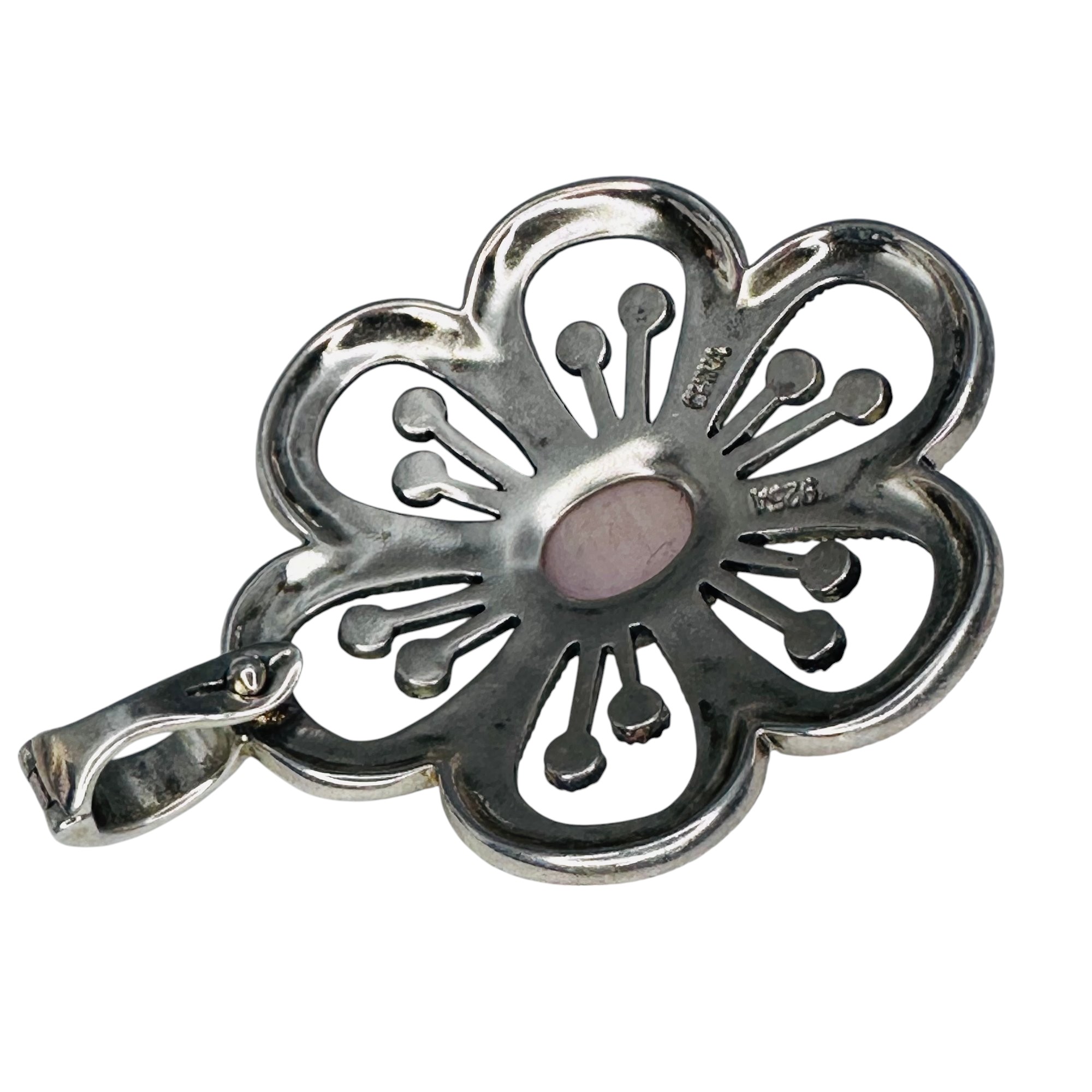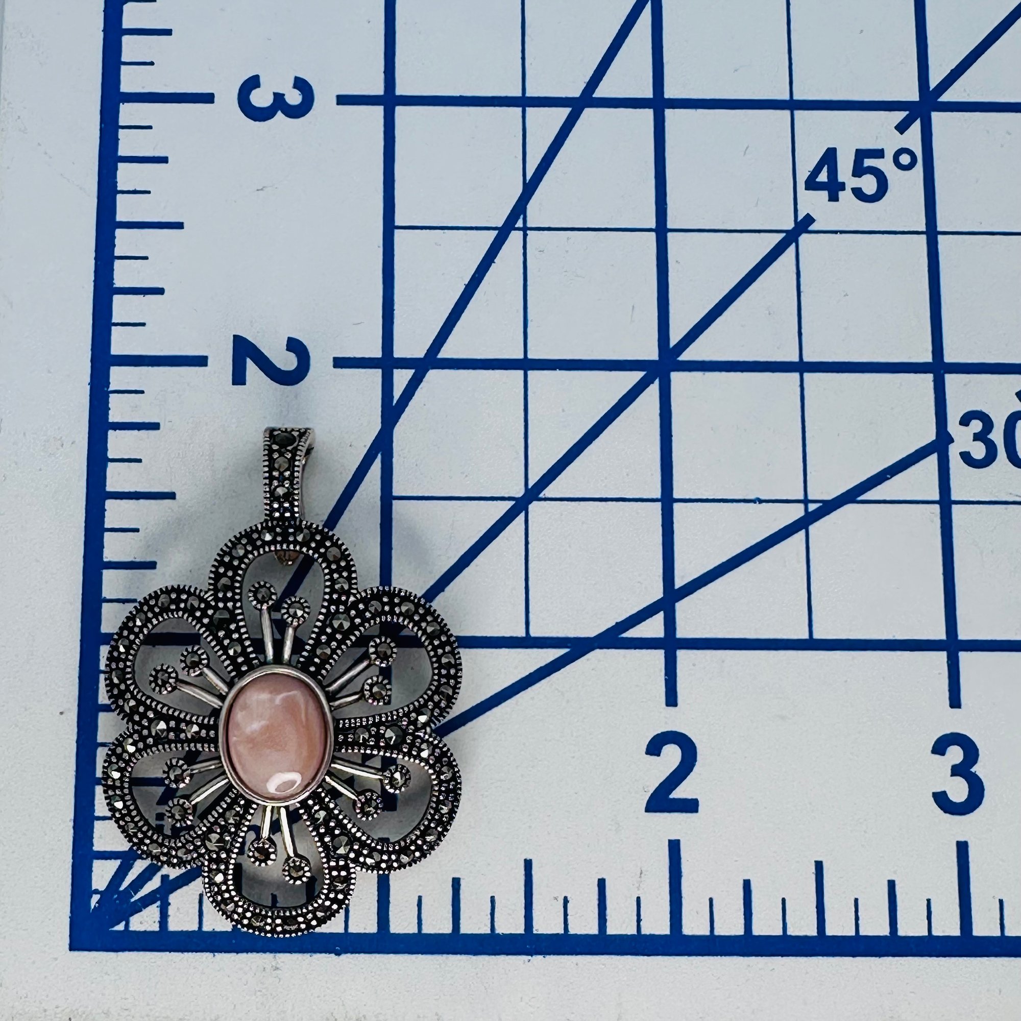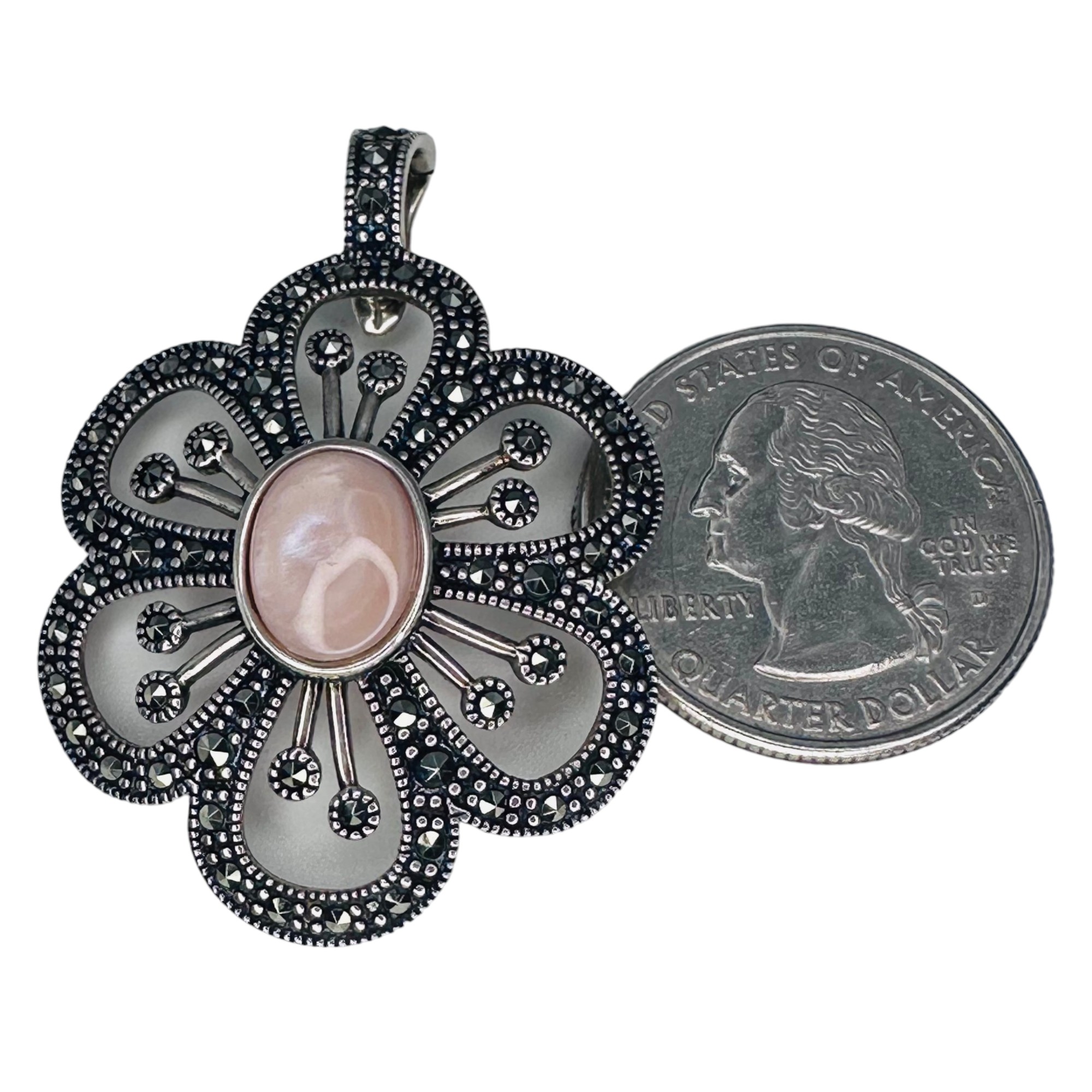 A MOTHER OF PEARL MARCASITE sterling silver flower pendant 7.63g