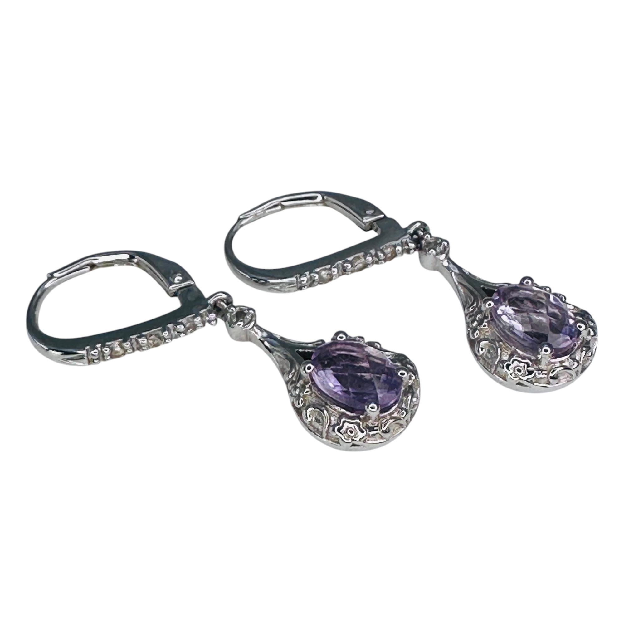 AMETHYST Sterling silver teardrop jacket earrings unknown symbol 4.14 g
