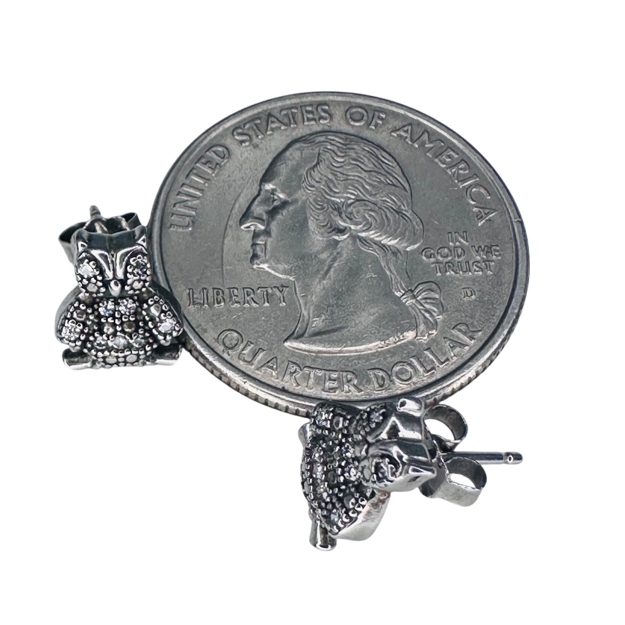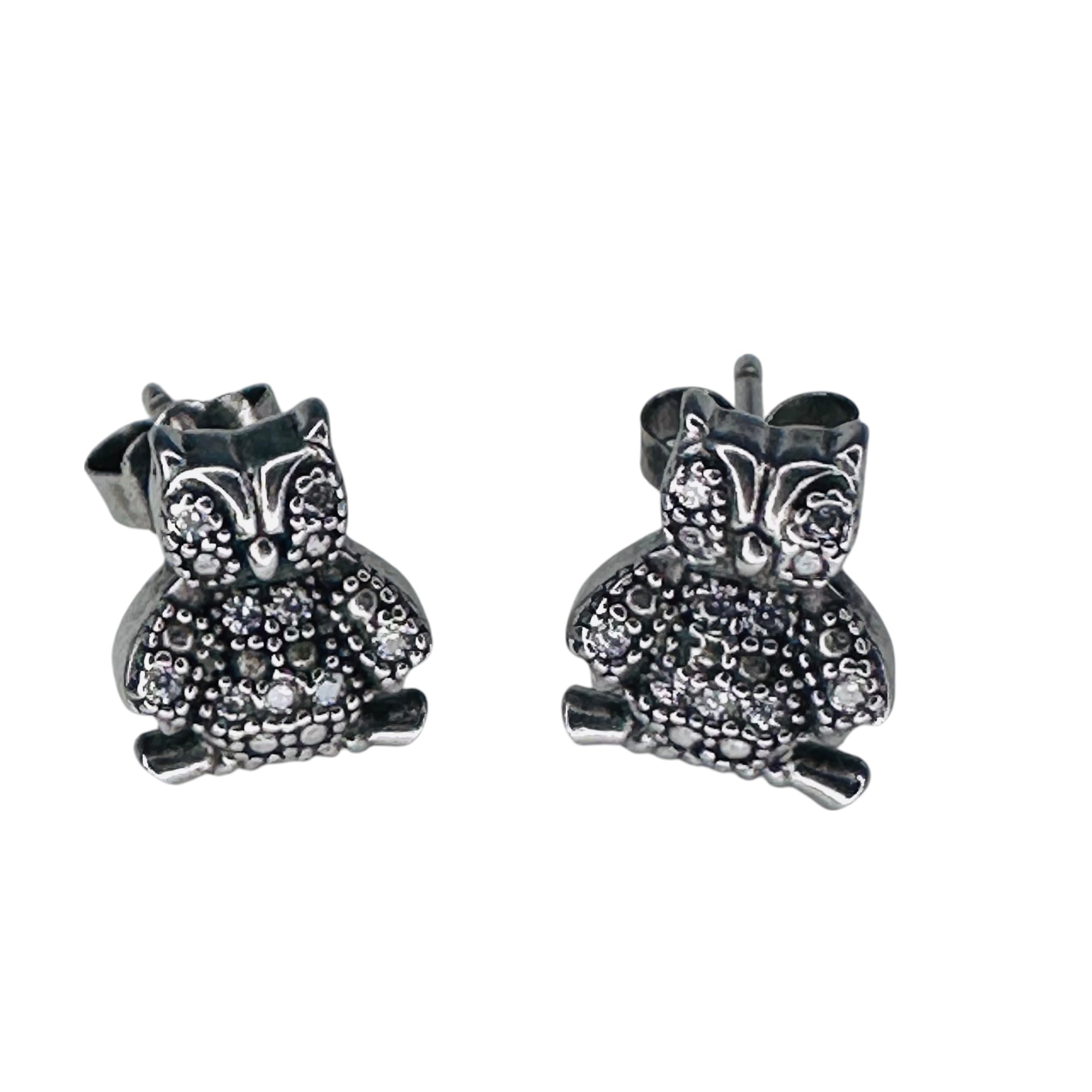 SS MARCASITE Sterling silver owl stud earrings 1.56 g