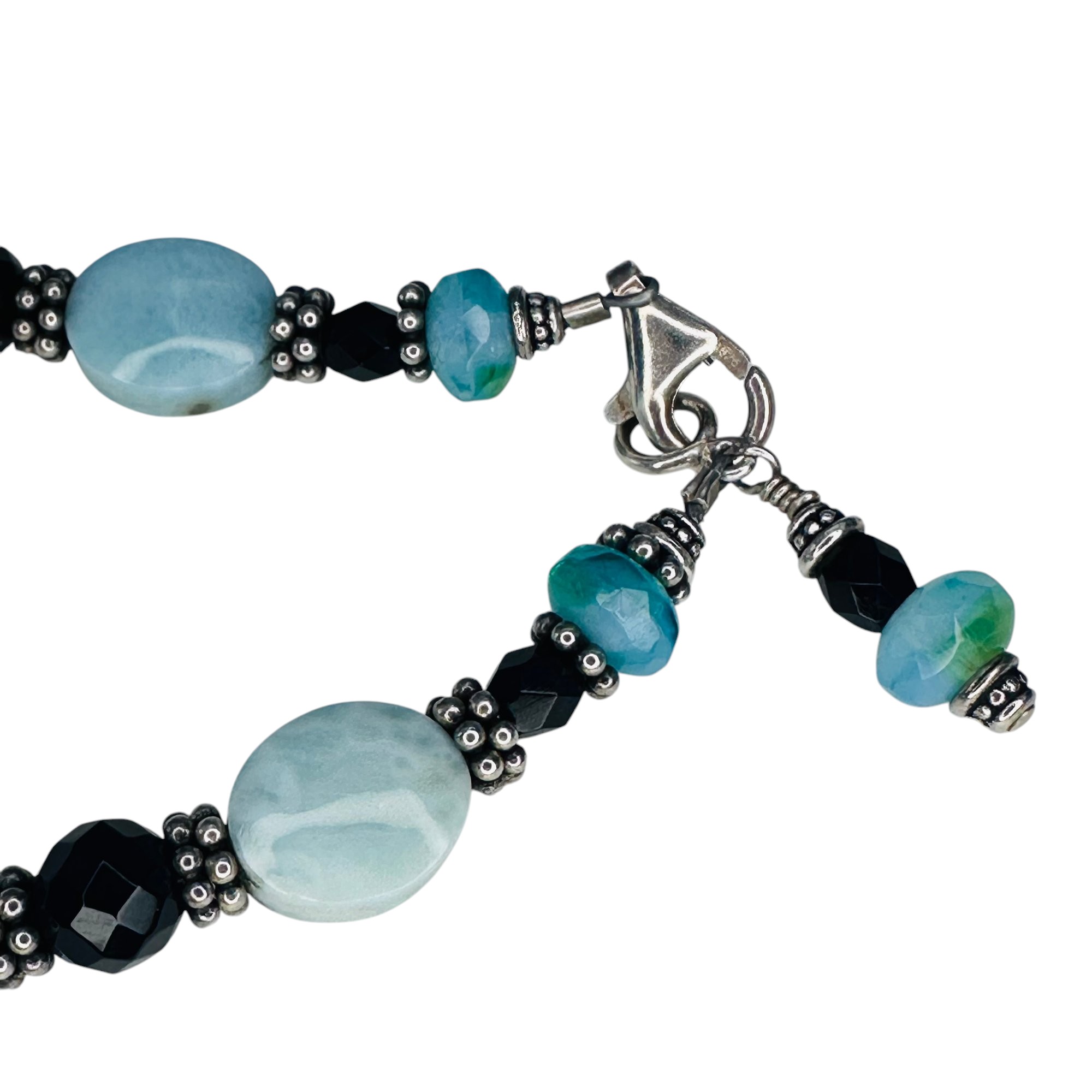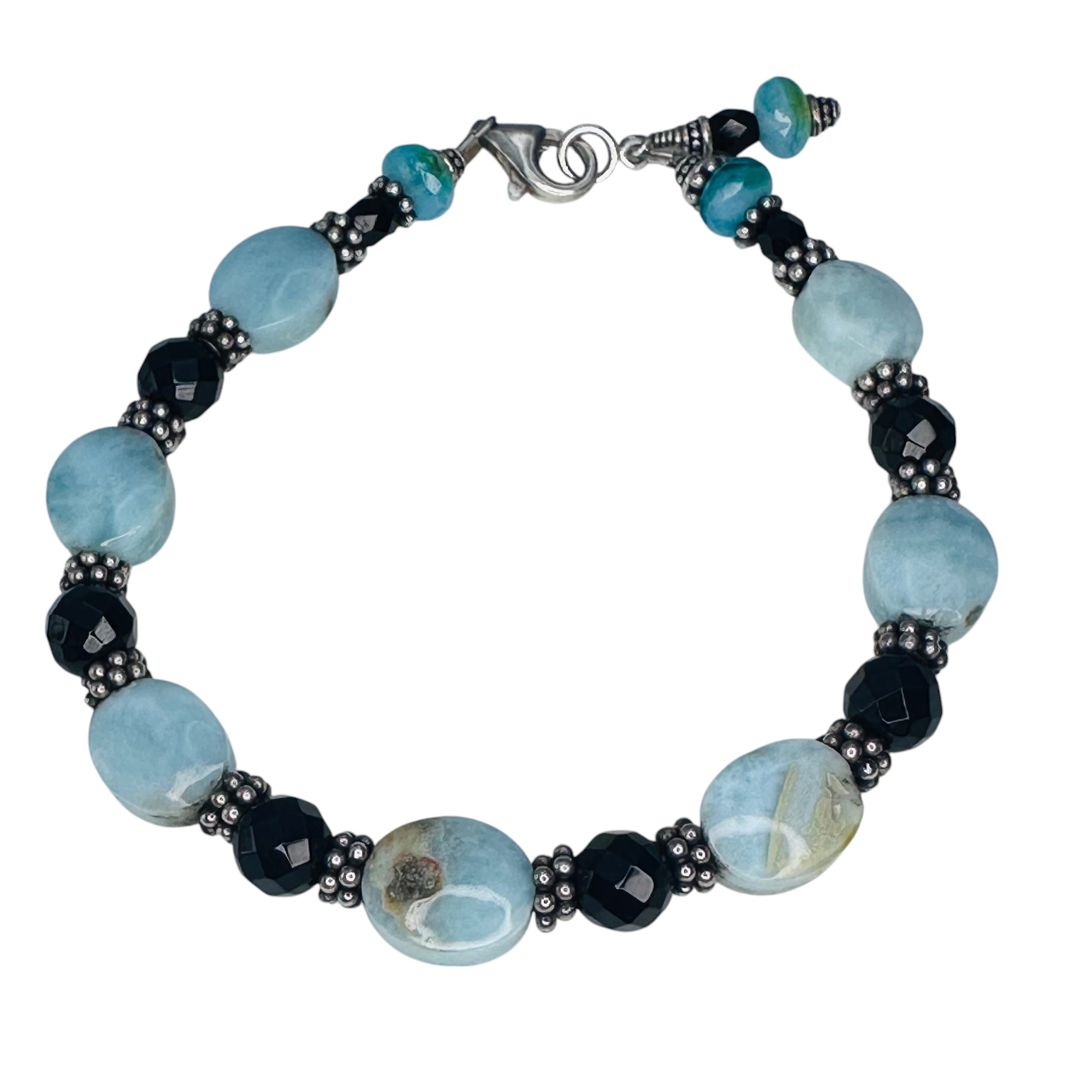 LARIMAR black bead Sterling silver bracelet 13.99 g