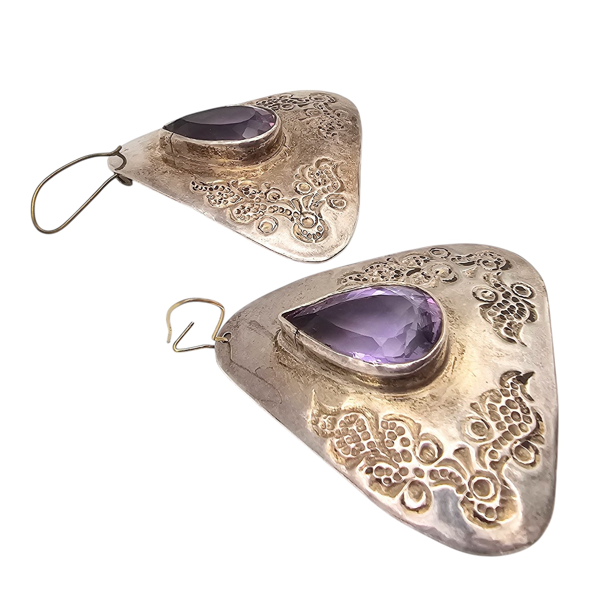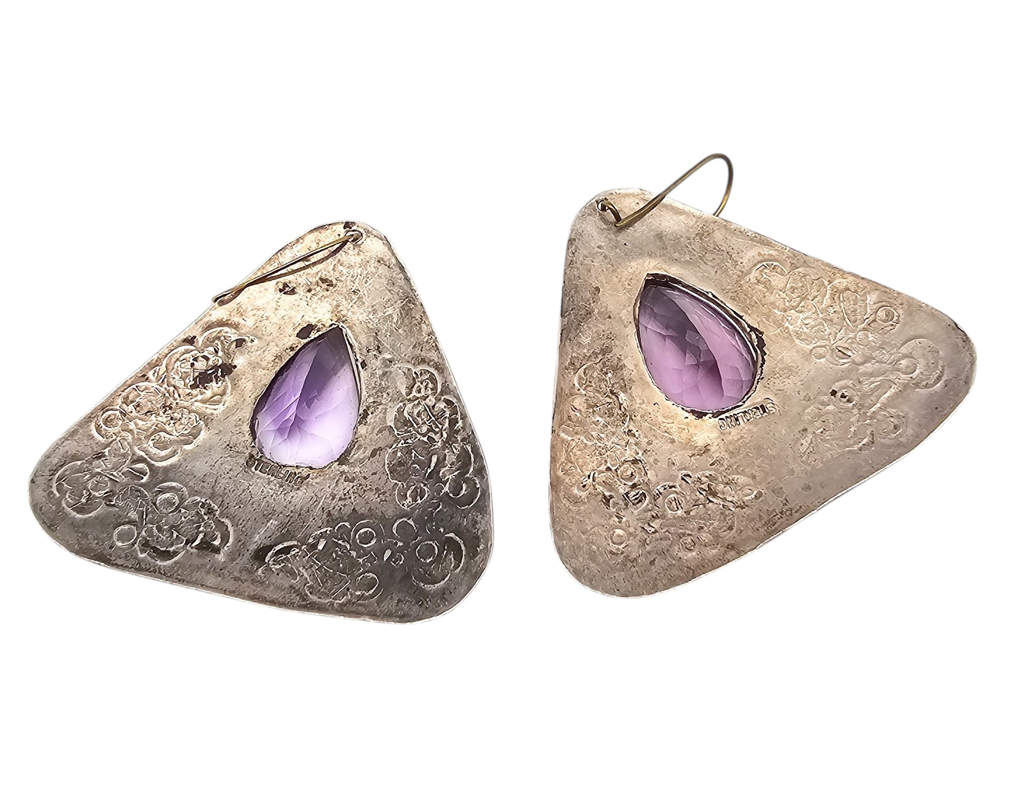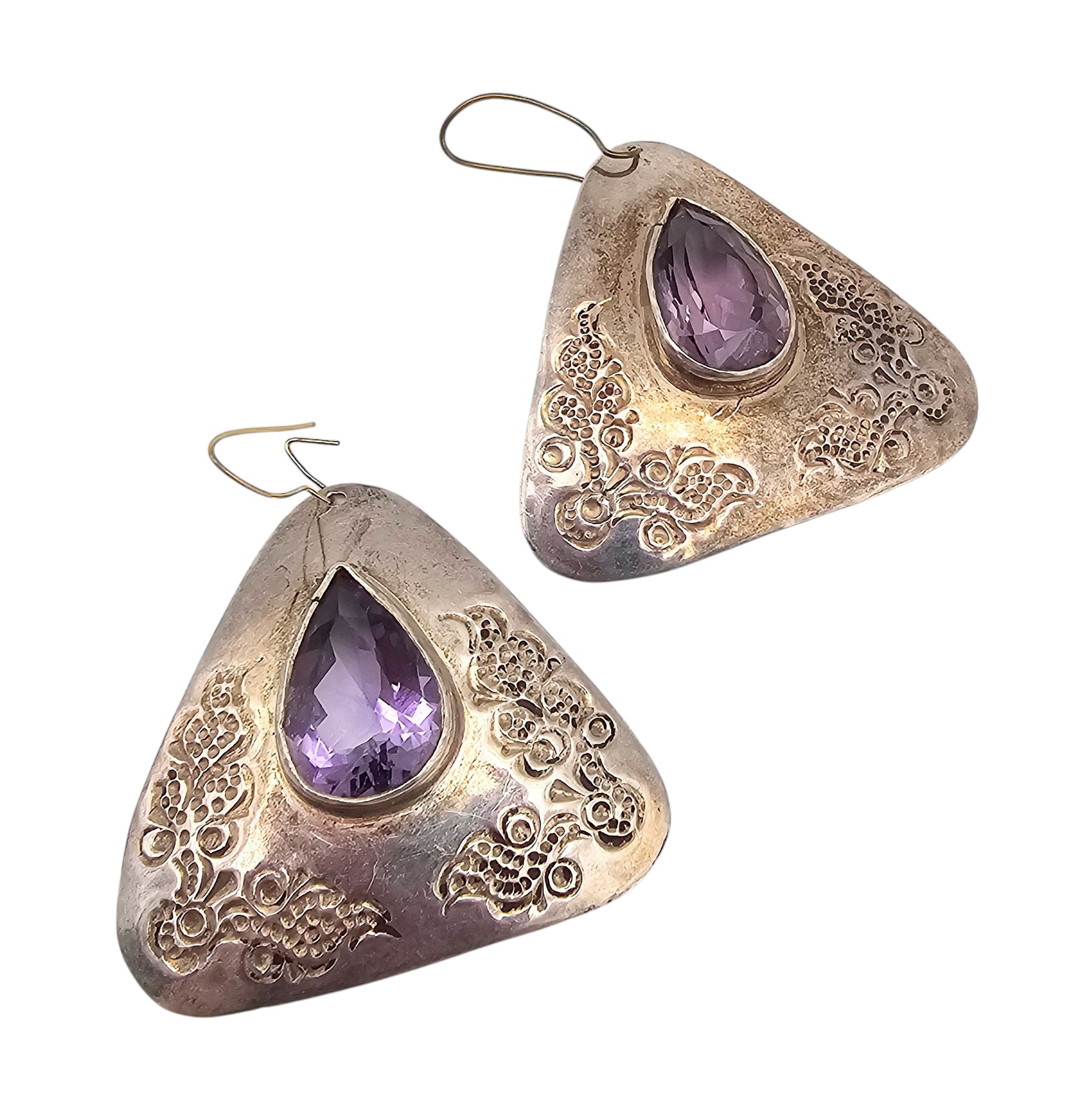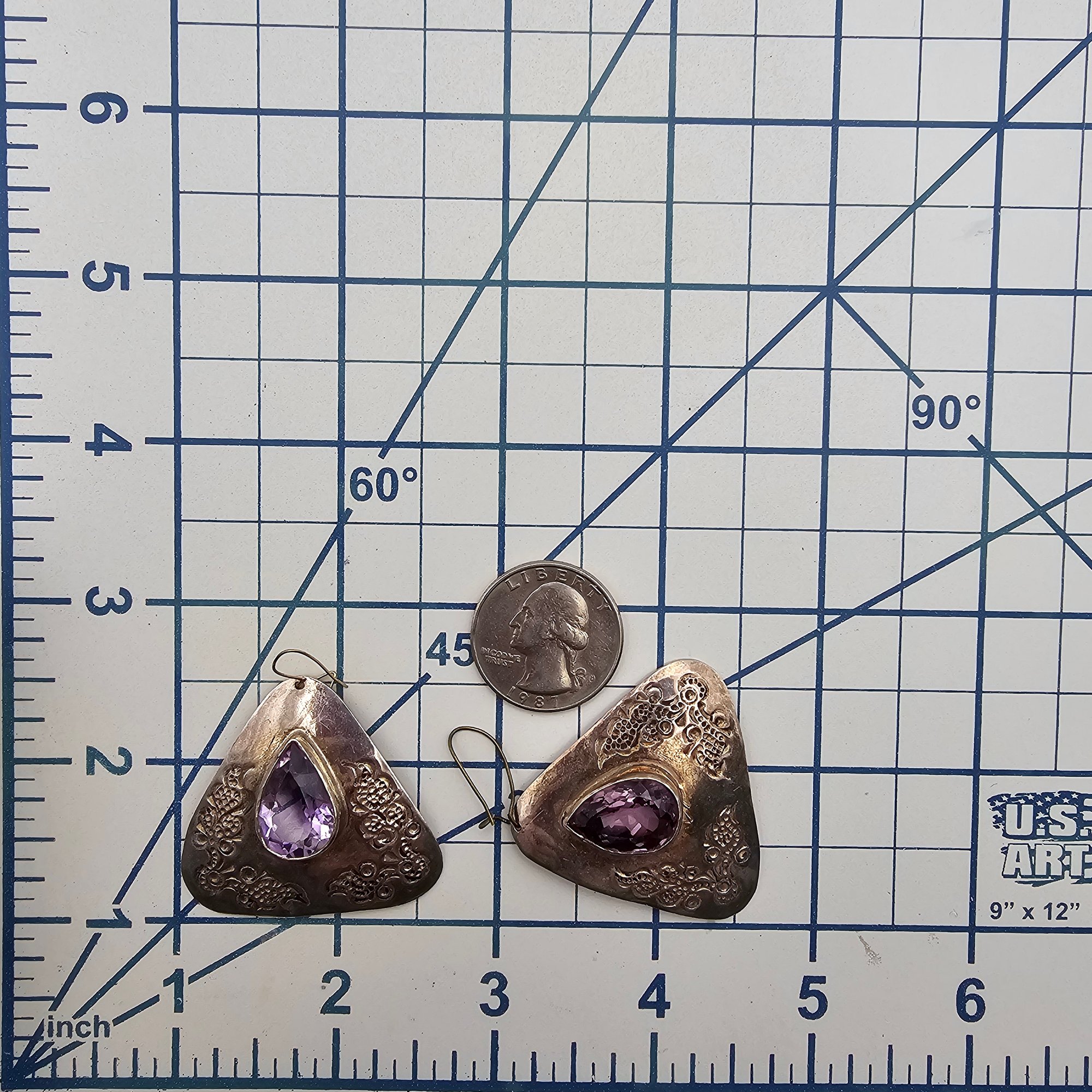 Amethyst Sterling Silver Triangle Drop Dangle Earrings 13.2 G