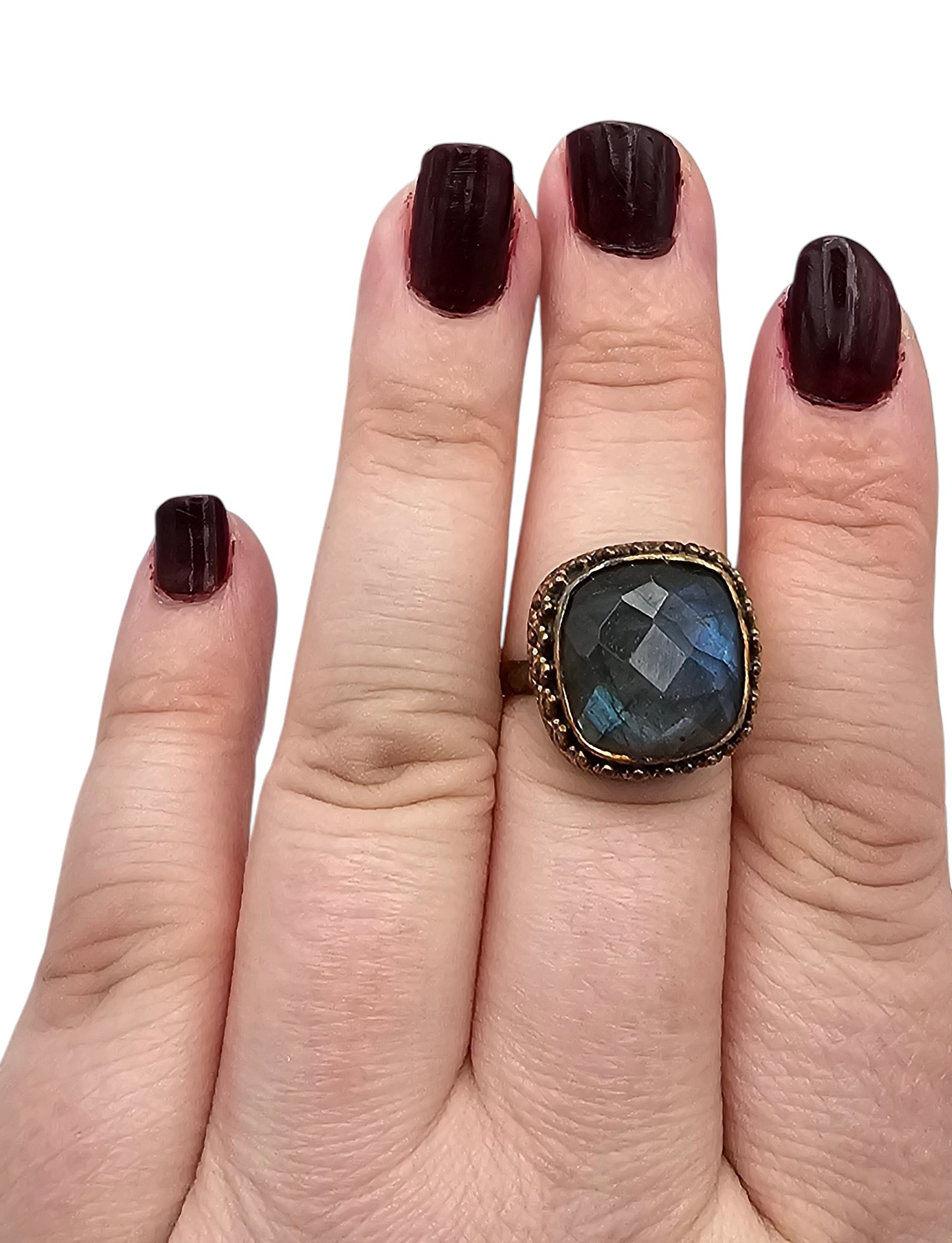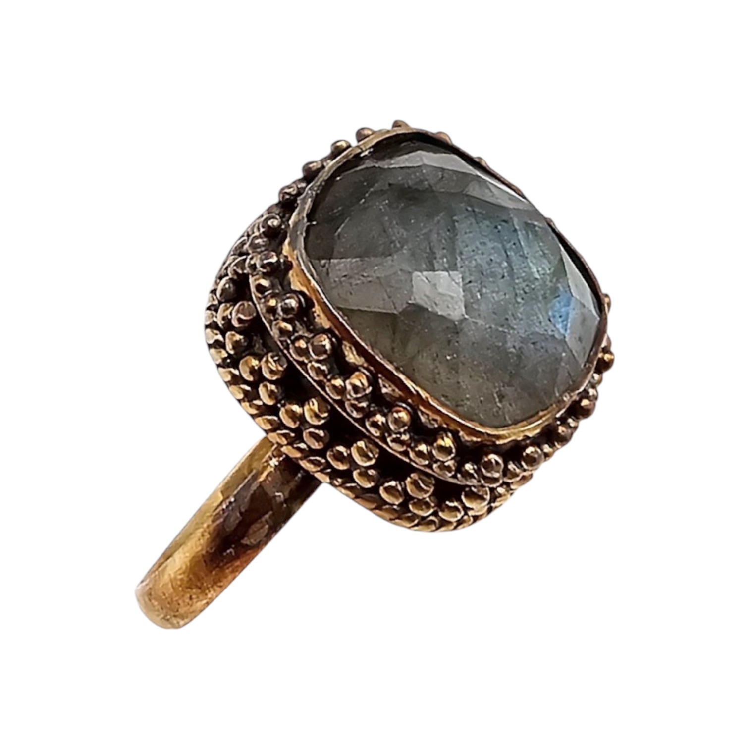YS India Labradorite Gold Over Sterling Silver Ring Size 9.25 8.1 G