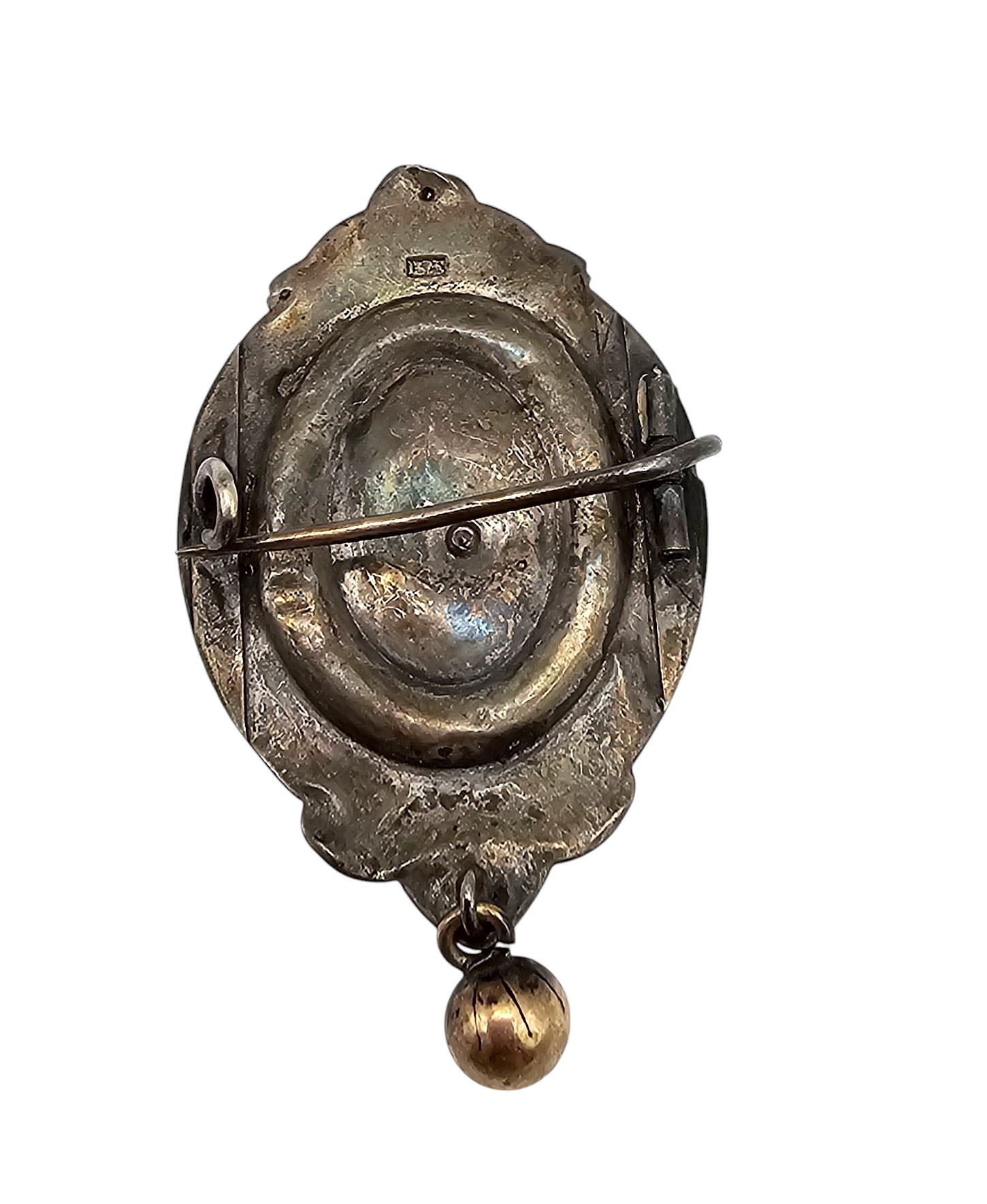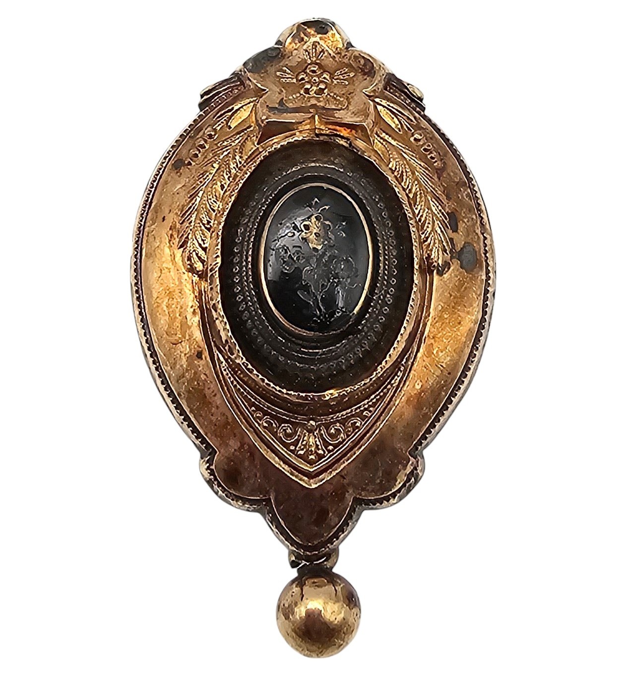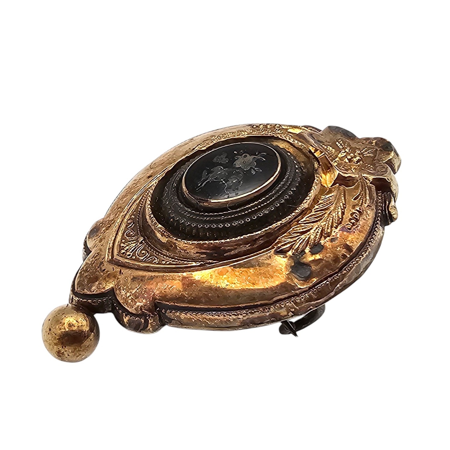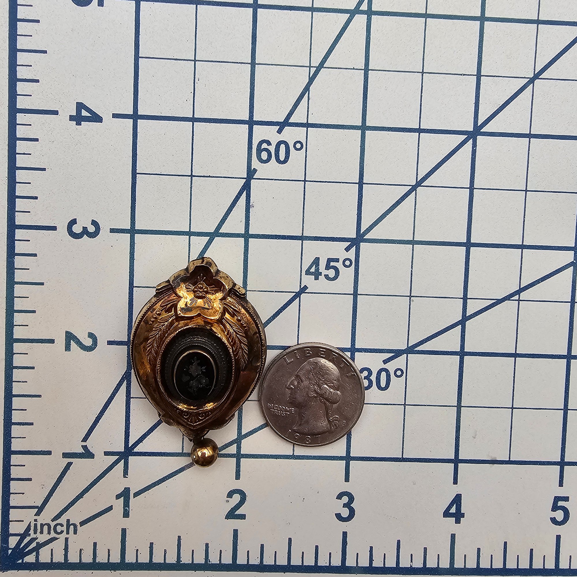 Gold Over Sterling Silver Enamel Etched Hollow Form Mourning Brooch 10 G