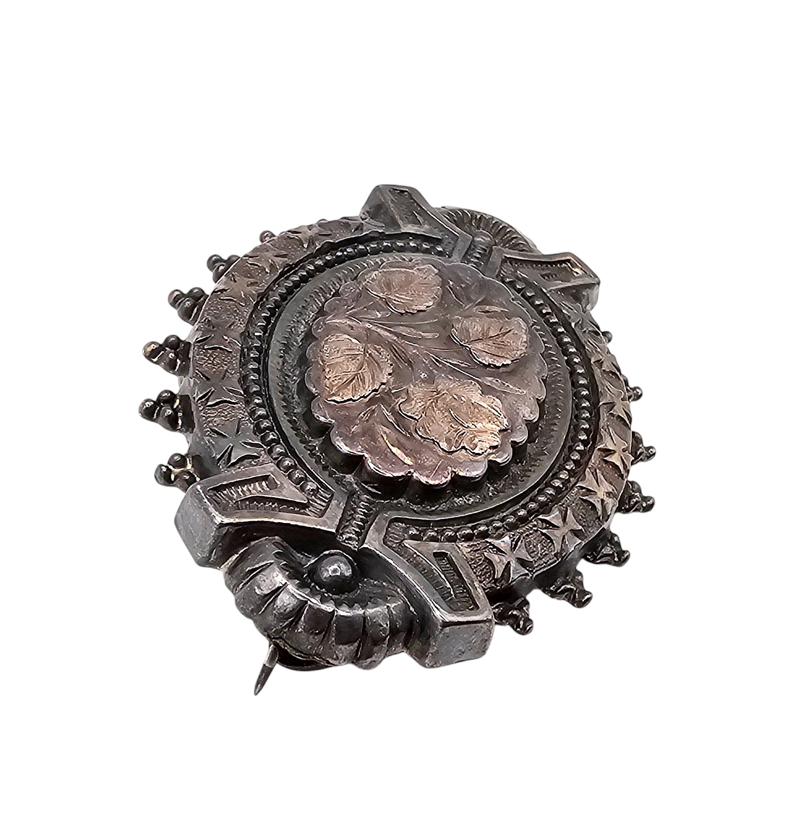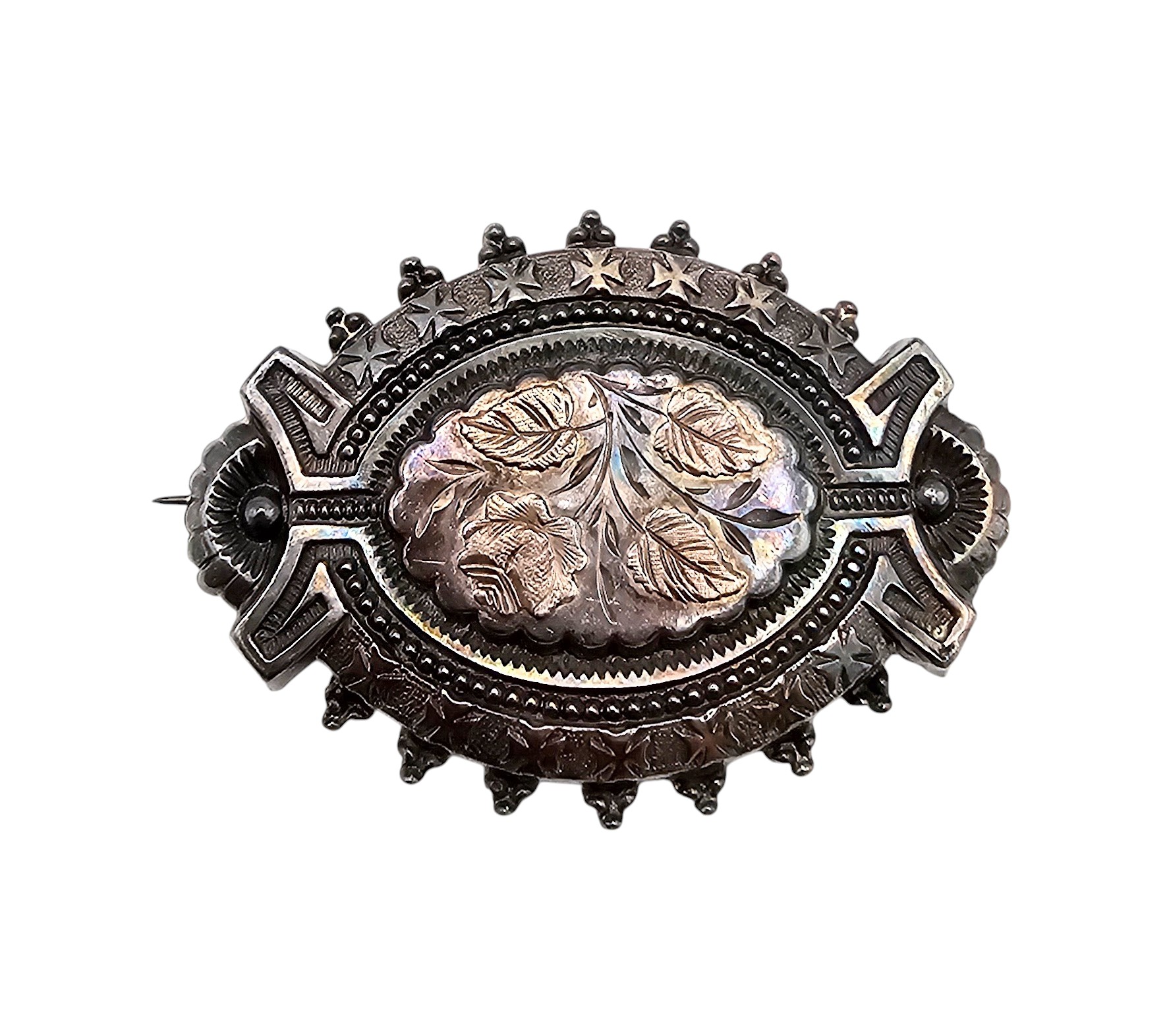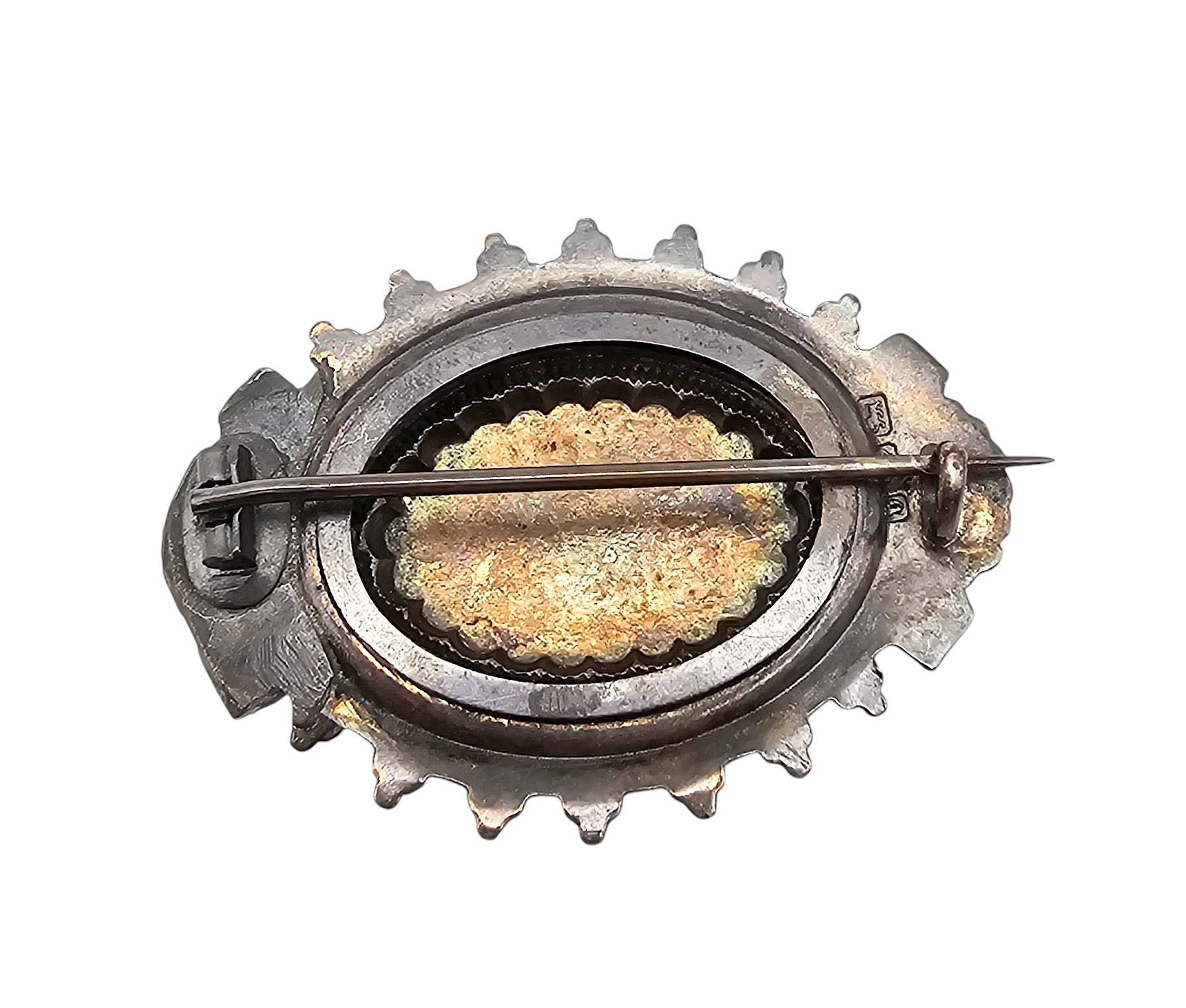 European Sterling Silver Hollow Form Floral Mourning Brooch 6.5 G