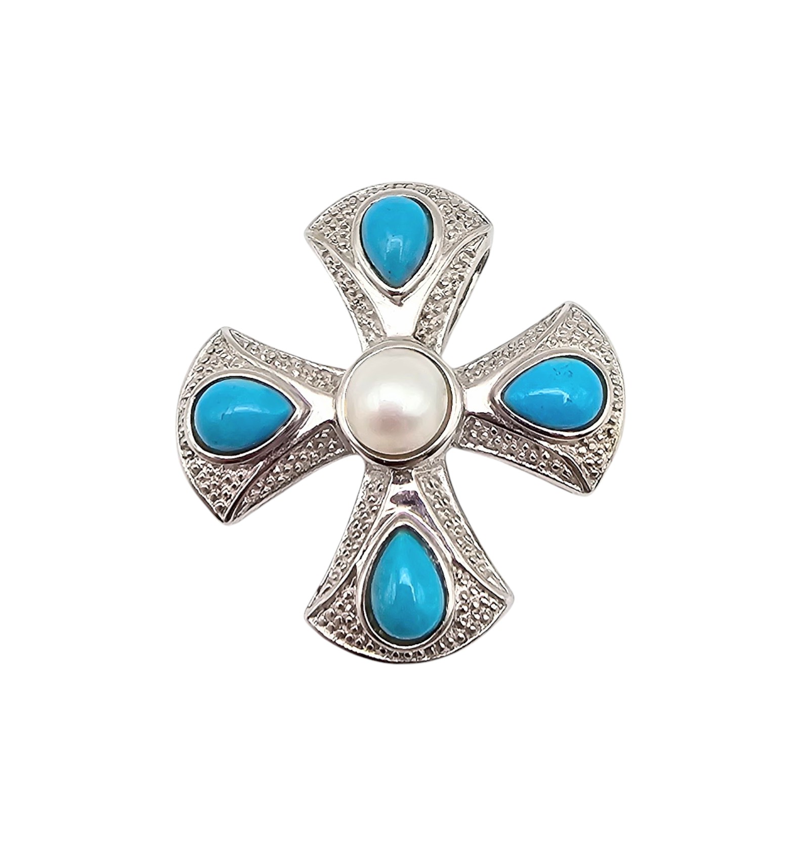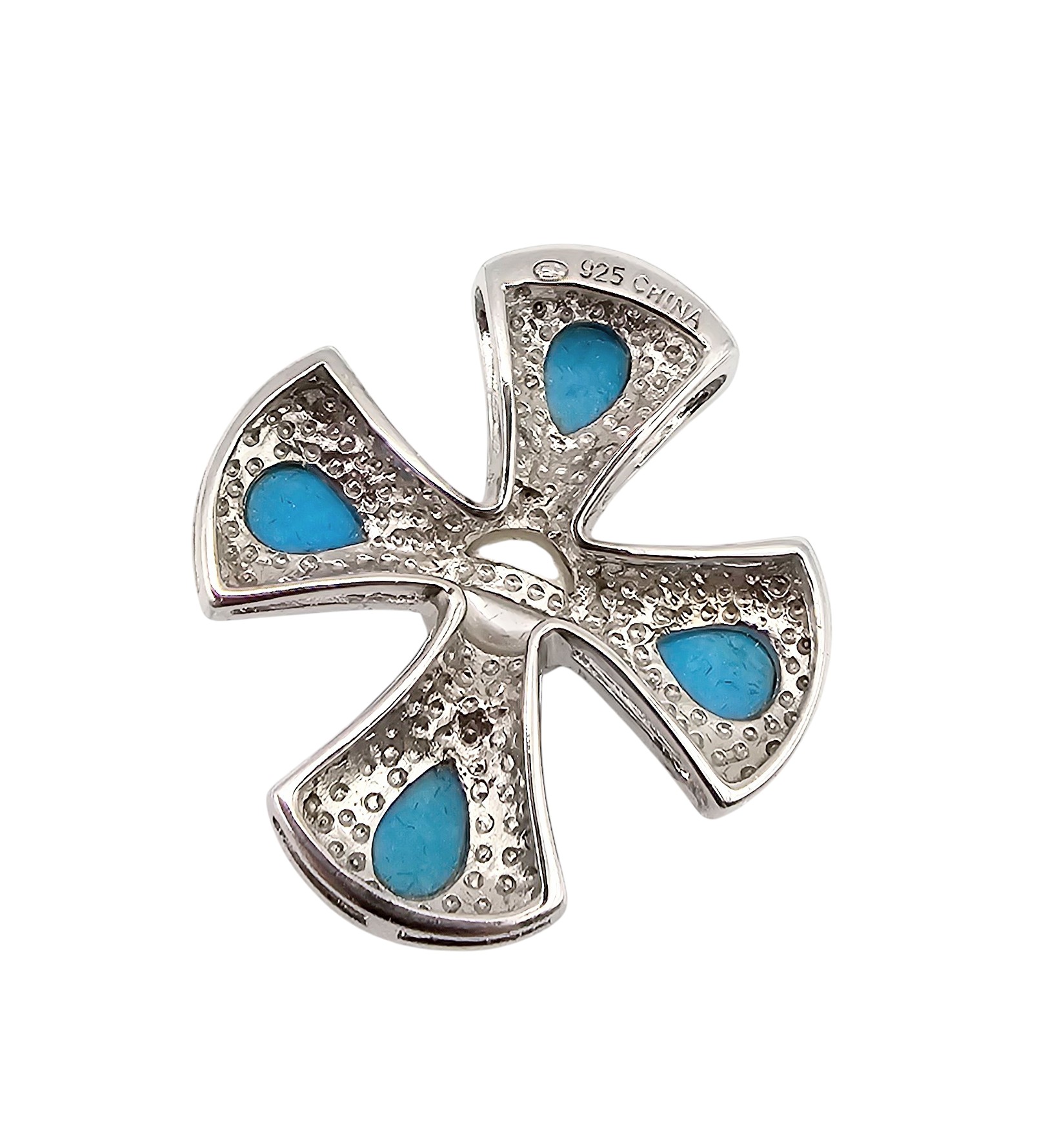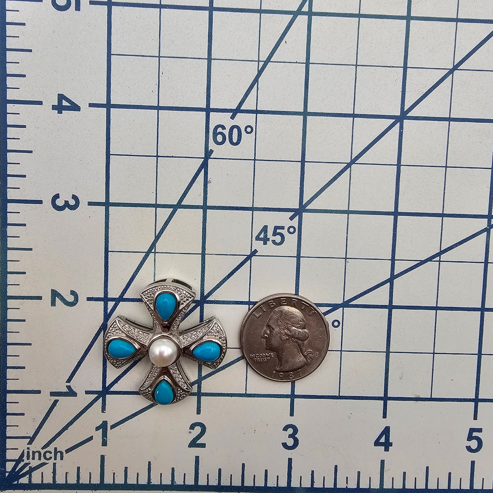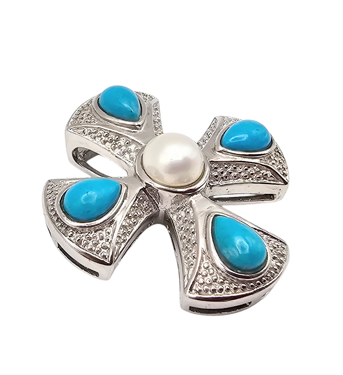 EA Faux Pearl Turquoise Sterling Silver Floral Pendant 9.5 G