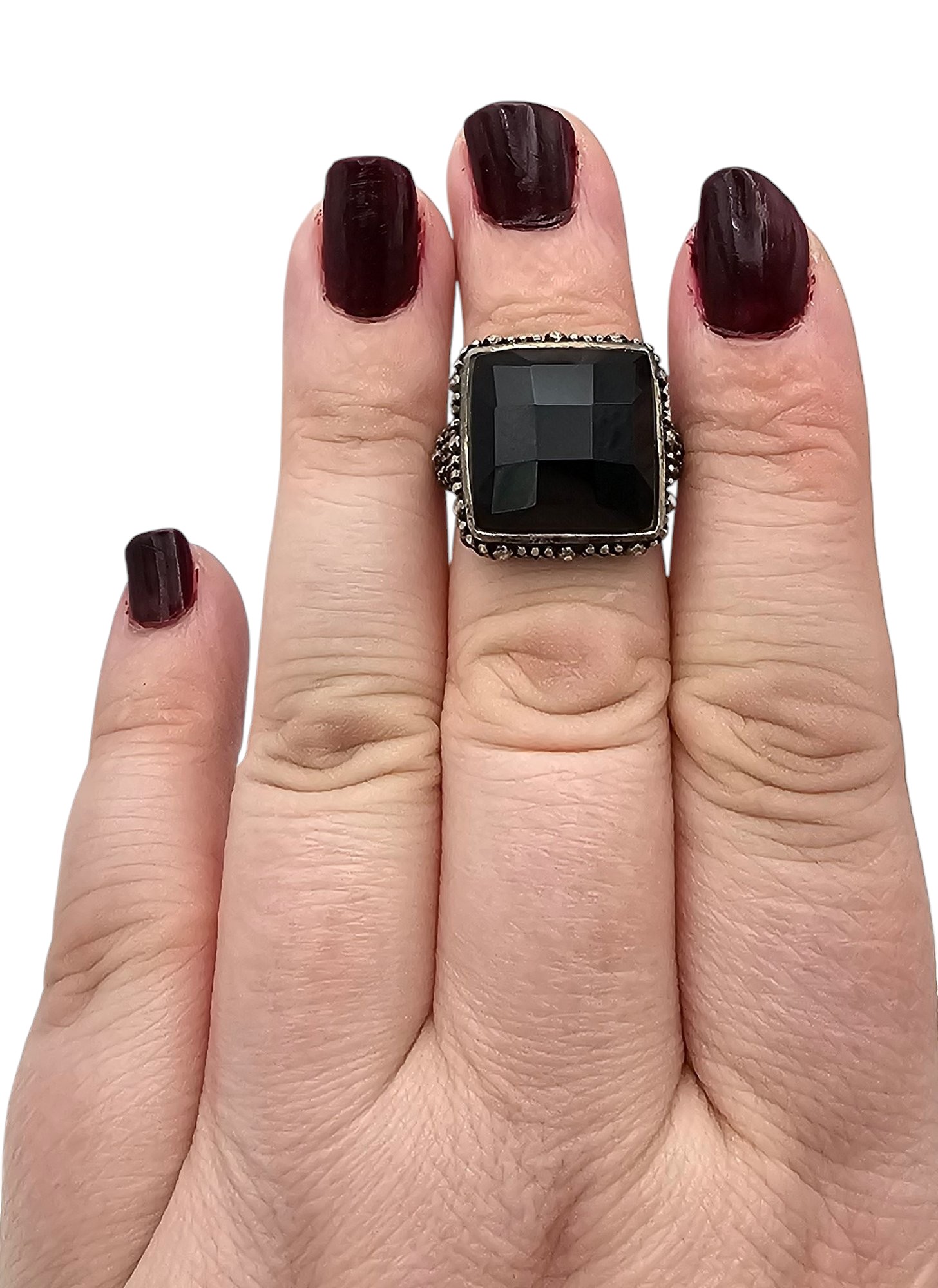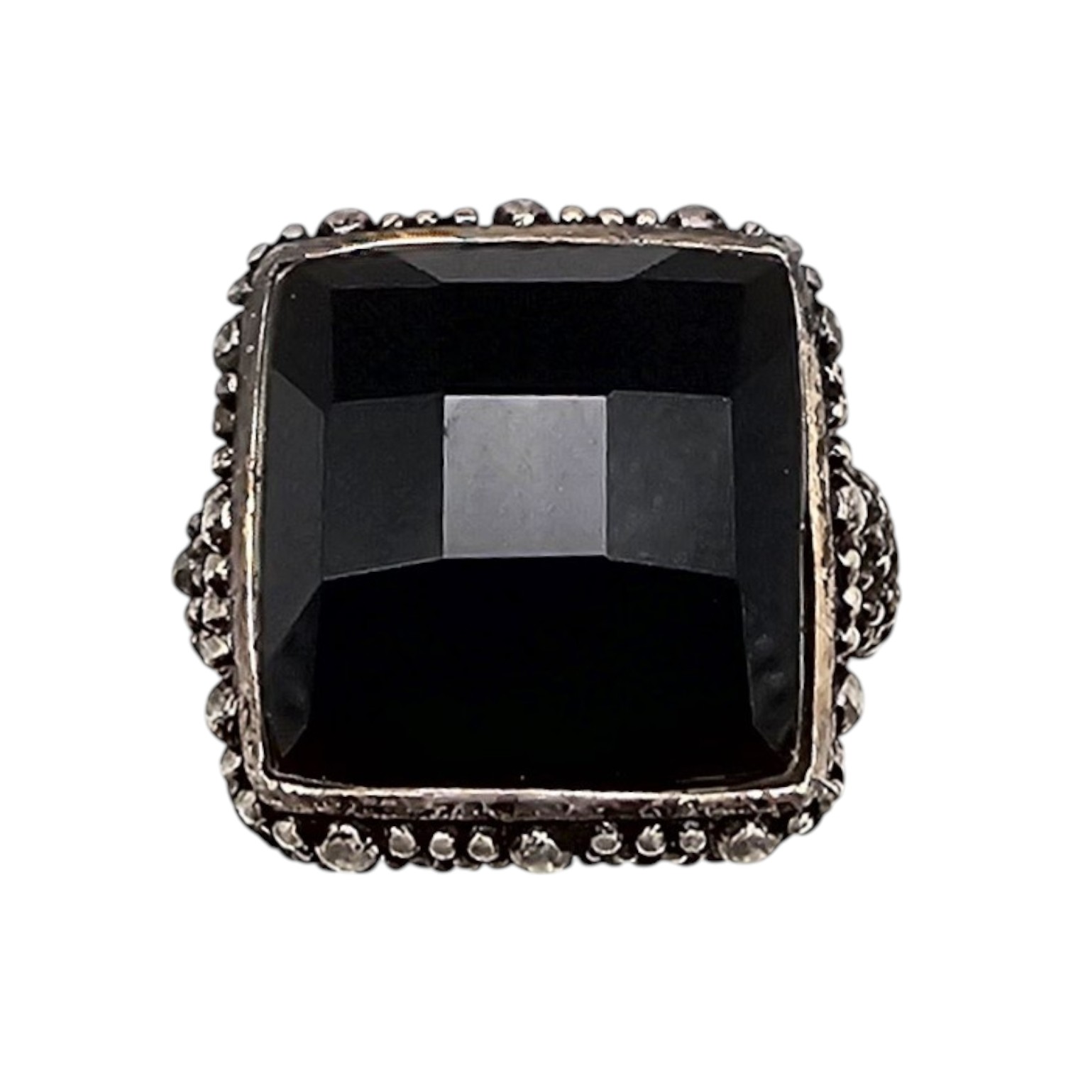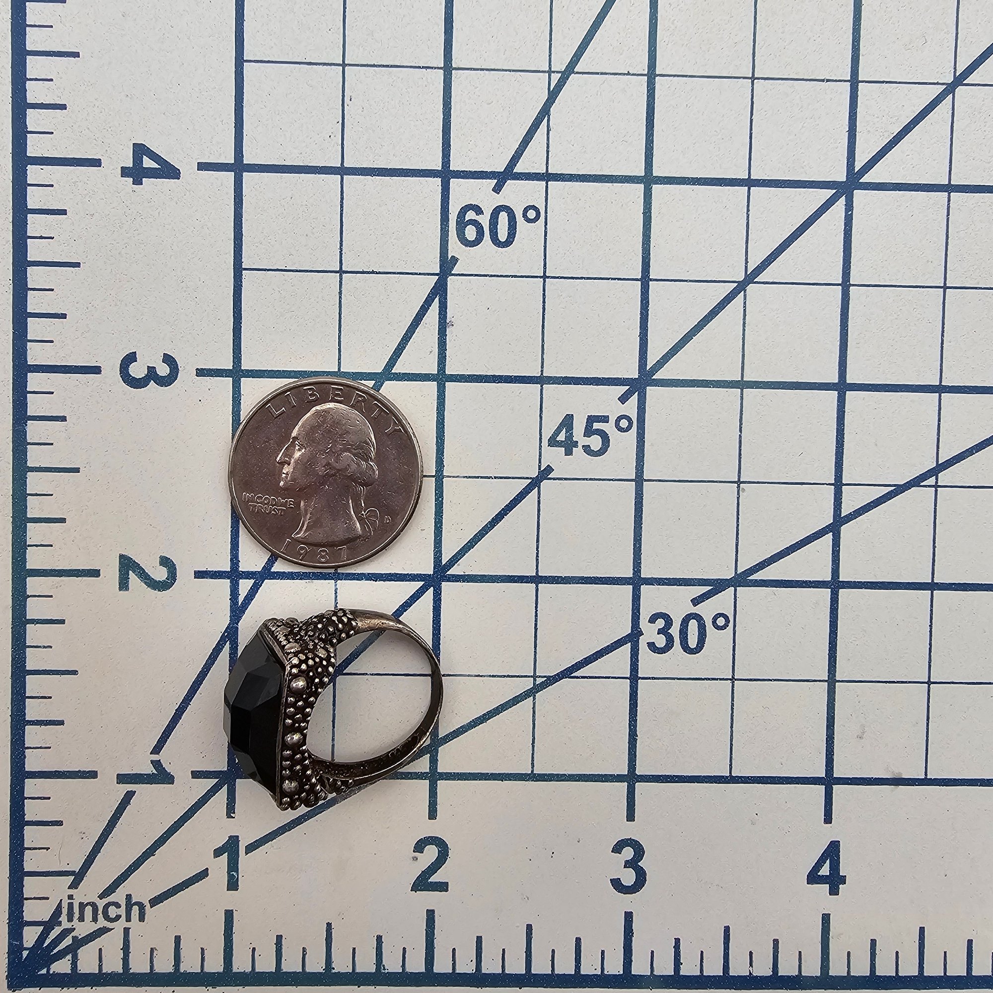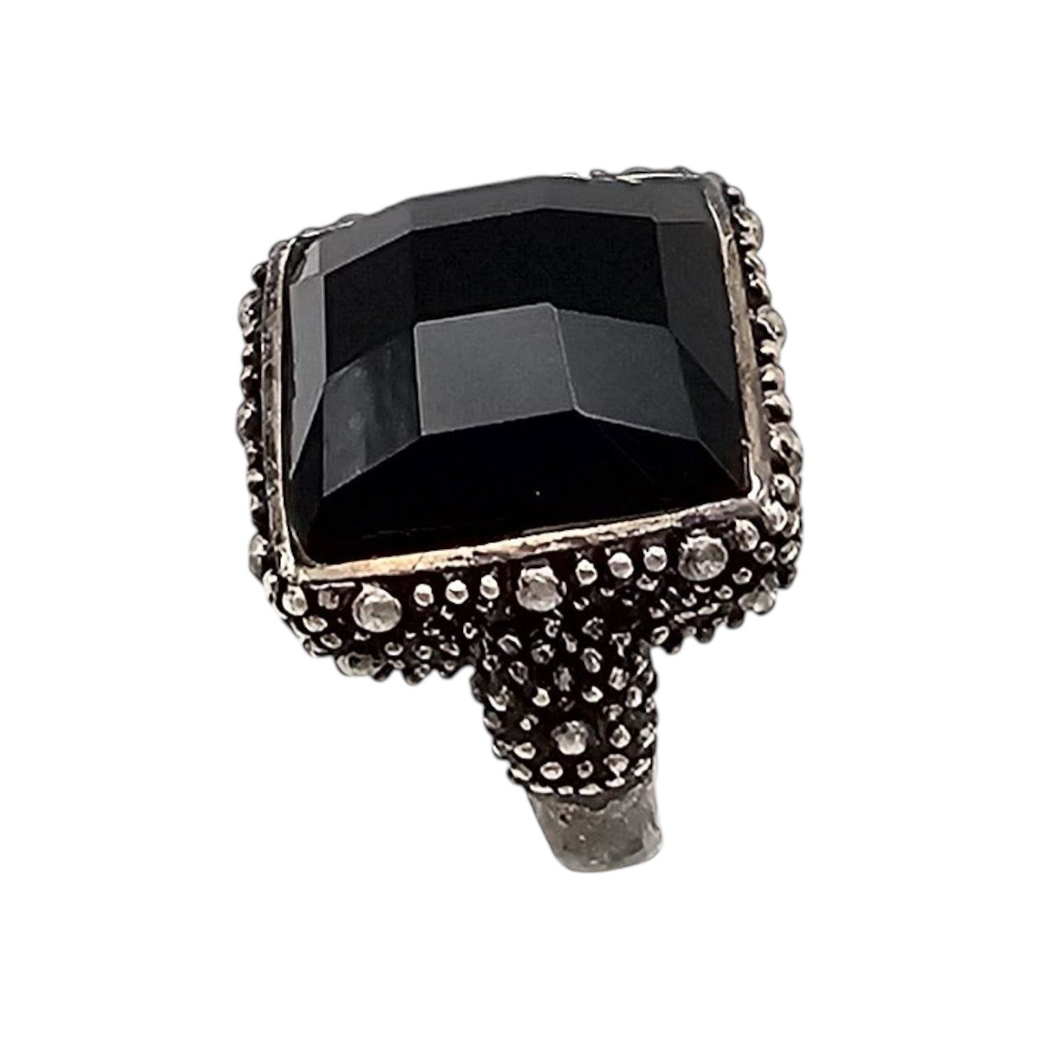 Signed Cushion Cut Onyx Sterling Silver Ring Size 6.5 6.6 G