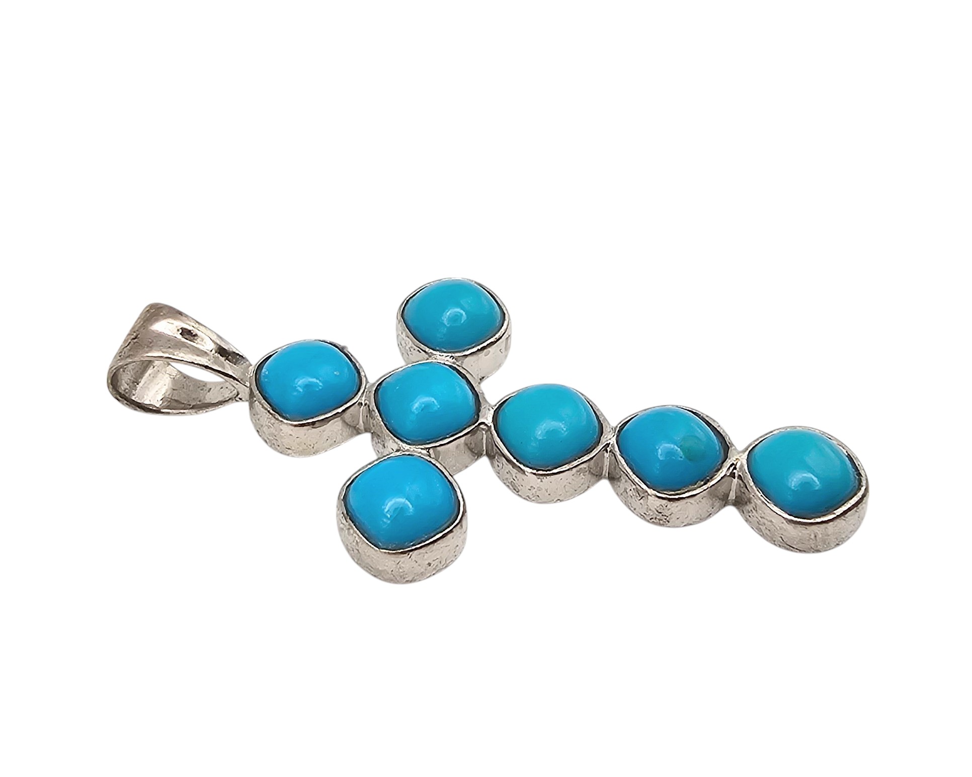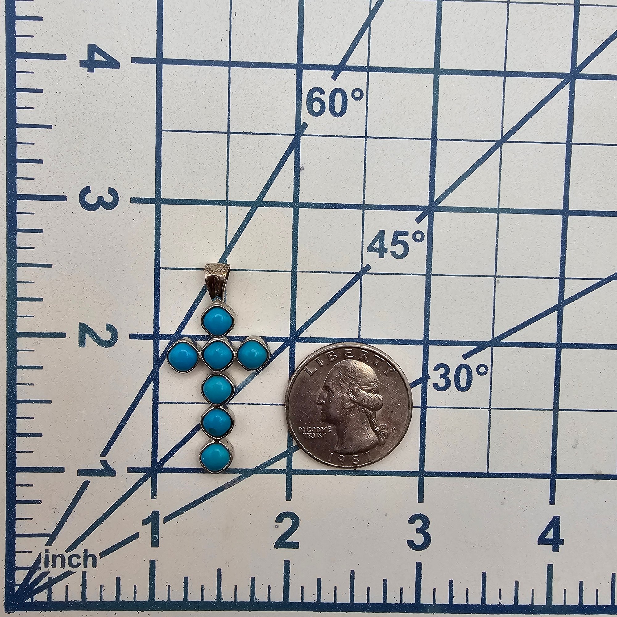Sun West Jewelry Albuquerque Turquoise Sterling Silver Cross Pendant 3.6 G