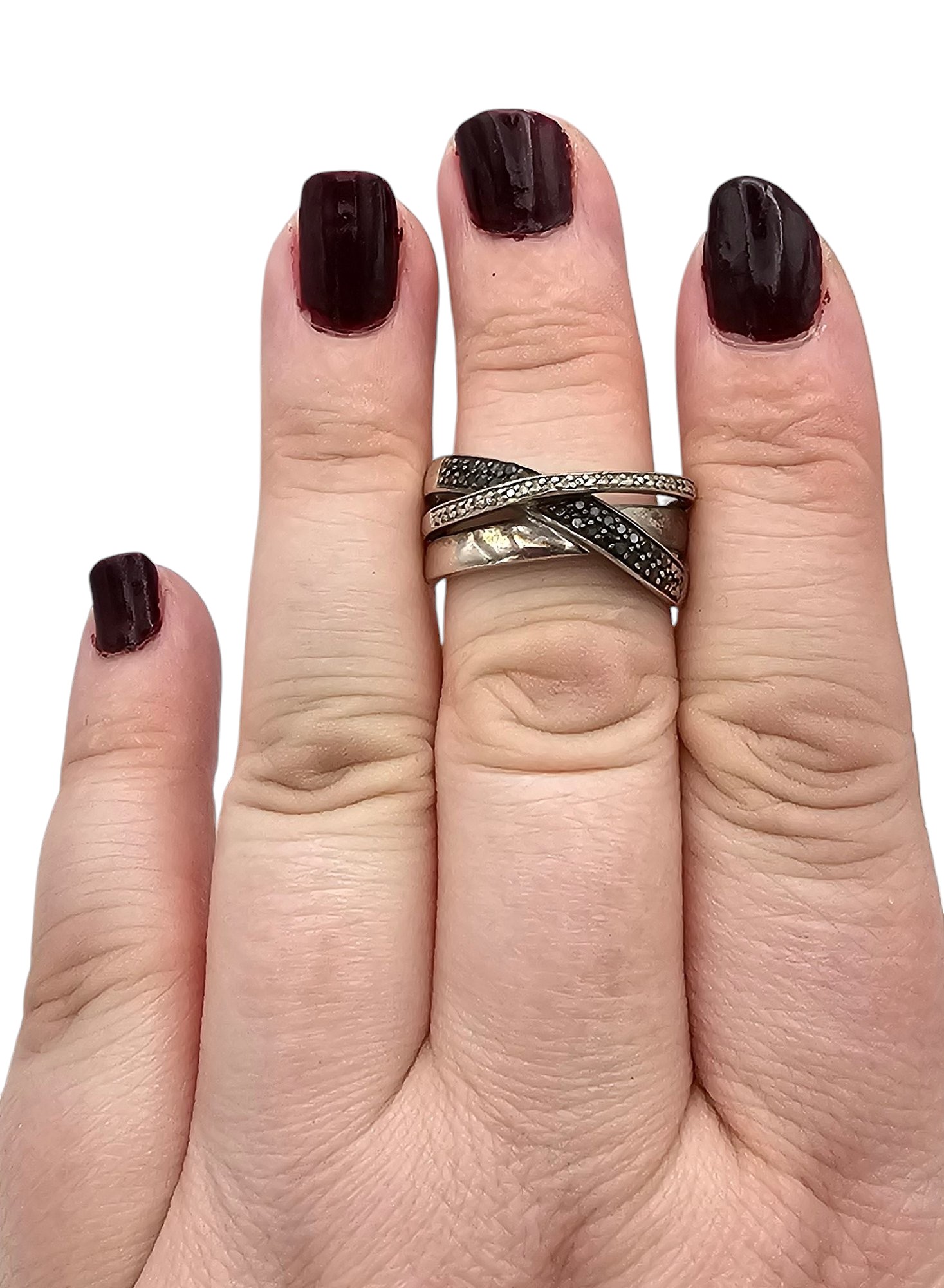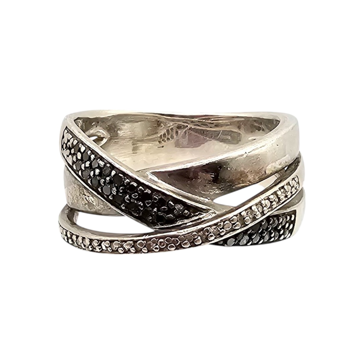 SUN Diamond Sterling Silver Cocktail Ring Size 8 7.5 G