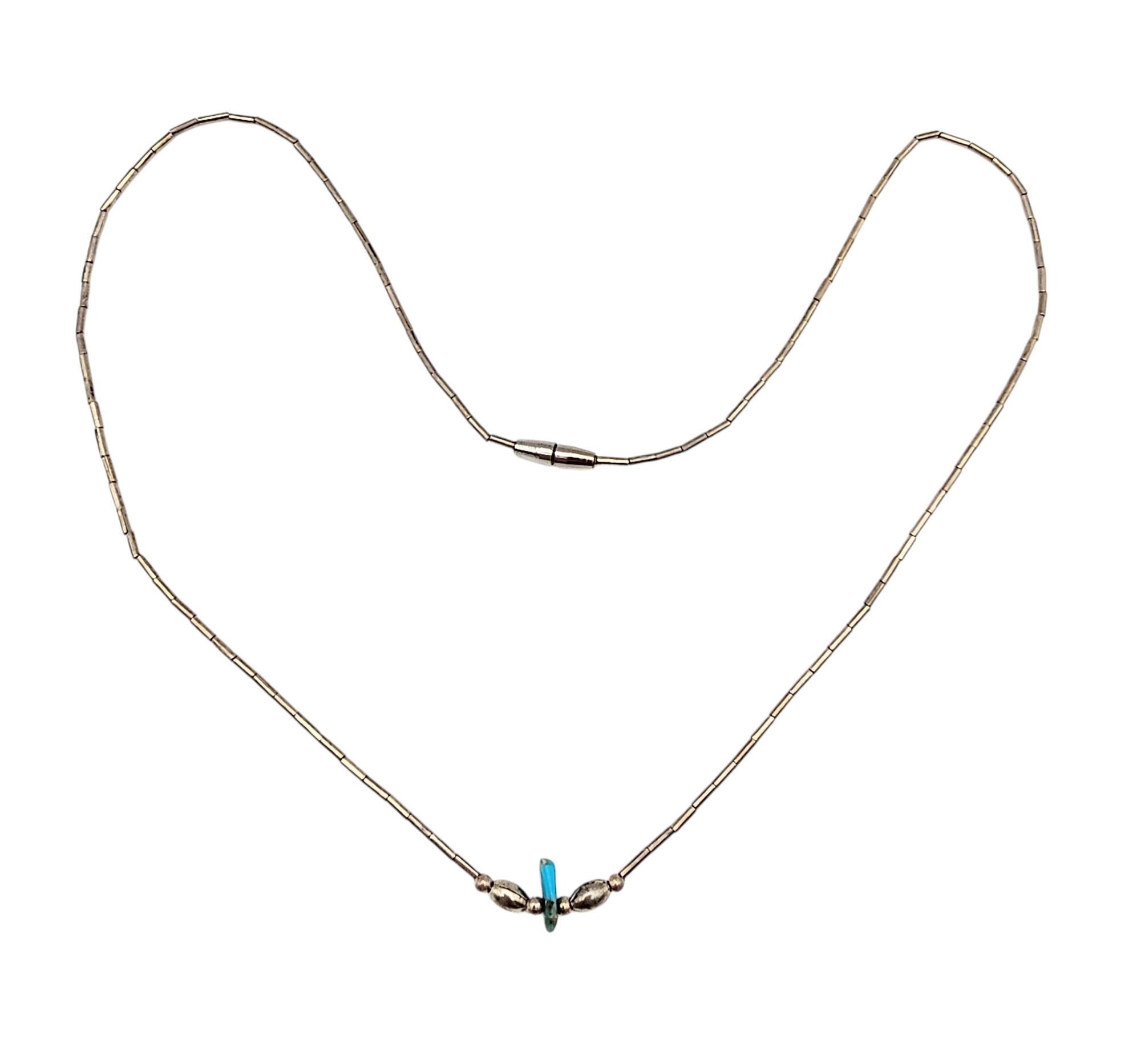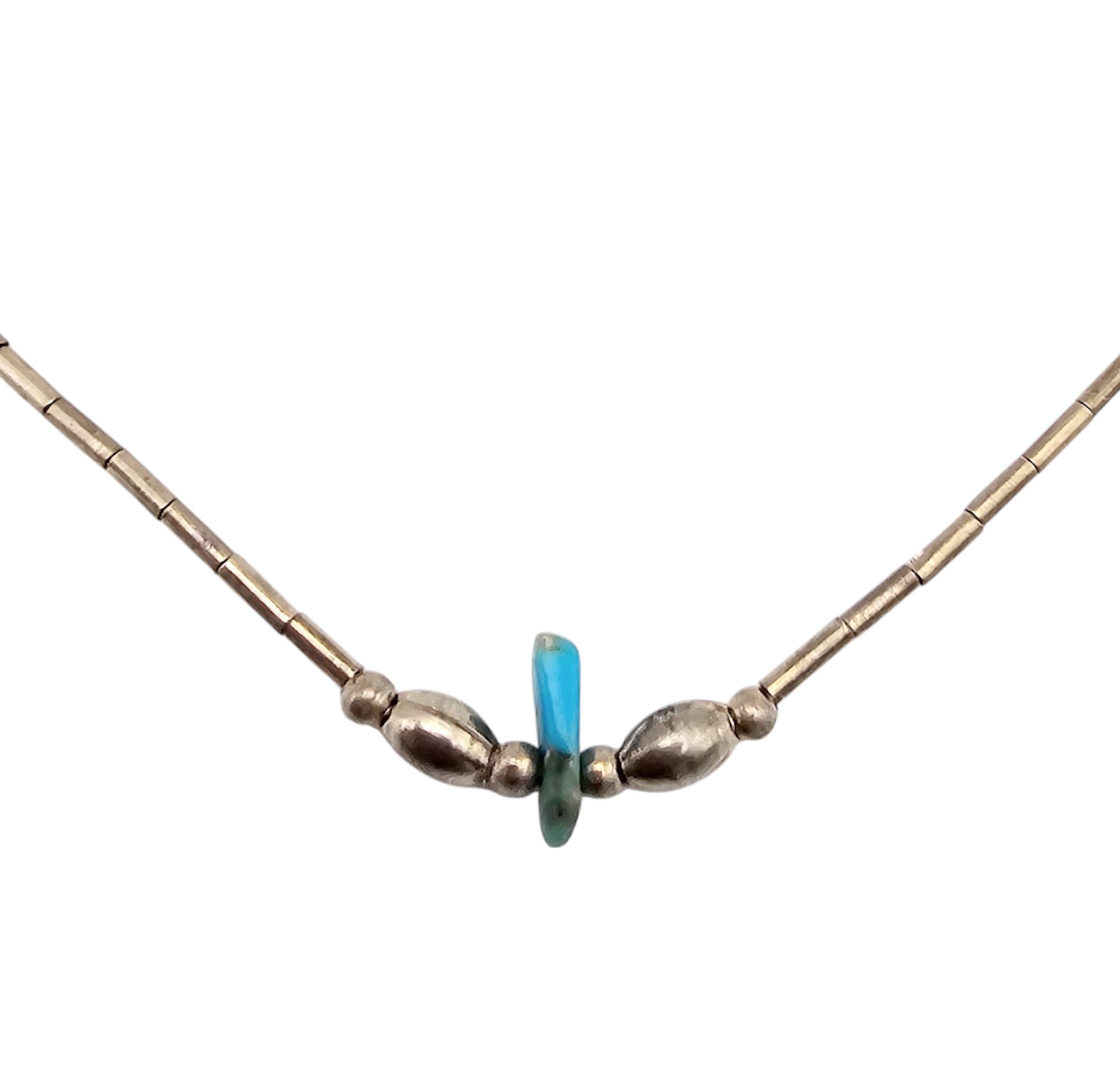 Native Turquoise Sterling Silver Liquid Silver Necklace 3 G