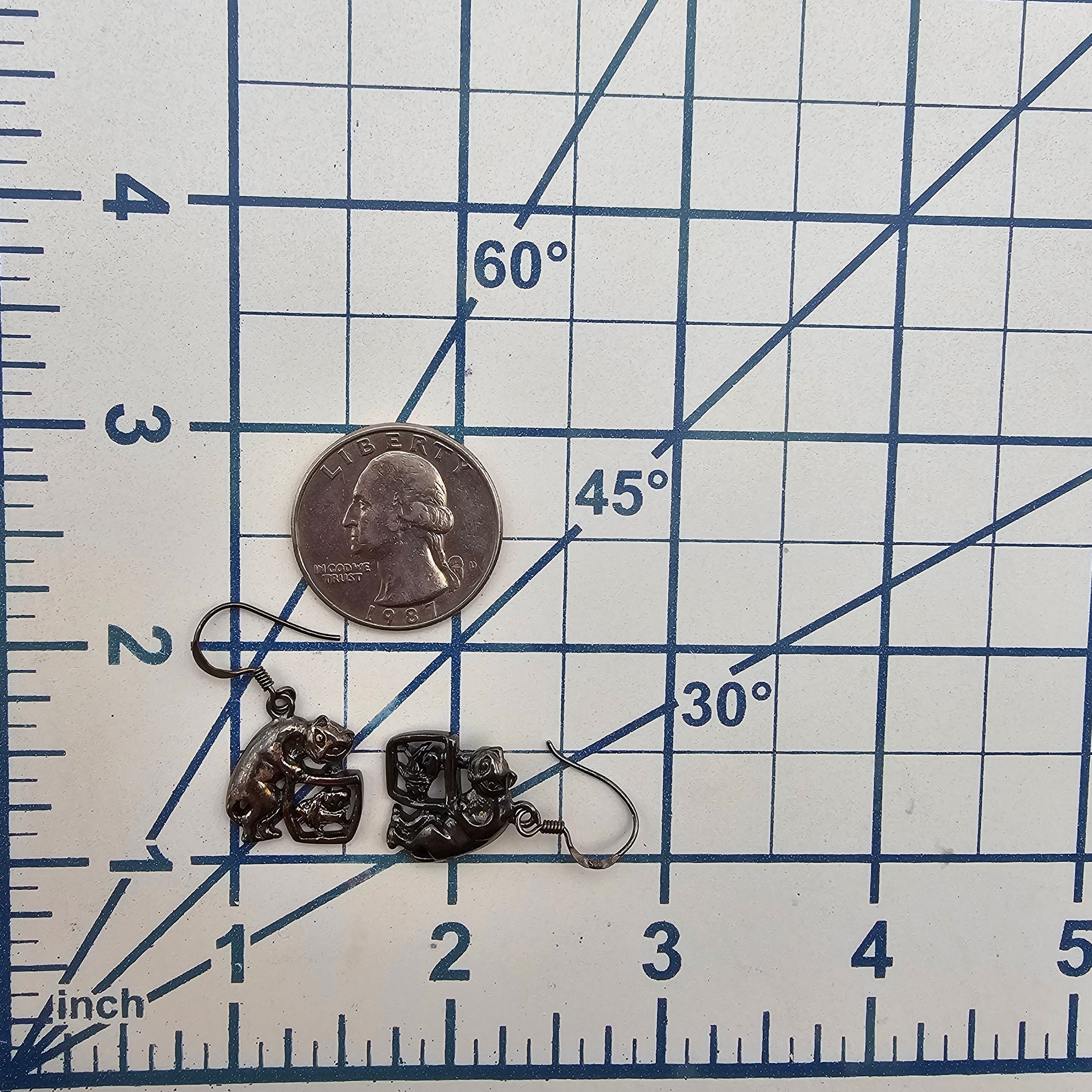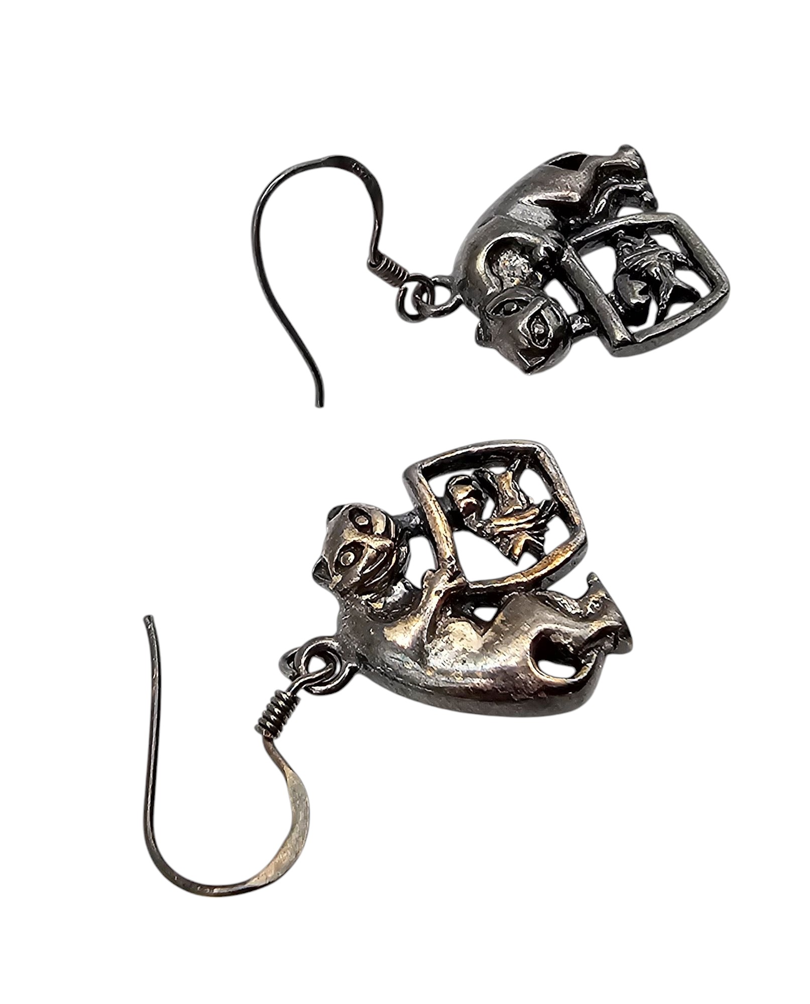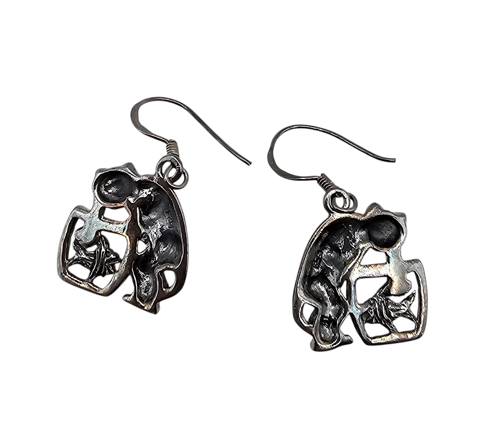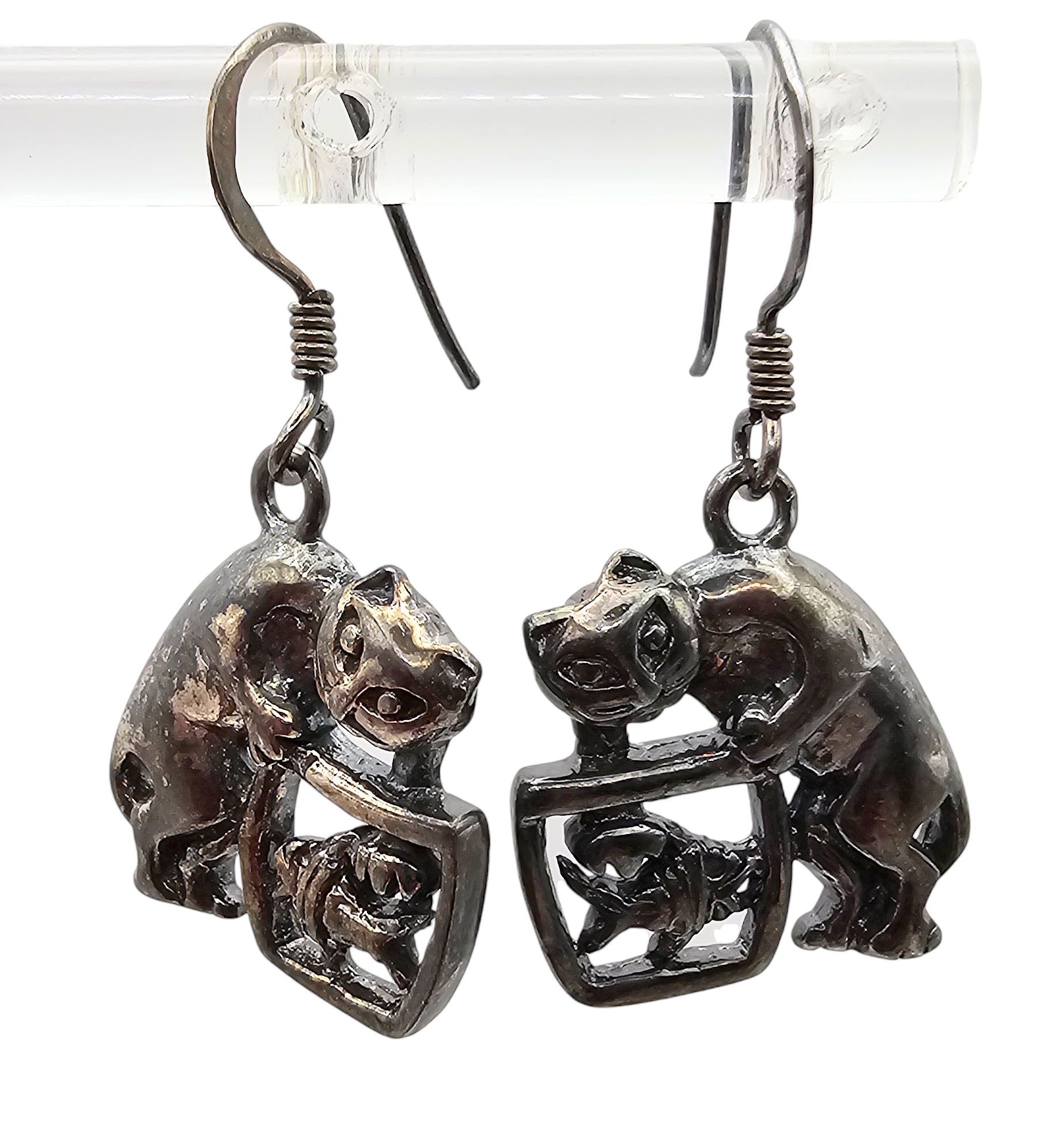 Sterling Silver Fish Bowl Cat Drop Dangle Earrings 5.3 G