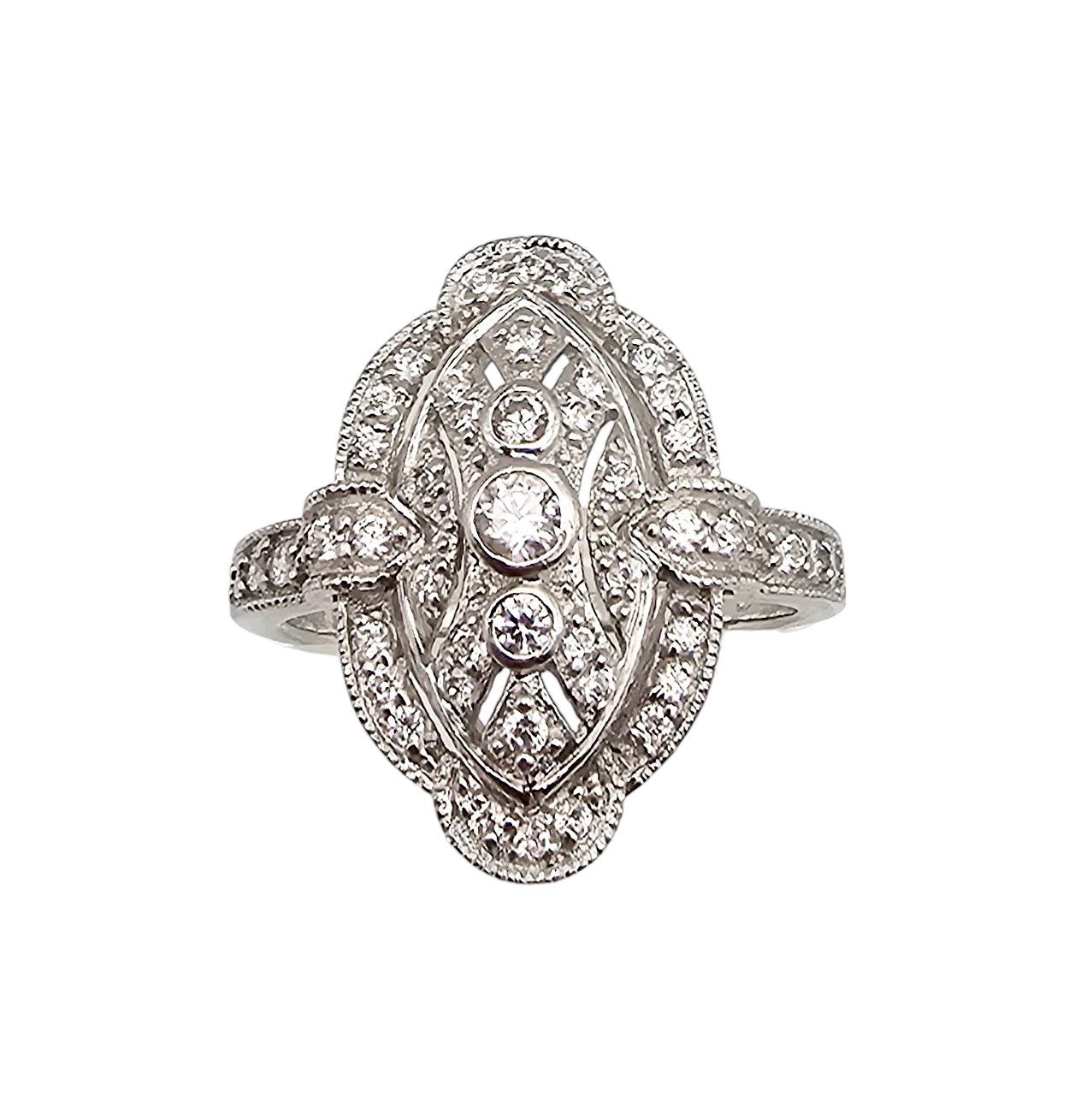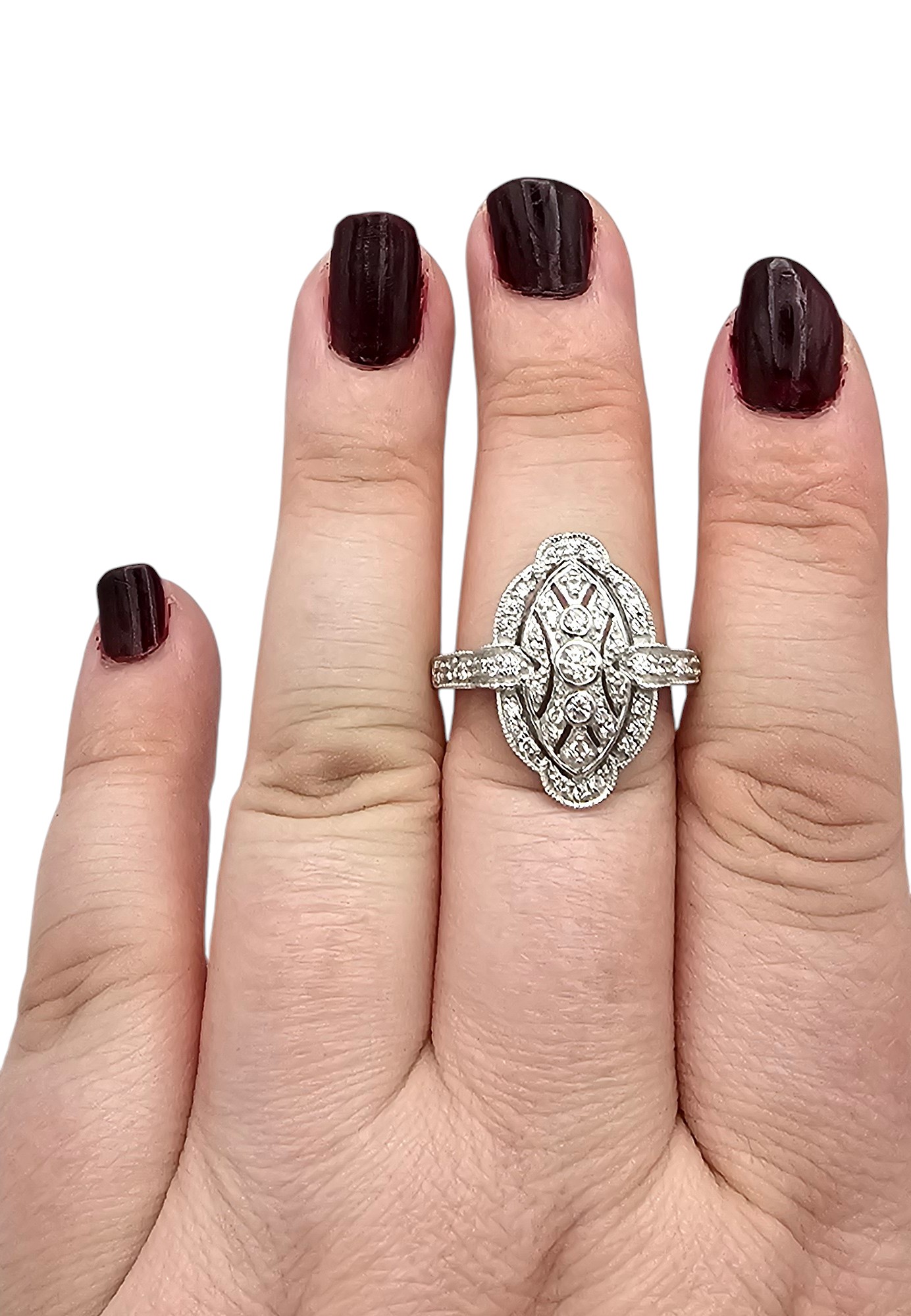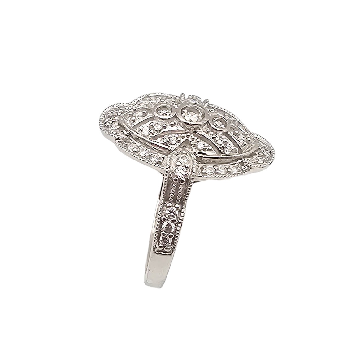 H Cubic Zirconia Sterling Silver Deco Style Cocktail Ring Size 9.5 4.8 G