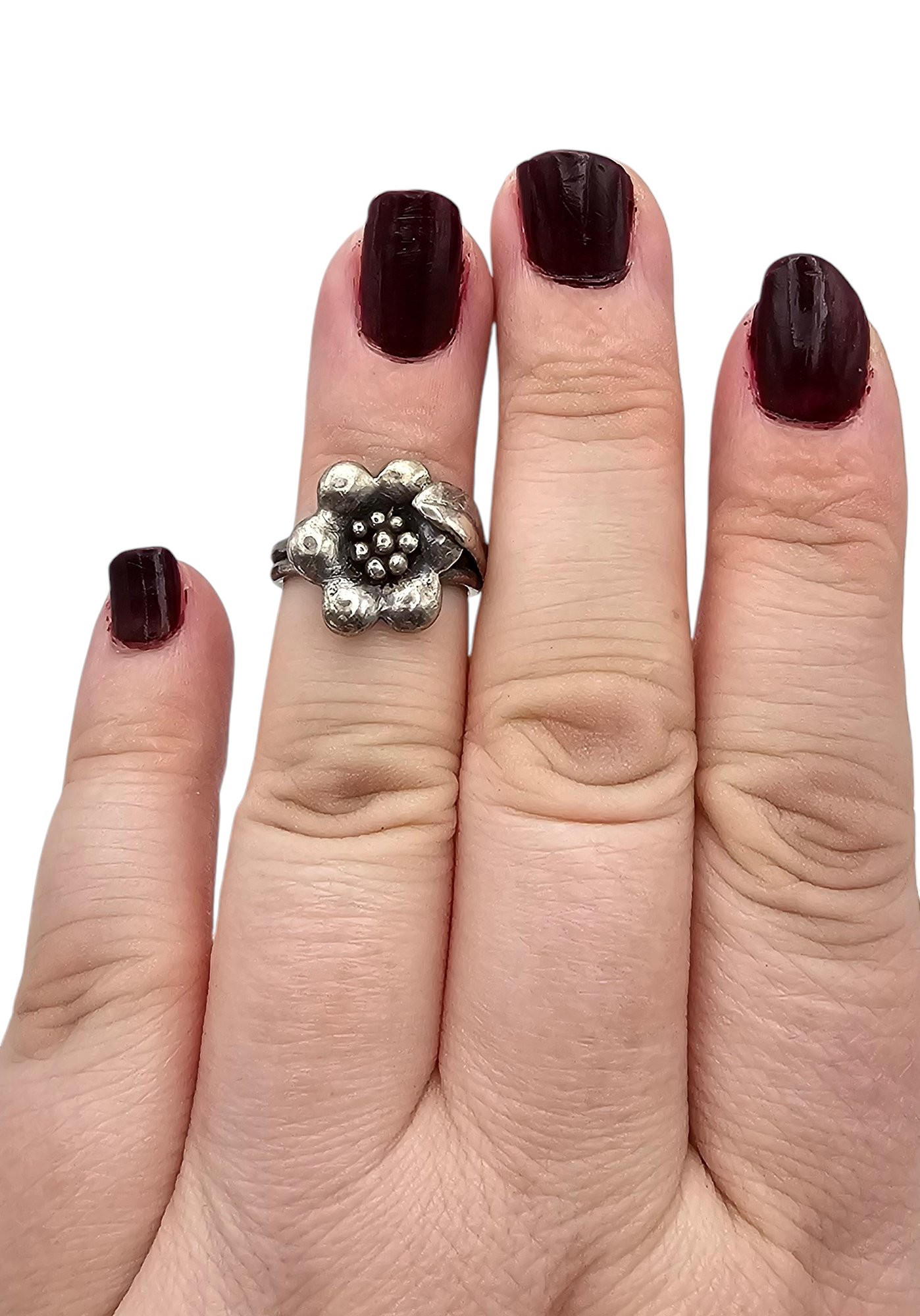 Sterling Silver Flower Ring Size 4.25 3.9 G