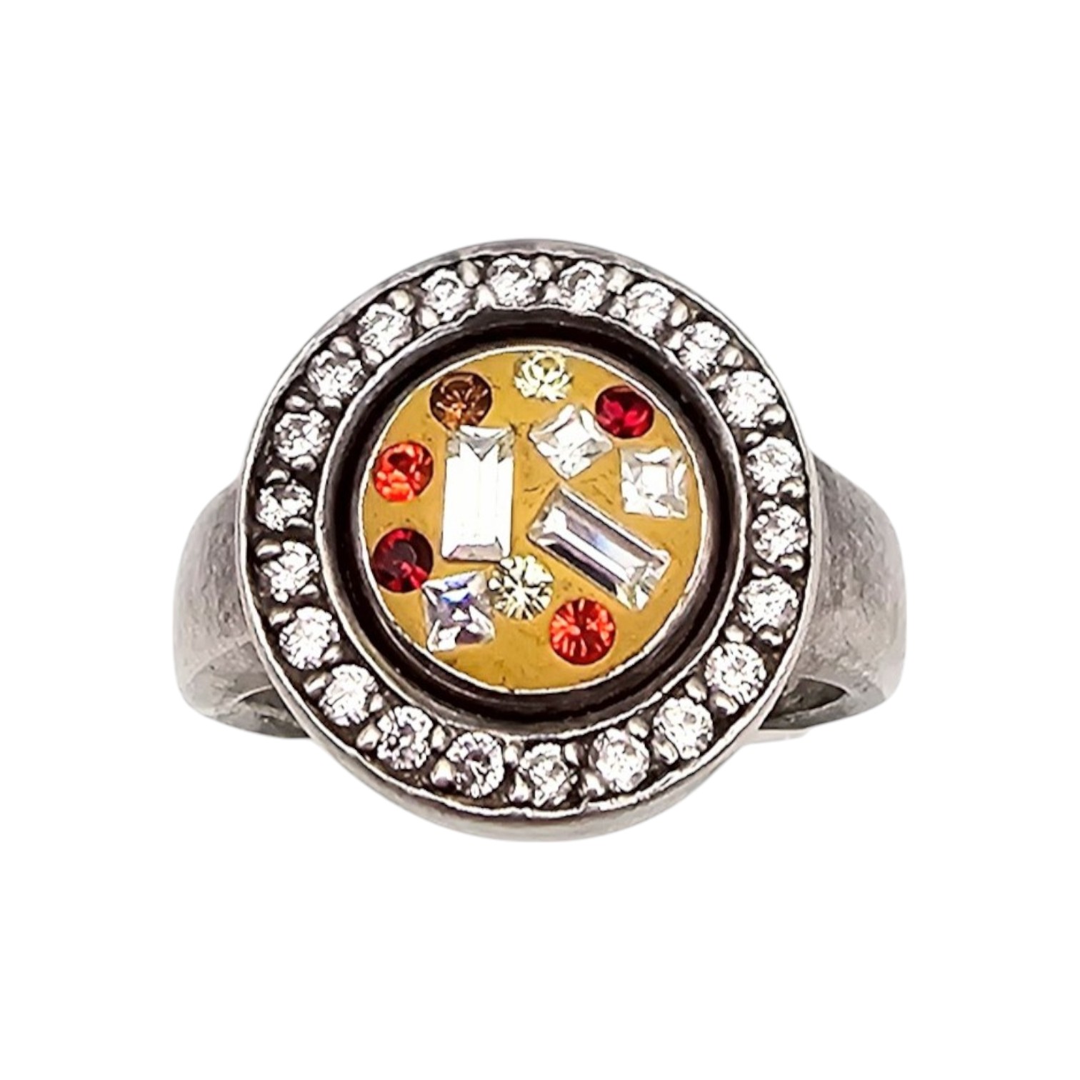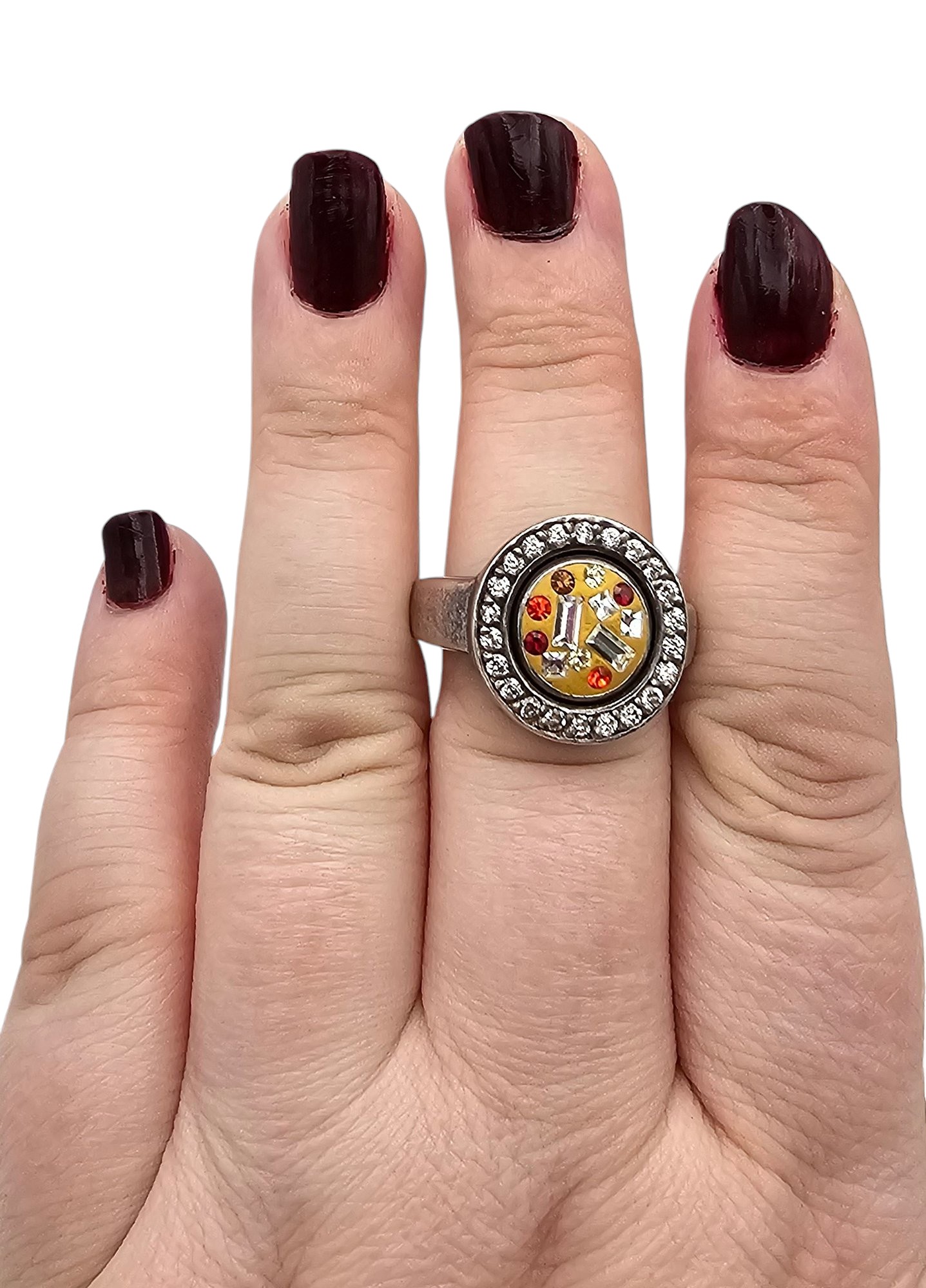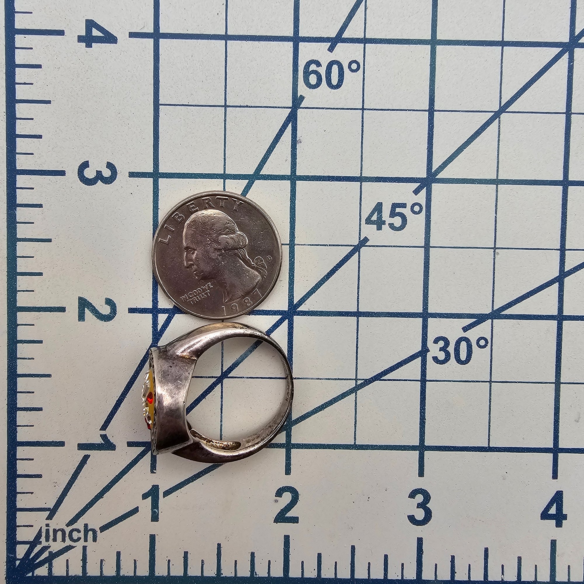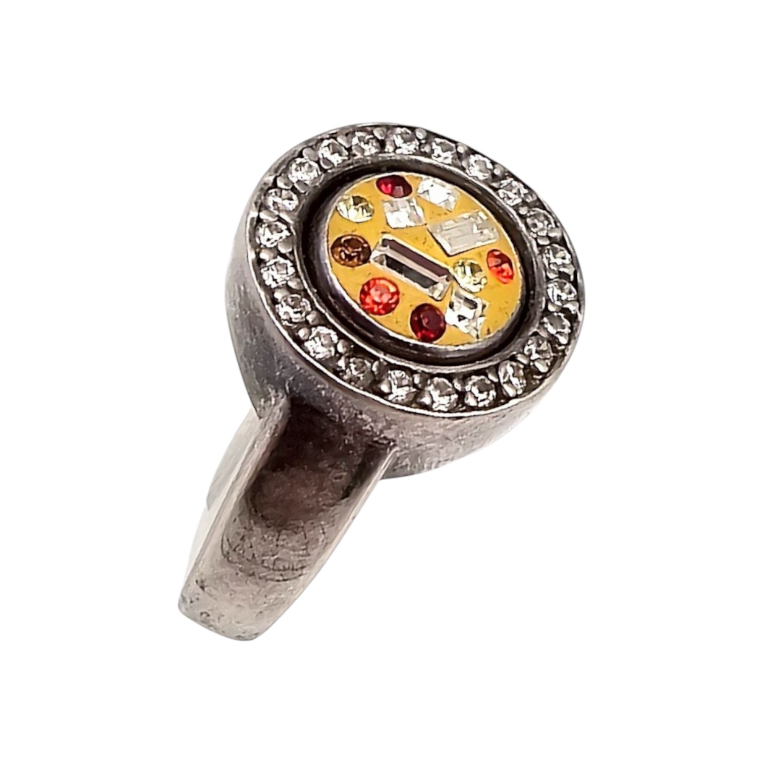 Signed Rhinestone Enamel Ring Size 9.75 12.5 G