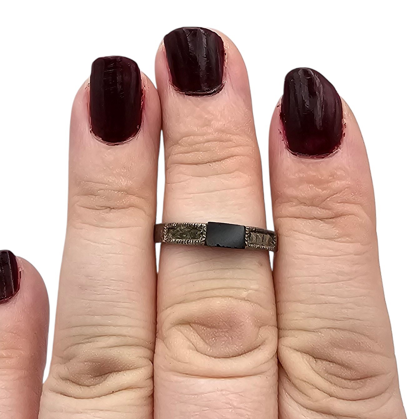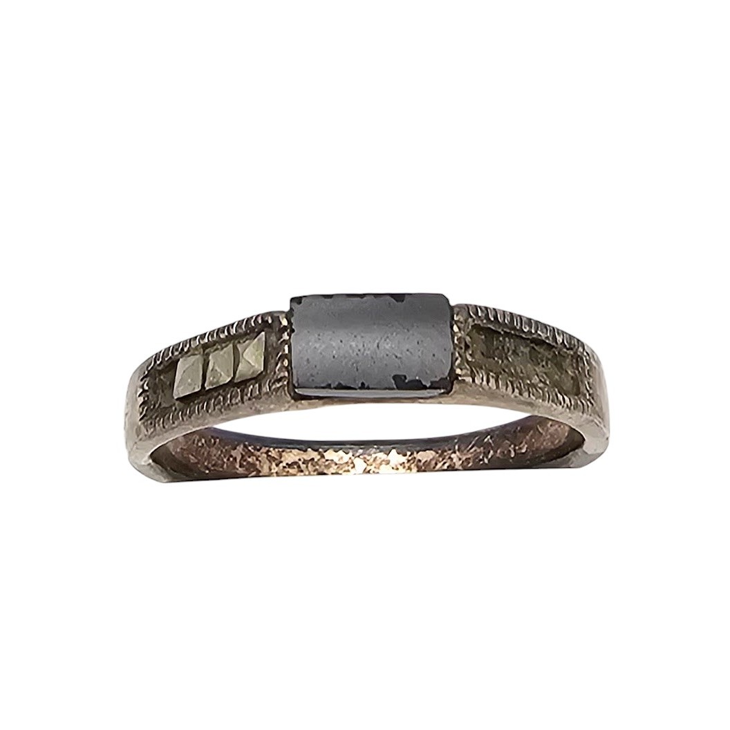 ND Onyx Marcasite Sterling Silver Ring Size 7.5 2.4 G as is